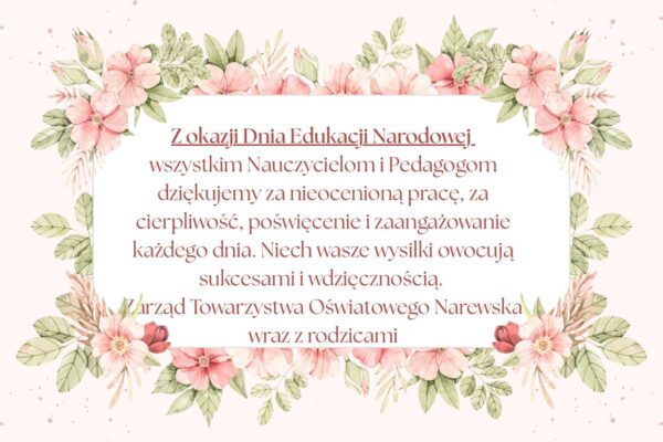 Dzień Edukacji Narodowej Edukacja to szkoła. Szkoła to Nauczyciele, Uczniowie, ich Rodzice a także Pracownicy administracji i obsługi. Z okazji dzisiejszego święta wszystkim Państwu składamy serdeczne podziękowania za zaangażowanie w kształcenie i wychowywanie młodego pokolenia,…