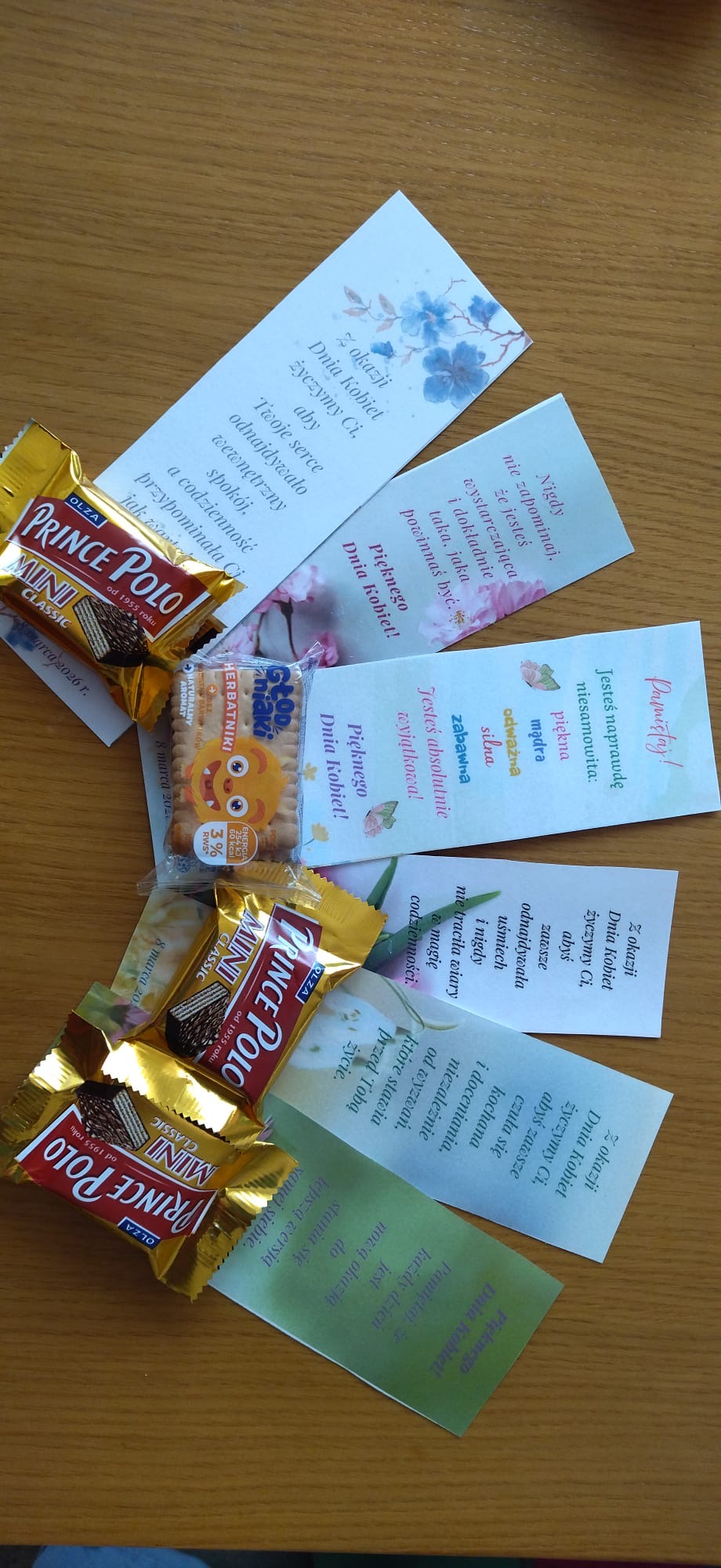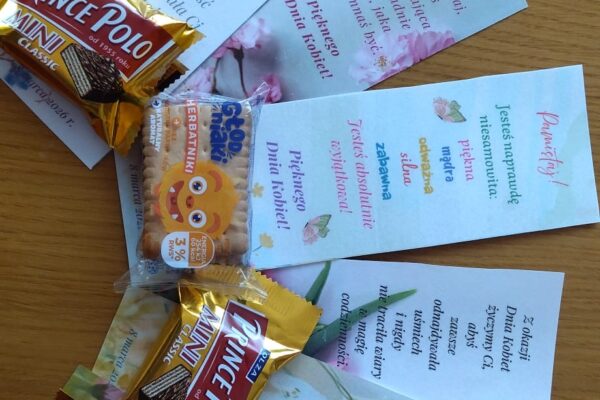 W związku z tym Rada Uczniów przygotowała kosze pełne ciepłych słów, życzeń i słodkości. Takimi drobnymi upominkami postanowiliśmy rano przywitać wszystkie dziewczynki i kobiety oraz wszystkich chłopców i mężczyzn wchodzących do naszej szkoły. Ten mały gest wywołał uśmiech na twarzach wszystkich i był miłym początkiem dnia.