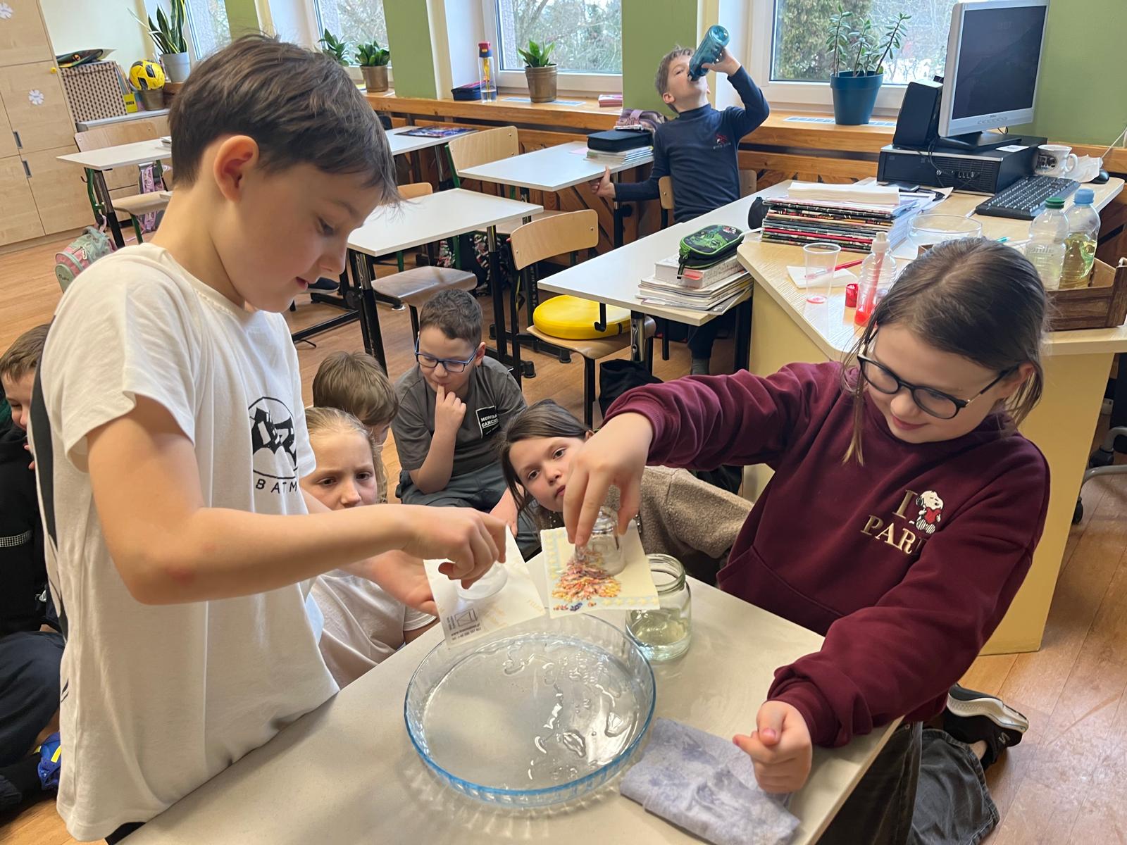 Klasa IIIa poznała osiągnięcia wielkich polskich naukowców Ignacego Łukasiewicza i Marii Skłodowskiej-Curie. To ich praca zachęciła uczniów do eksperymentowania w klasie i każdy chętnie w nich uczestniczył.