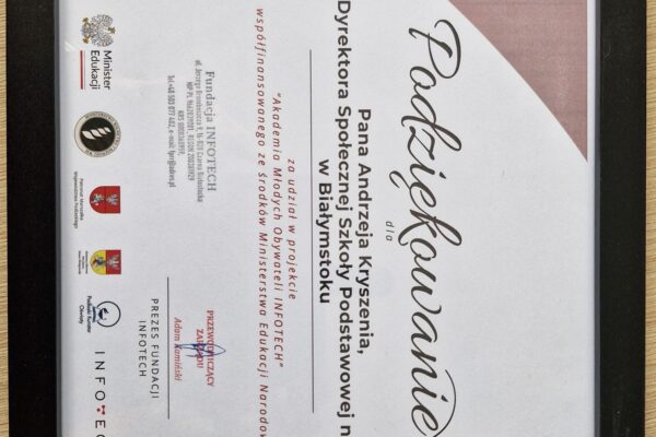 Dziś uczniowie klas 7 i 8 oficjalnie zakończyli swój udział w projekcie KMO fundacji INFOTECH. Były podziękowania, dyplomy i gratulacje.Wszystkim uczestnikom dziękujemy z wkład i zaangażowanie w nasz szkolny kaczy projekt.🦆👍