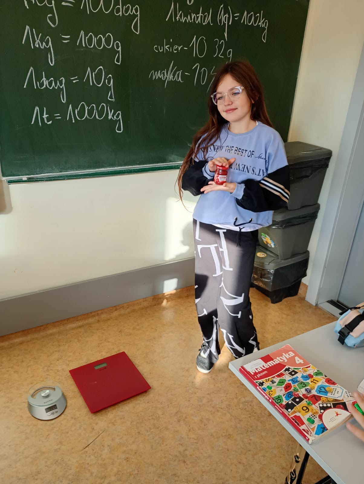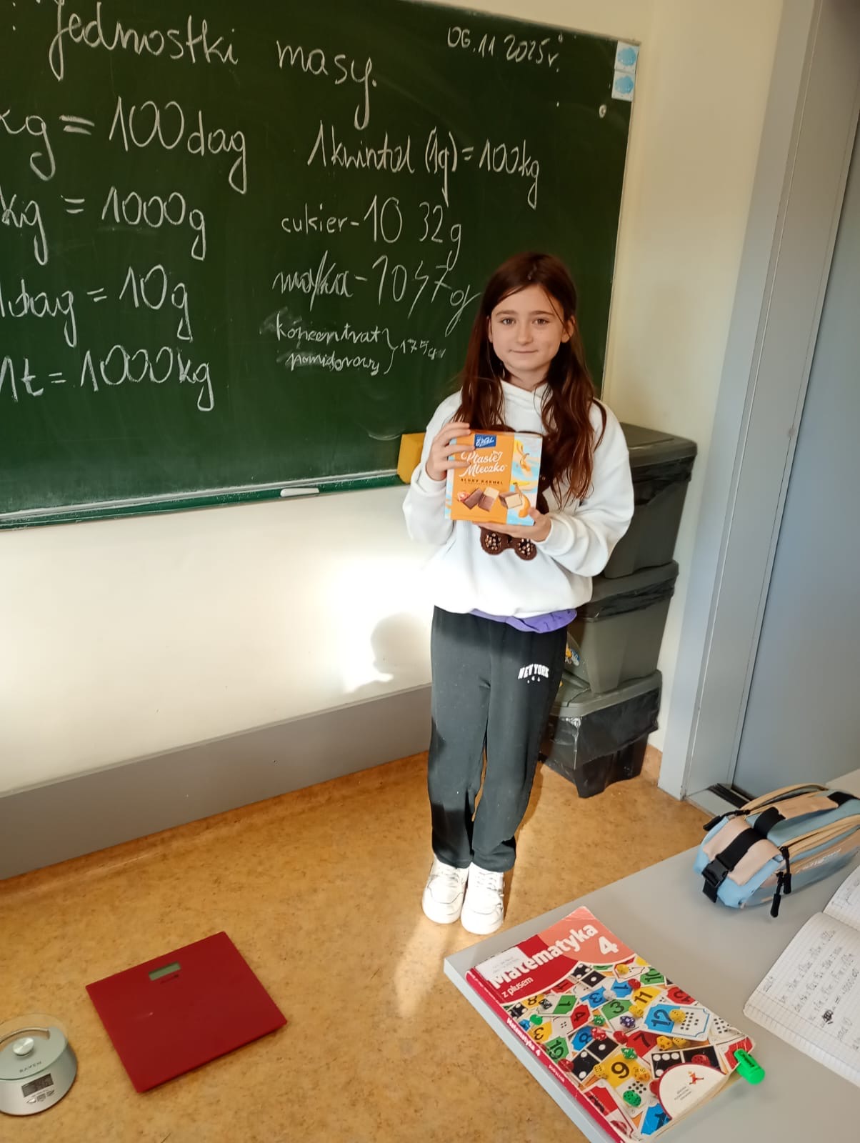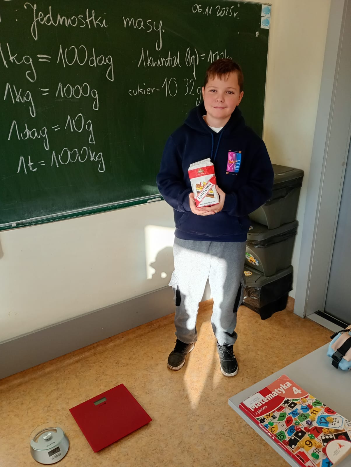 W ramach cyklu lekcji o jednostkach uczniowie klasy 4a dowiedzieli się w jakich jednostkach ważymy różne przedmioty, które jednostki są mniejsze, a które większe od kilograma, co oznaczają skróty g, dag, kg i t, q, jak prawidłowo czytać skróty oznaczające jednostki masy.