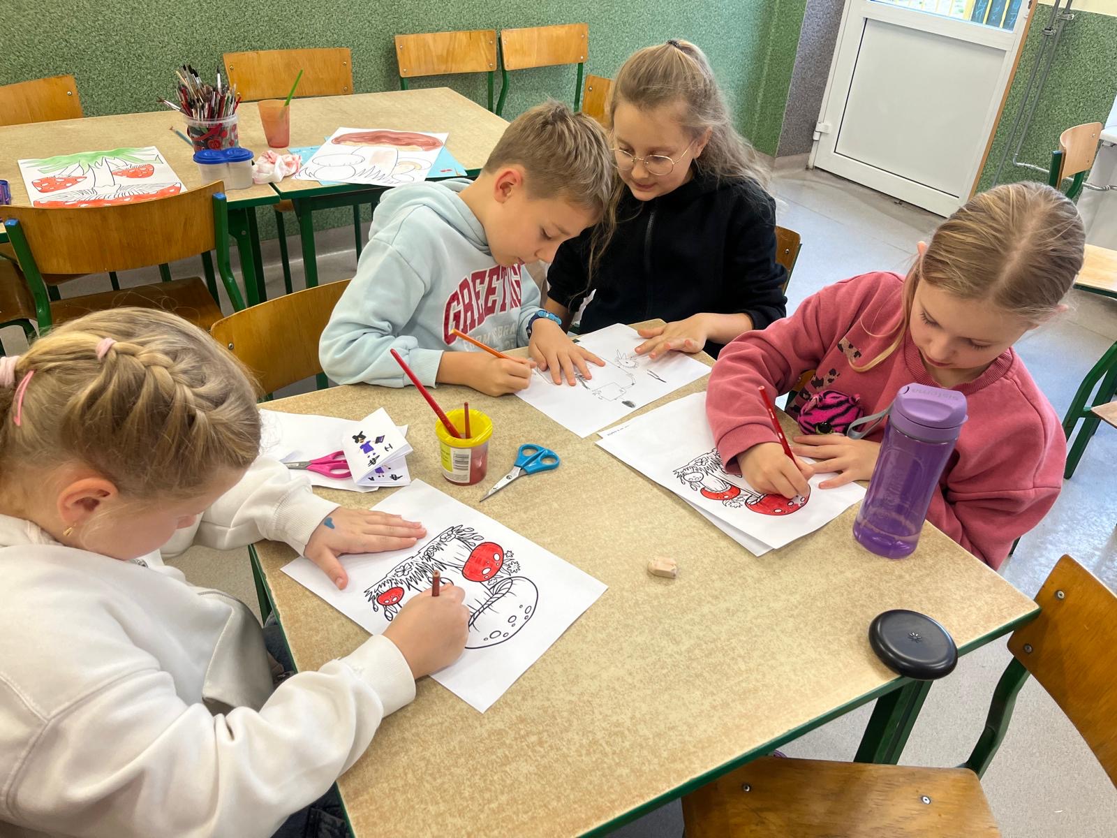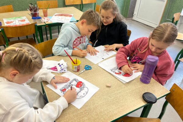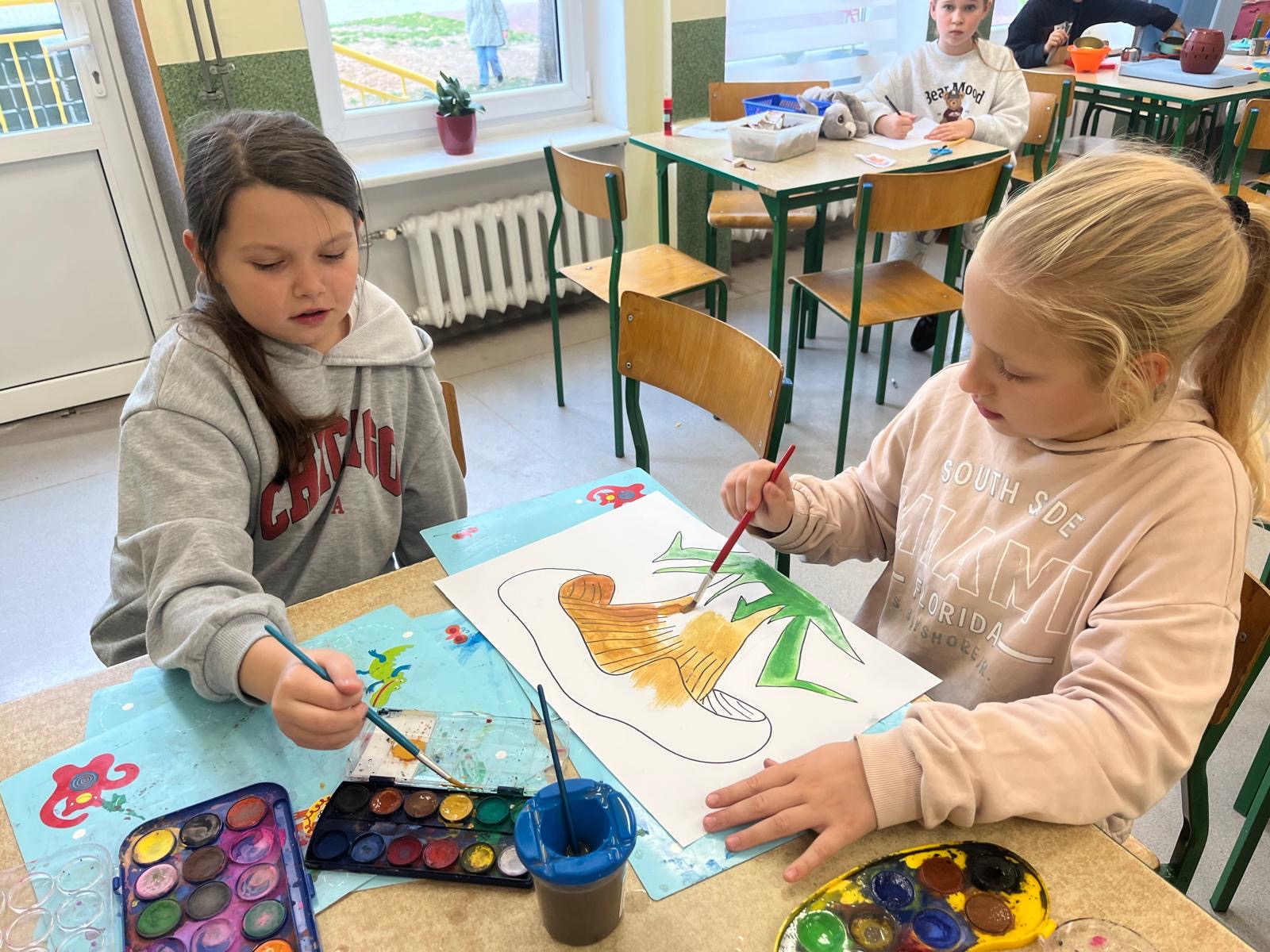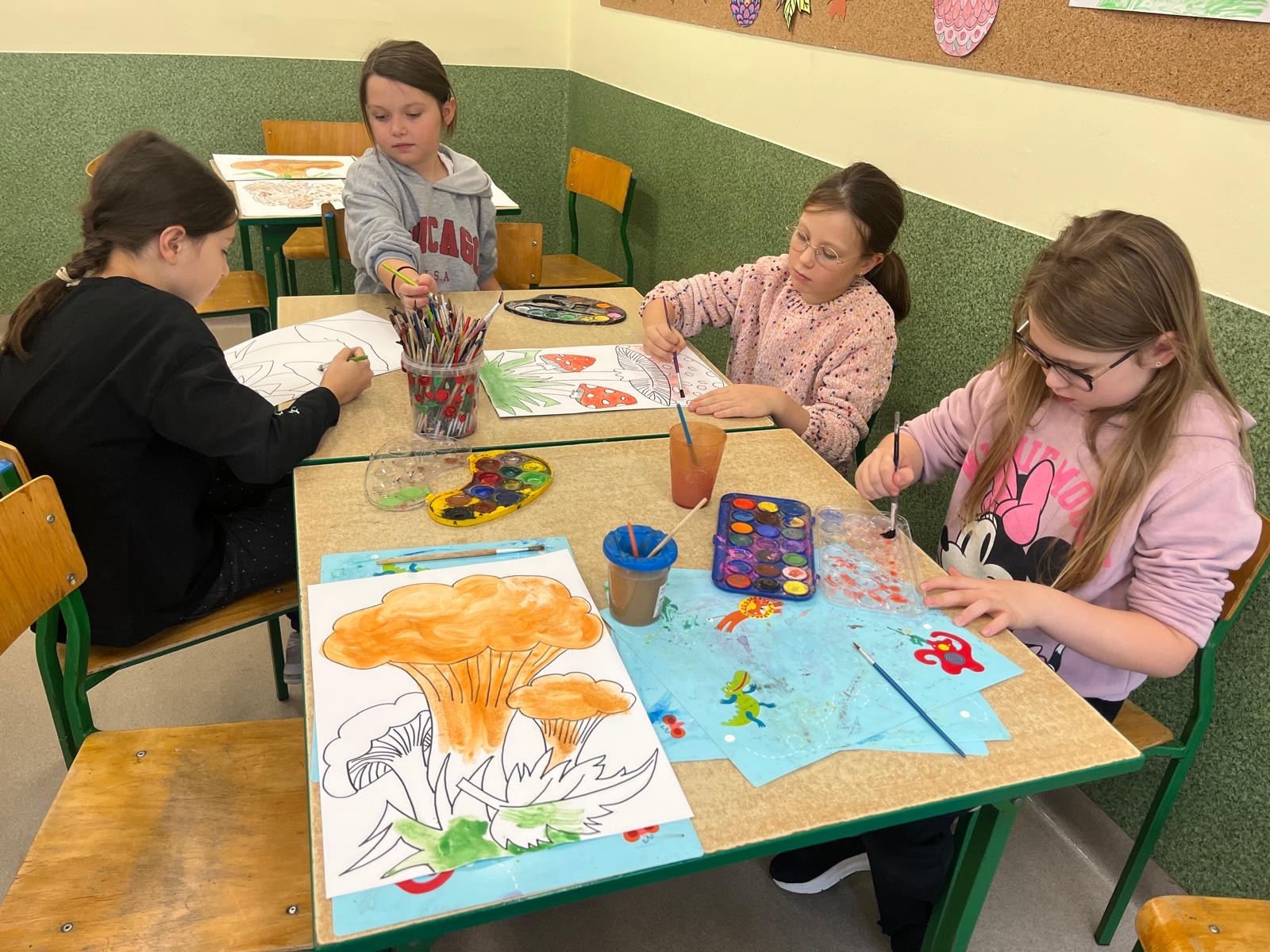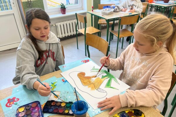 Za oknem smutno i mokro, a w świetlicy szkolnej wesoło i ciepło. Po zajęciach dodatkowych jest czas na farby i kolorowe papiery. To dzięki zręcznych rąk naszych uczniów powstają piękne prace, które zmieniają wystrój świetlicy.