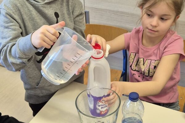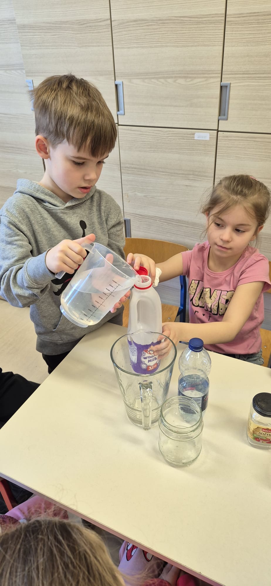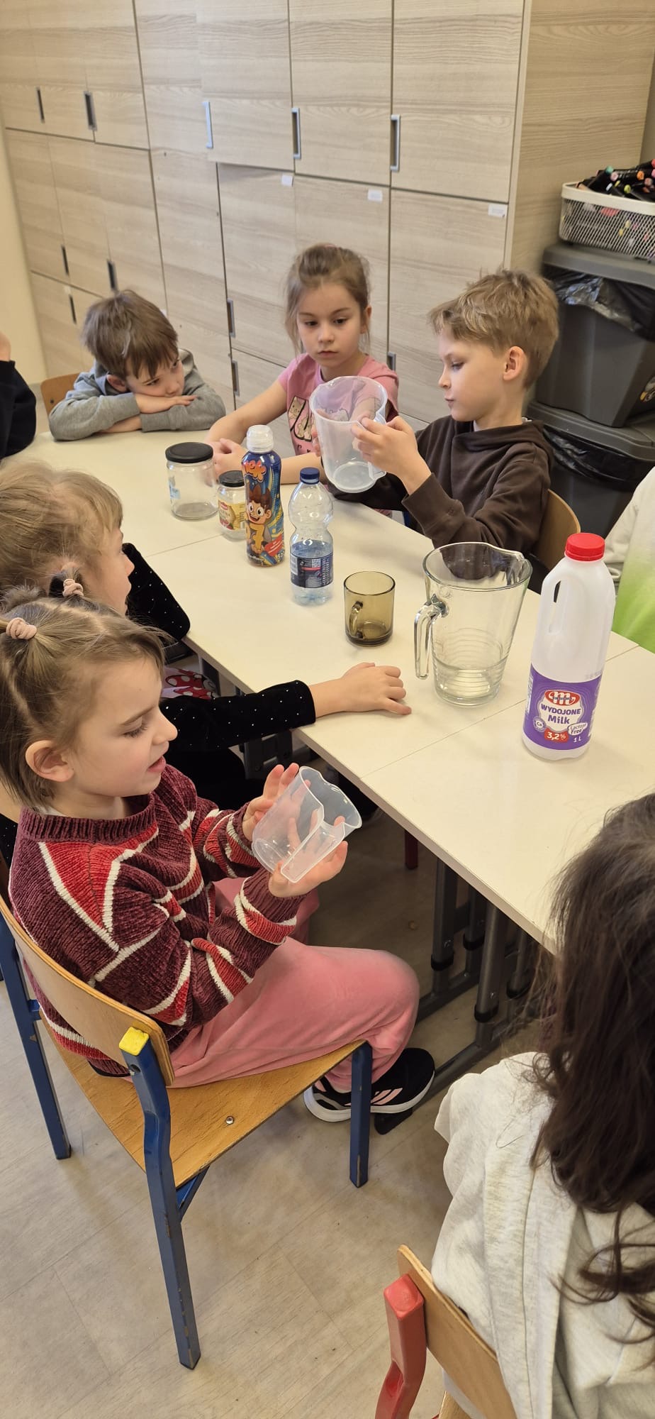 Dzisiaj eksperymentowaliśmy z wodą 💦. Poznawaliśmy co to jest litr i jak mierzyć pojemność różnych naczyń. To proste, ale jednocześnie ciekawe doświadczenie. Teraz już wiemy, jaką pojemność mają nasze ulubione napoje- wojanki😅.