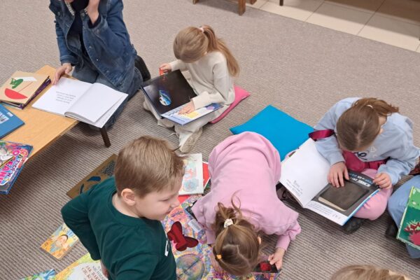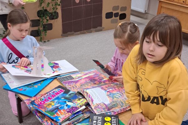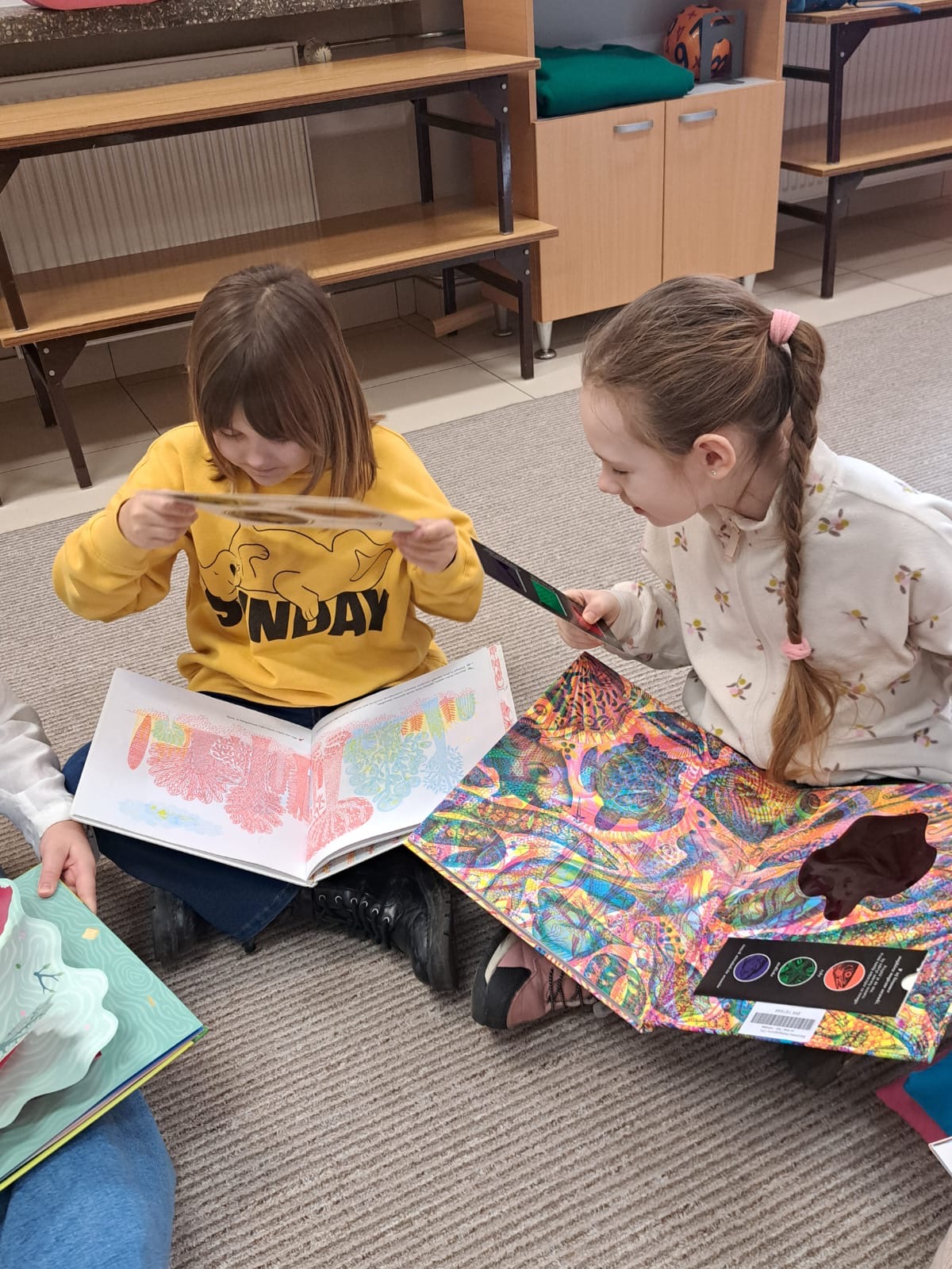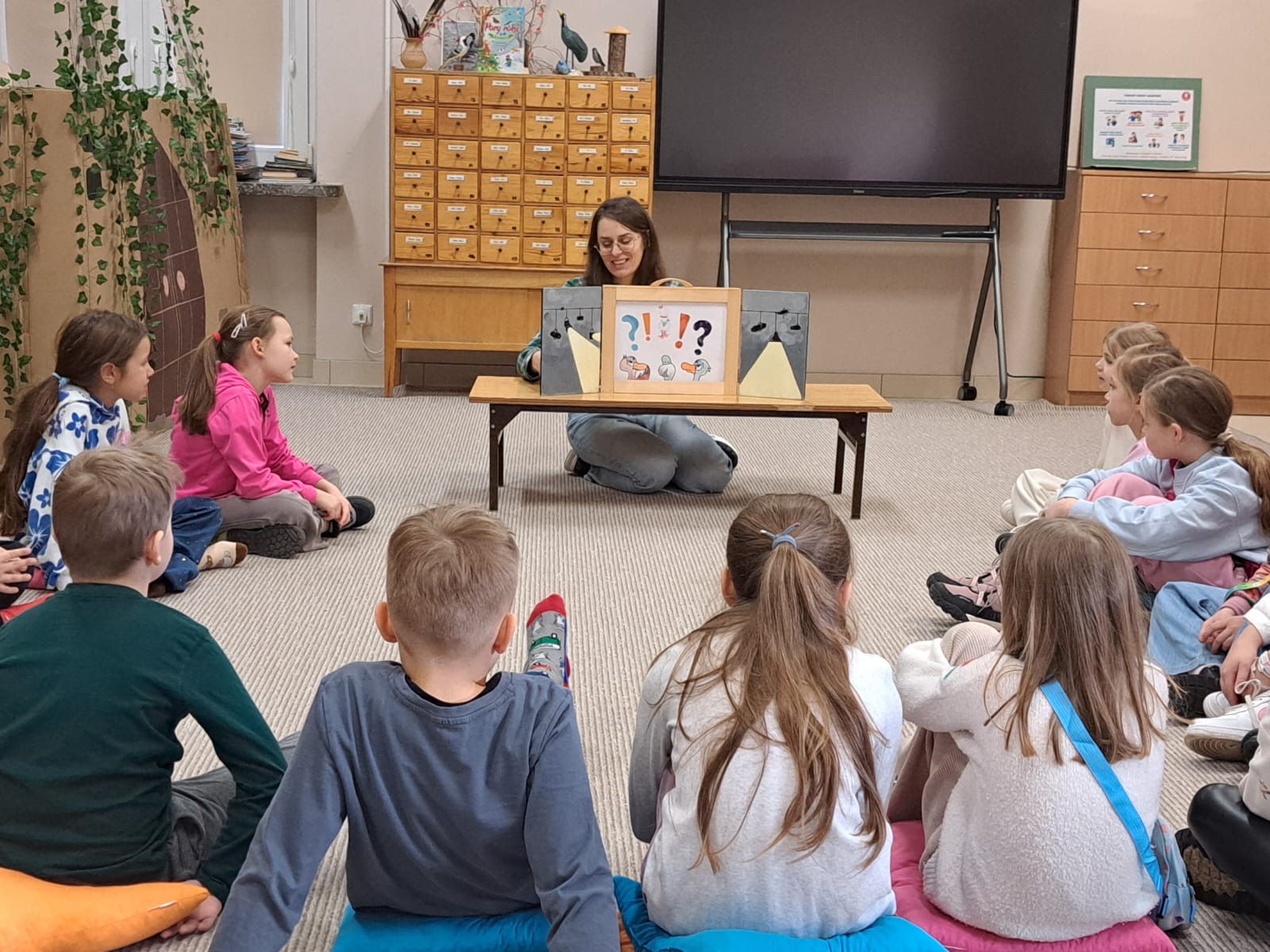 4 marca 2026 r. uczniowie klasy II odwiedzili bibliotekę w Centrum Edukacji Nauczycieli w Białymstoku. Podczas zajęć bibliotecznych zapoznali się z budową książki, procesem jej powstawania i zawodami ludzi, którzy ją tworzą. Dzieci miały też okazję poznać i obejrzeć różne rodzaje książek. Niezwykle emocjonujące było także zwiedzanie zakamarków biblioteki. 👻