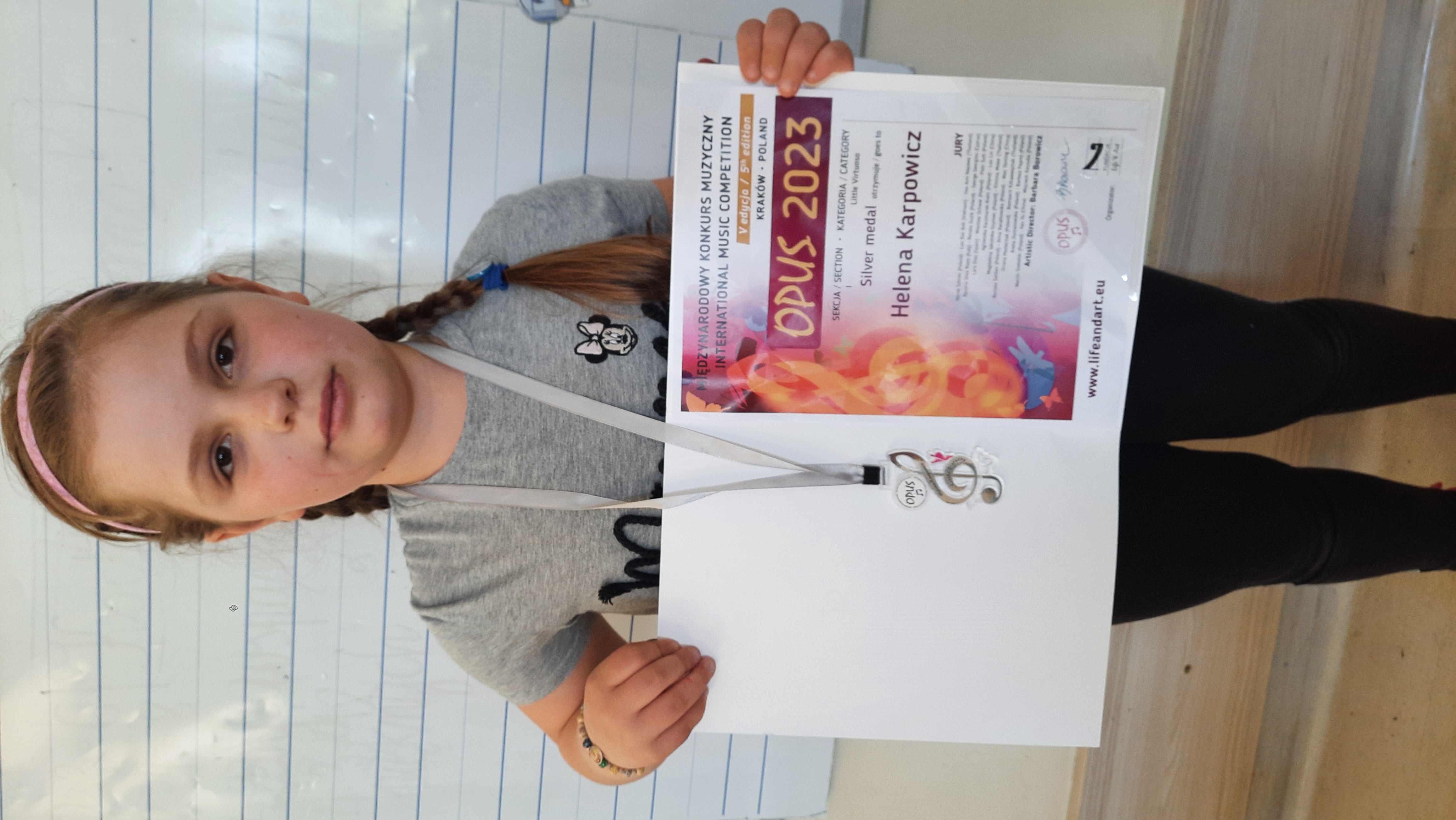 Kolejny sukces Helenki z klasy 1a. Tym razem na szczeblu międzynarodowym. Drugie miejsce to wspaniały wynik. Brawo Helenko!