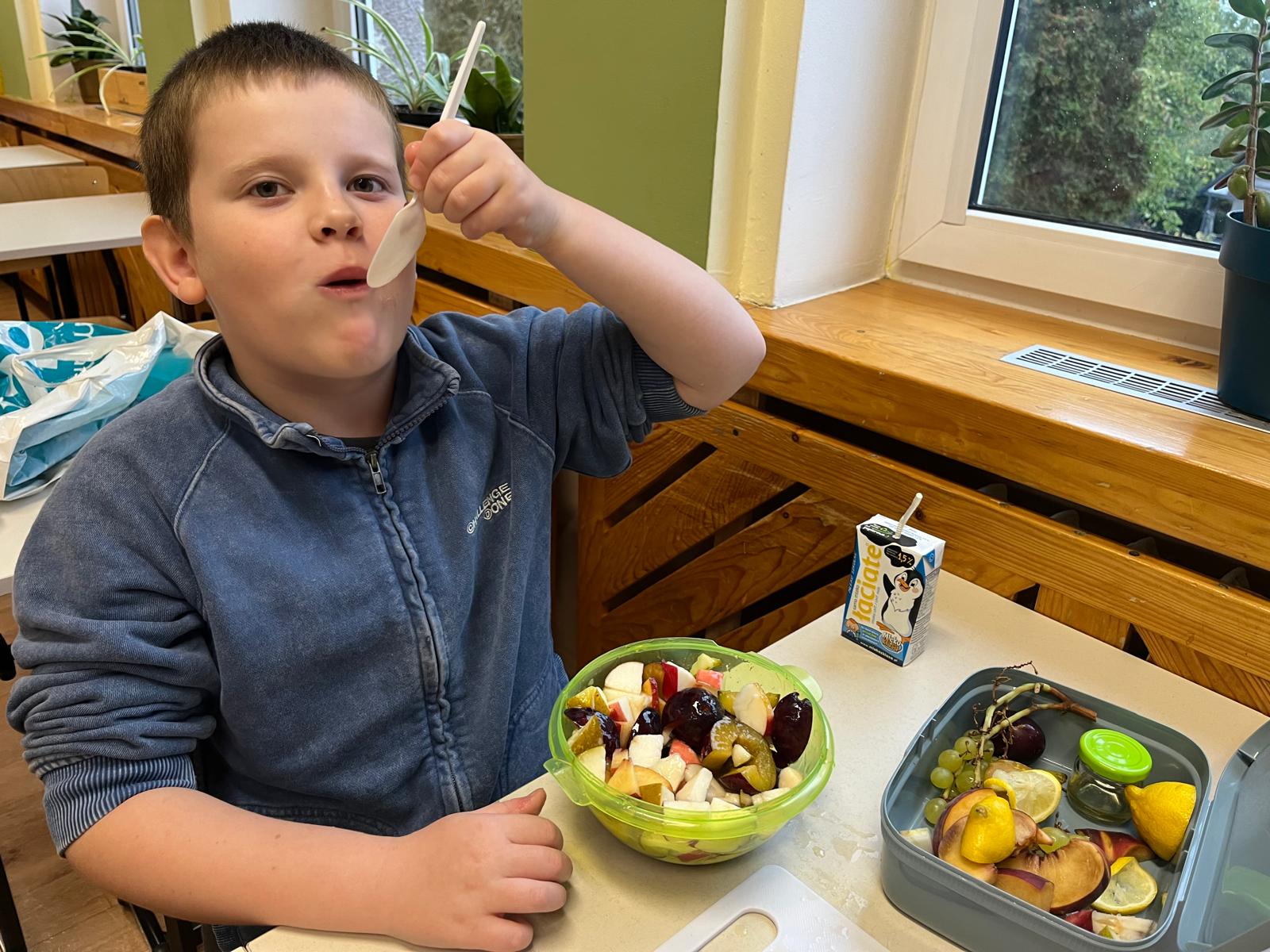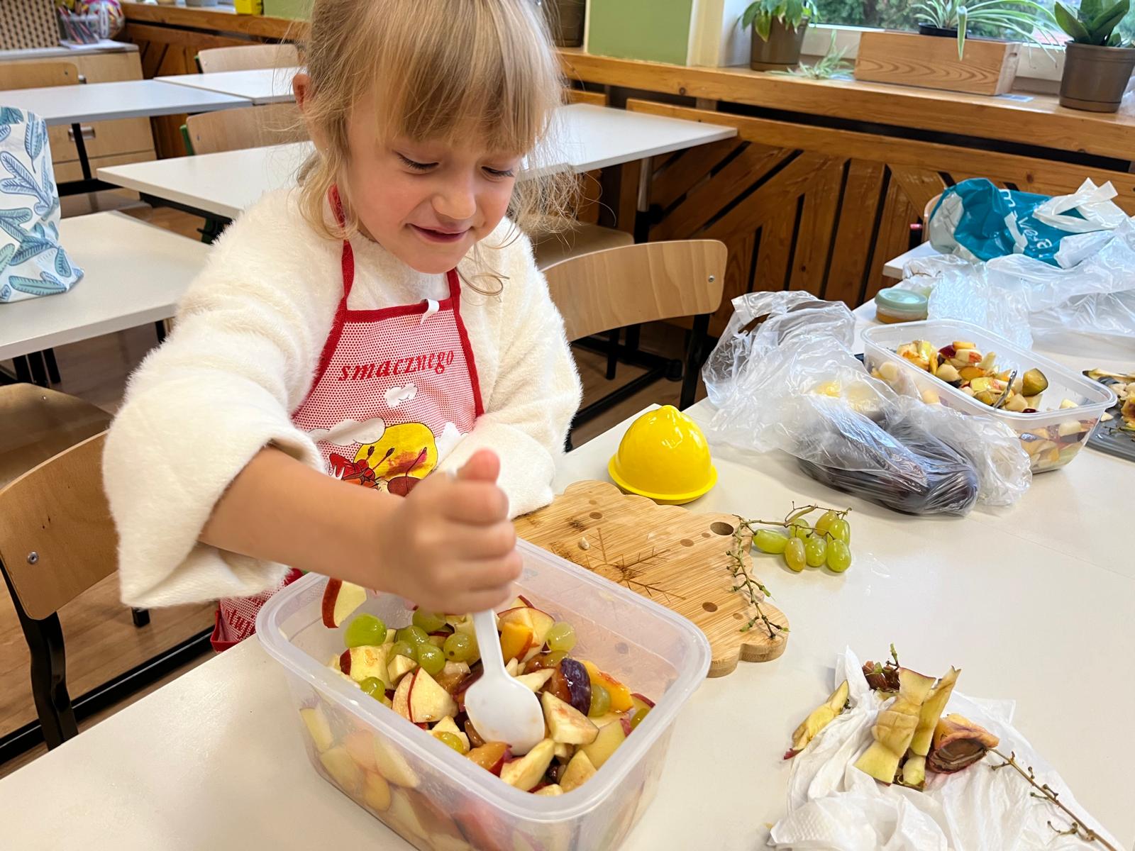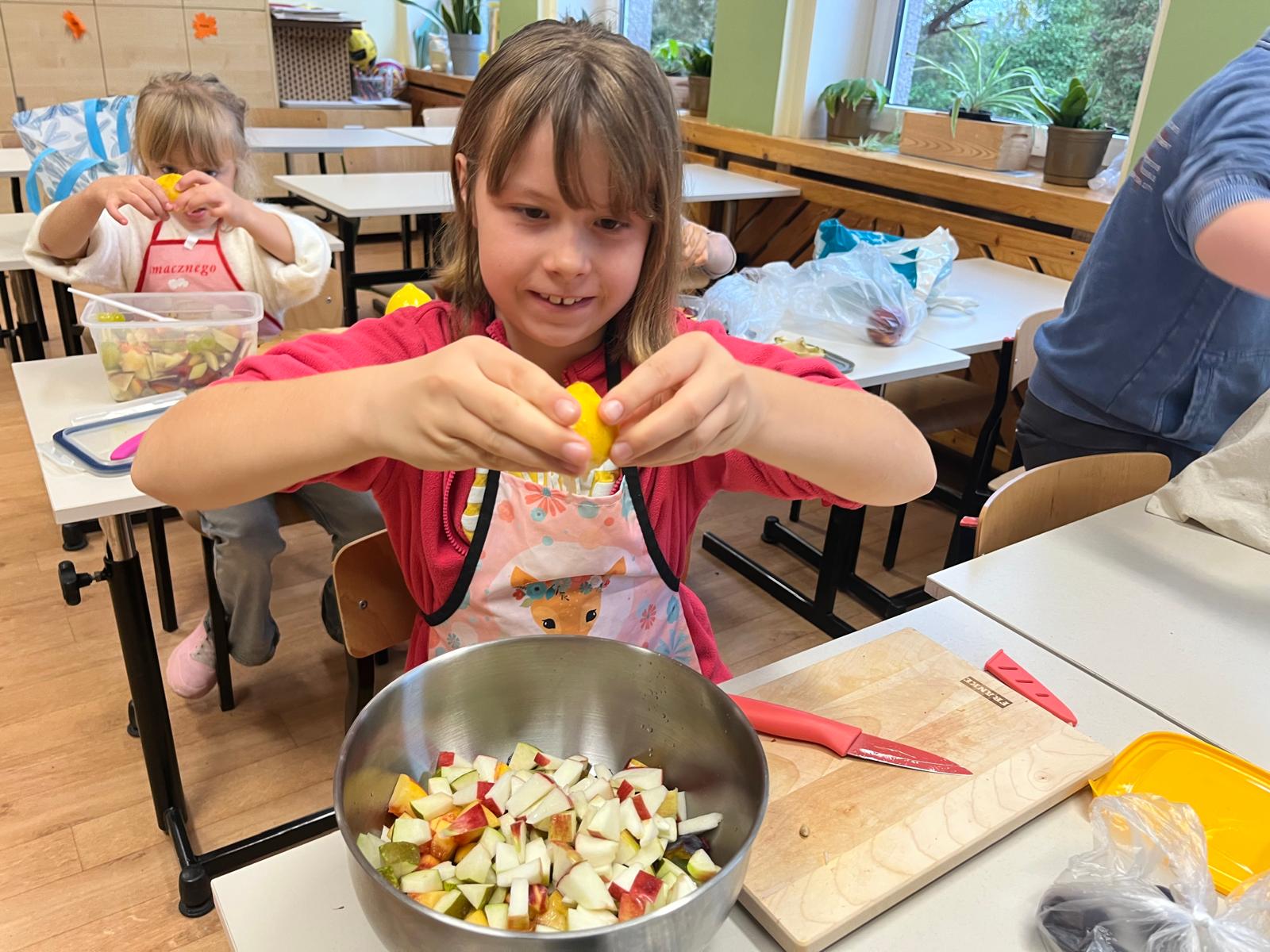 Koło kulinarne- Sałatka owocowa w kolorach jesieni doprawiona miodem i sokiem z cytryny wyszła super! Prawdziwa bomba witaminowa 🍎🍇🍐