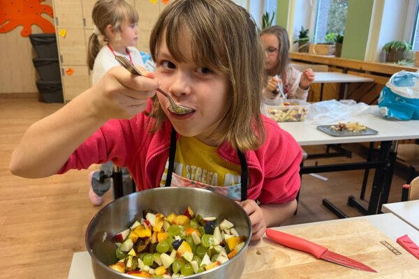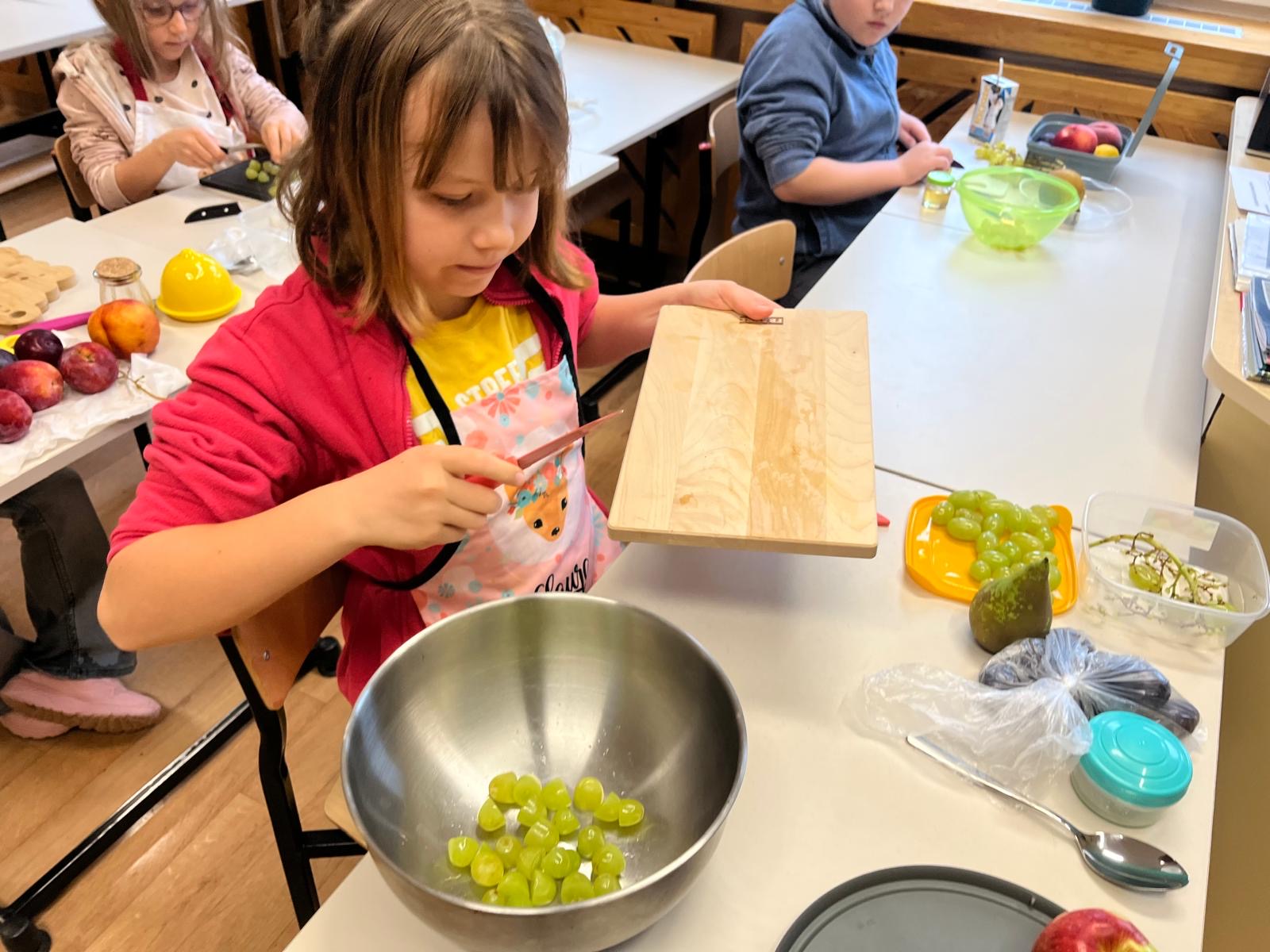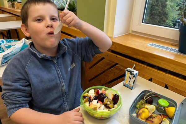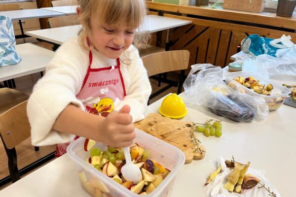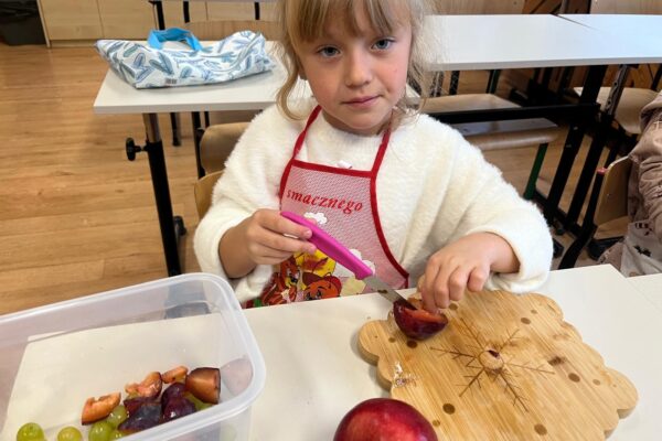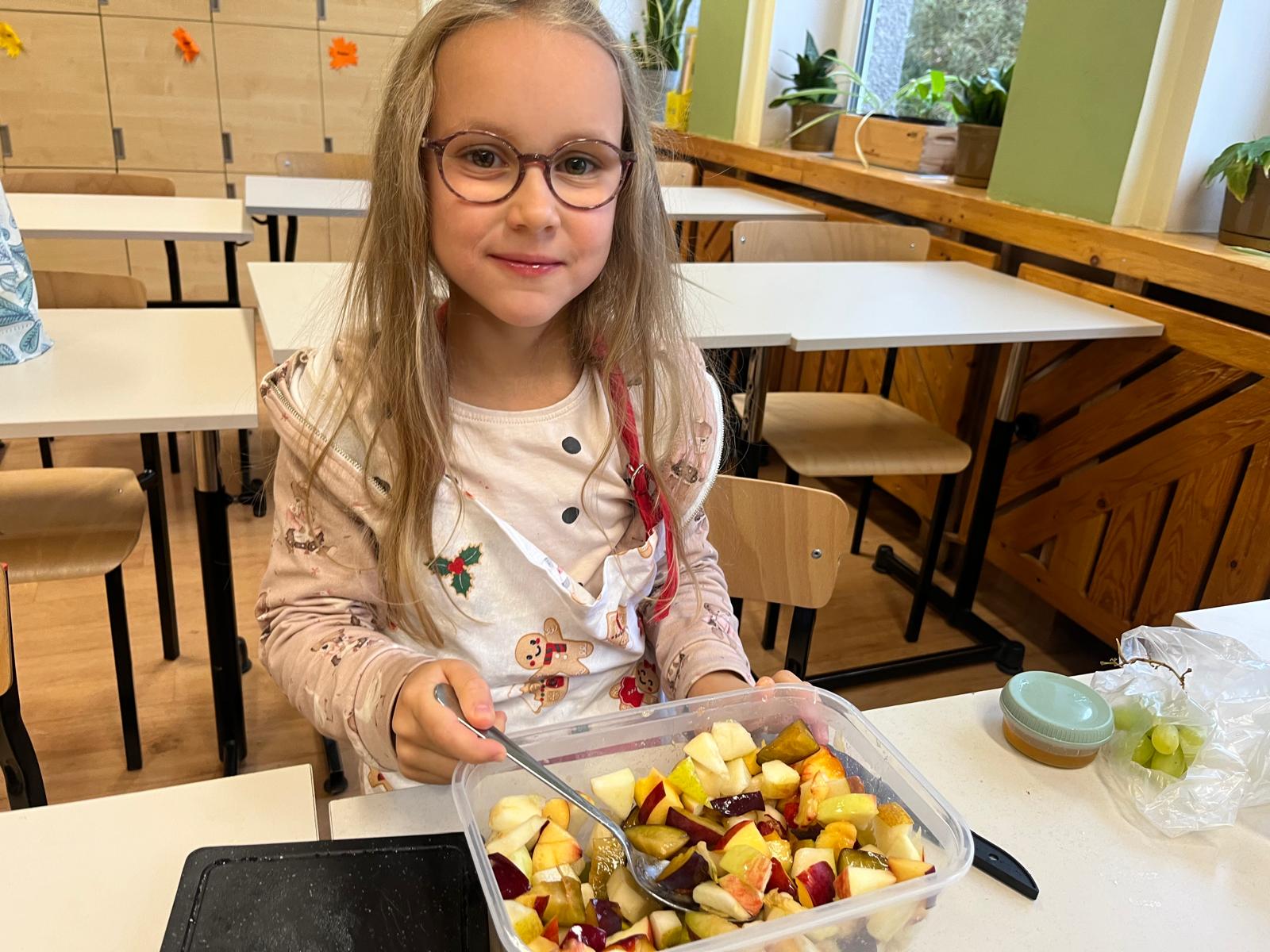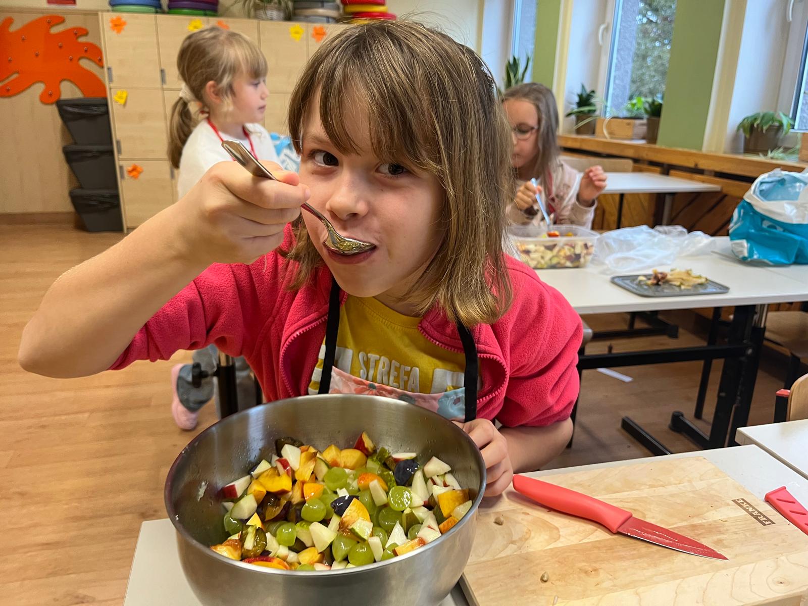 Koło kulinarne- Sałatka owocowa w kolorach jesieni doprawiona miodem i sokiem z cytryny wyszła super! Prawdziwa bomba witaminowa 🍎🍇🍐