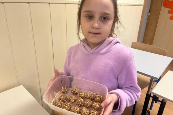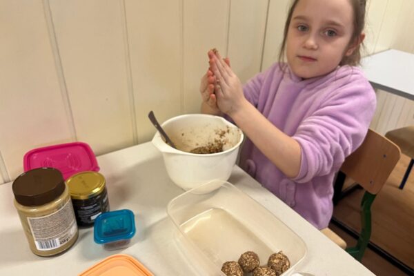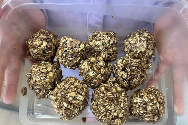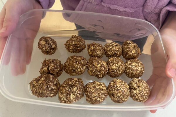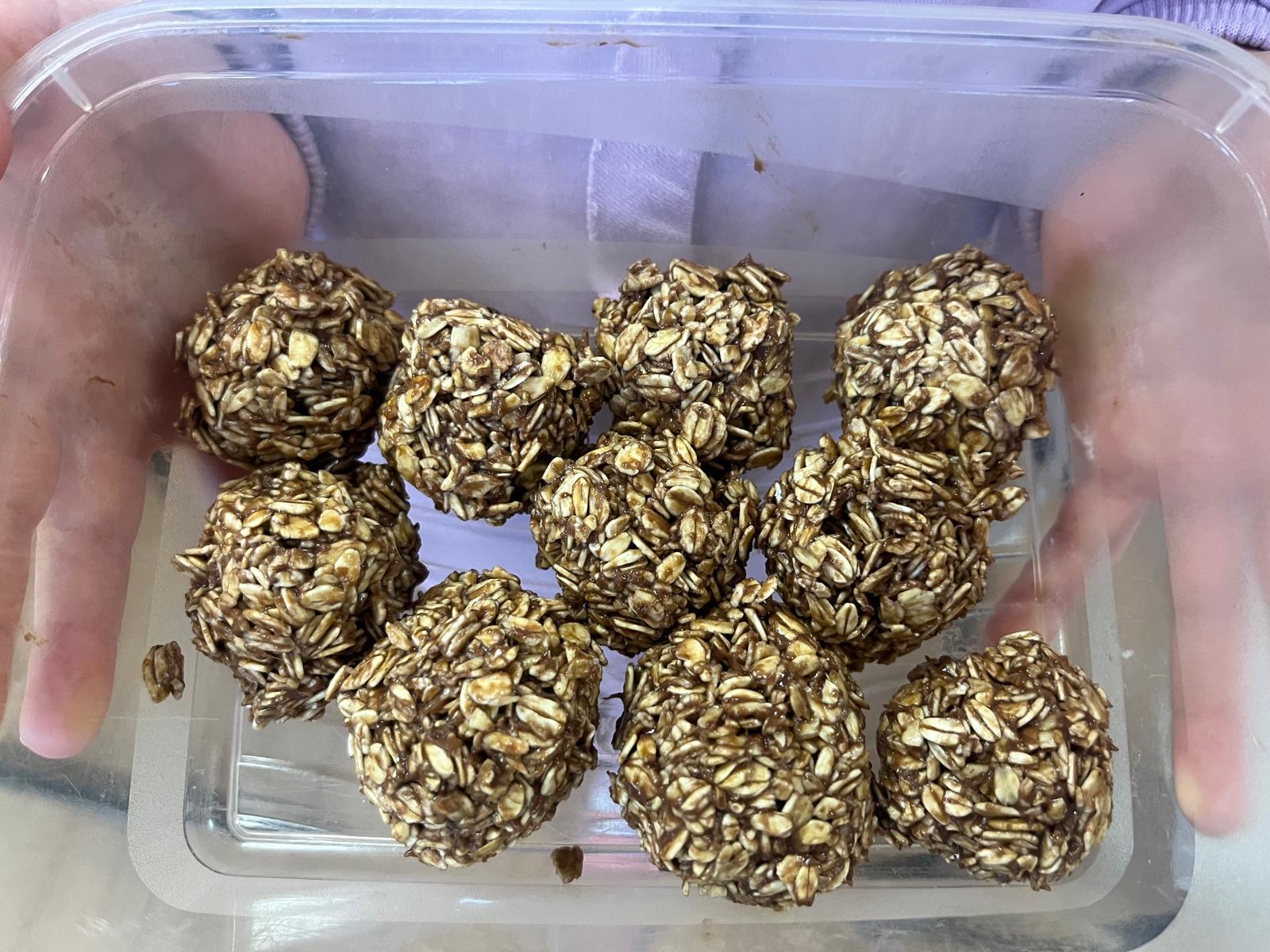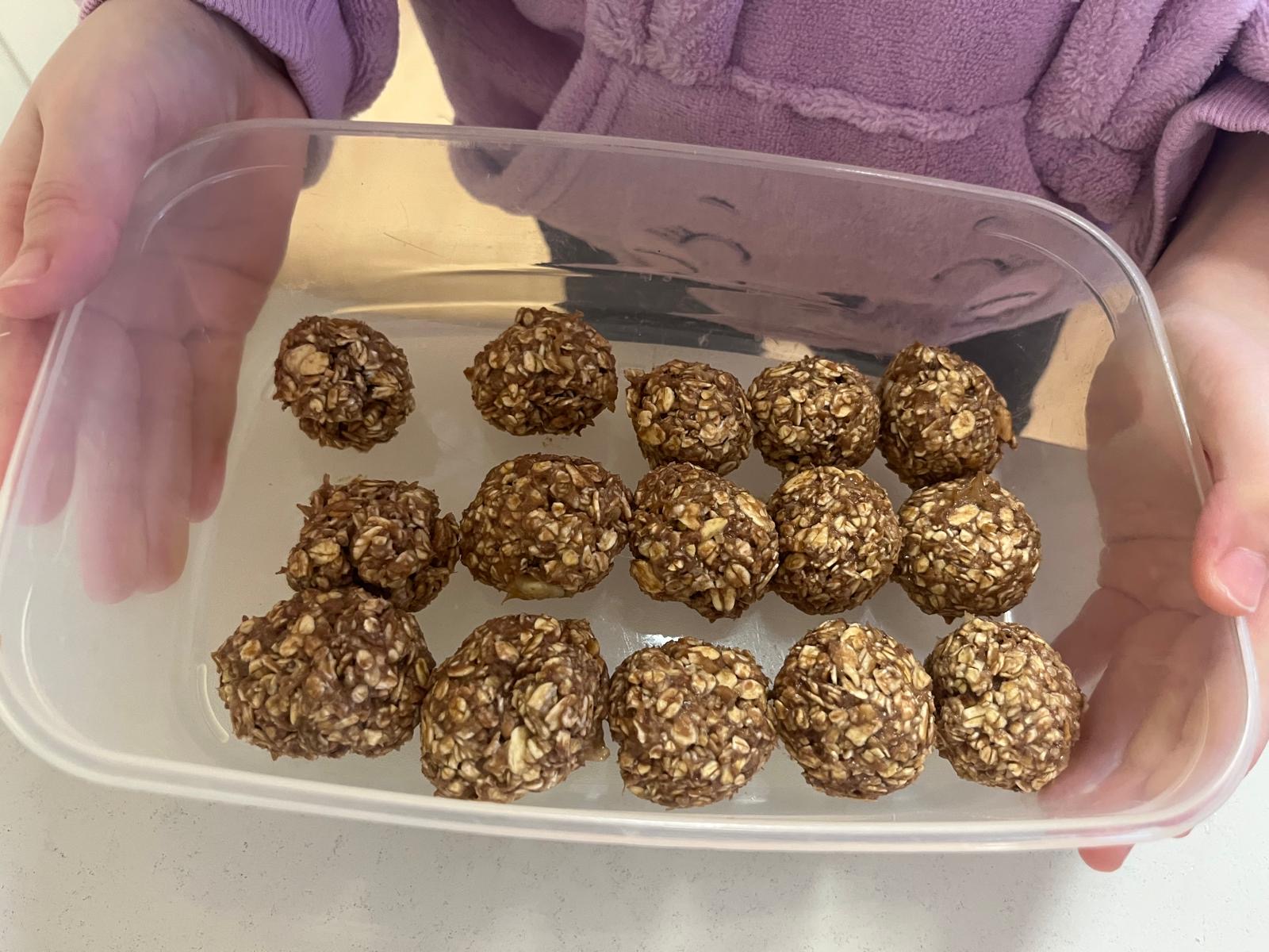 Trufle z płatków owsianych z dodatkiem banana i masła orzechowego to pyszna i zdrowa słodka przekąska. A przy okazji świetna zabawa z masą orzechową- zamiast plasteliny 🙂