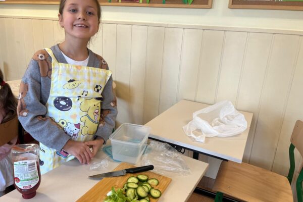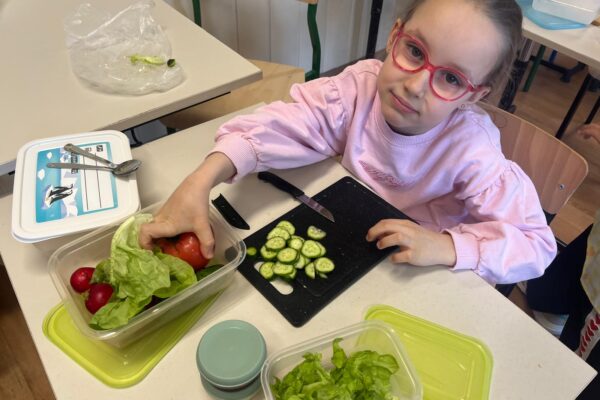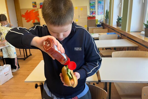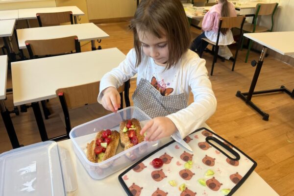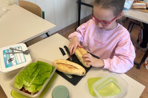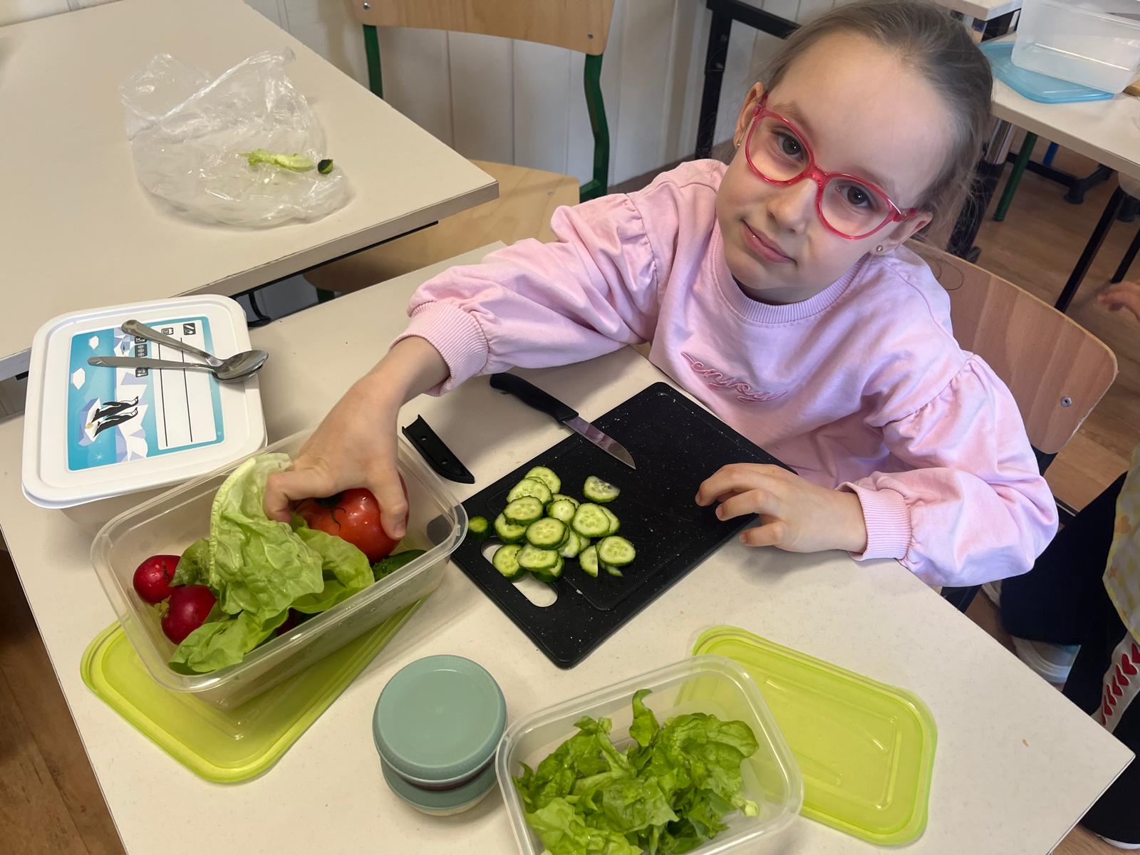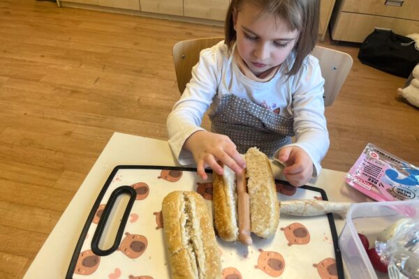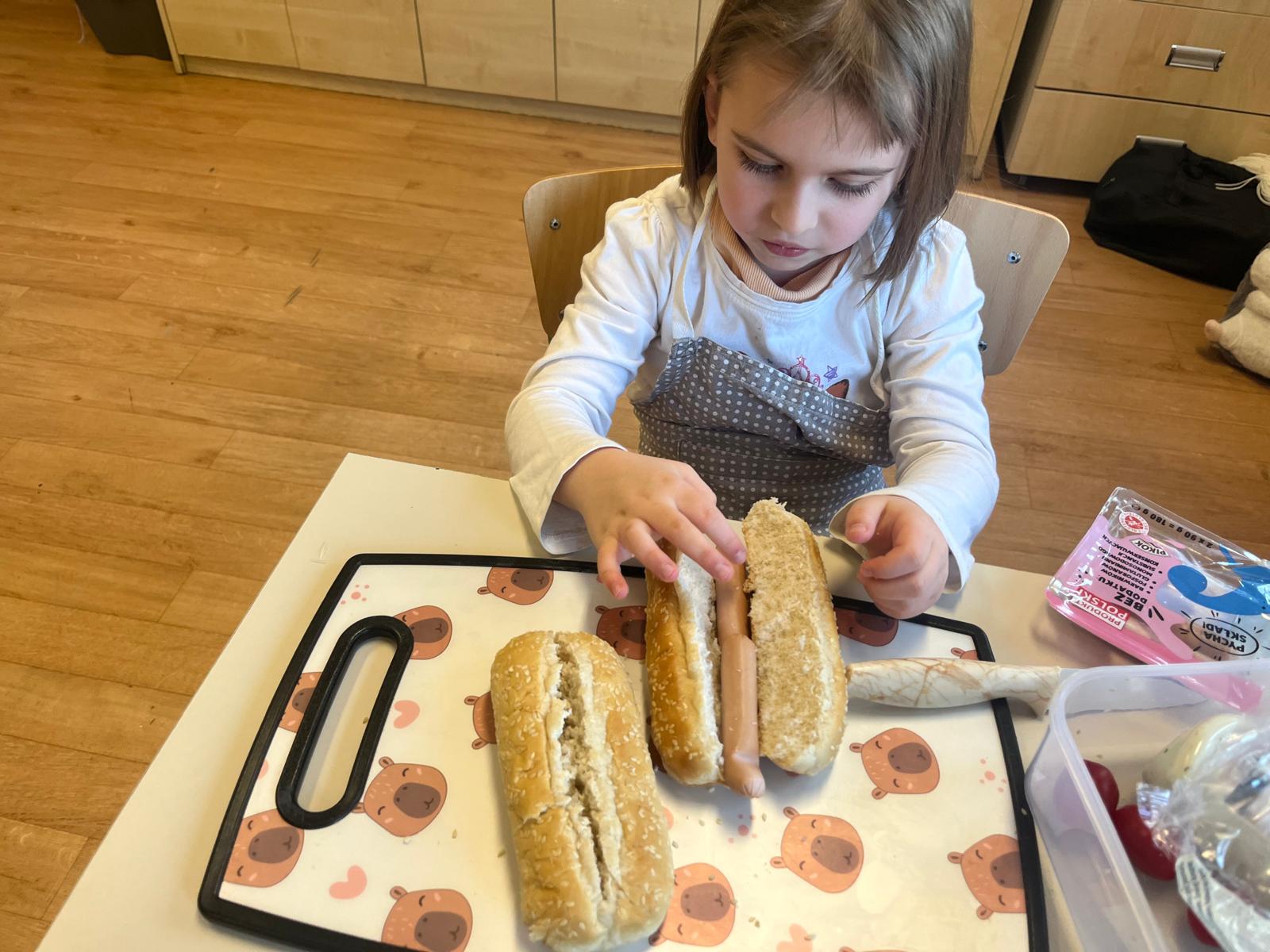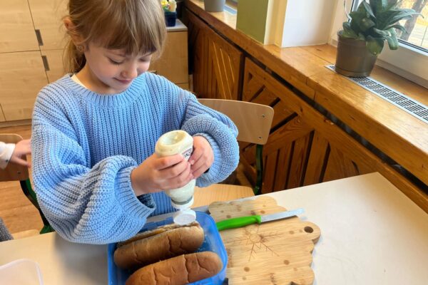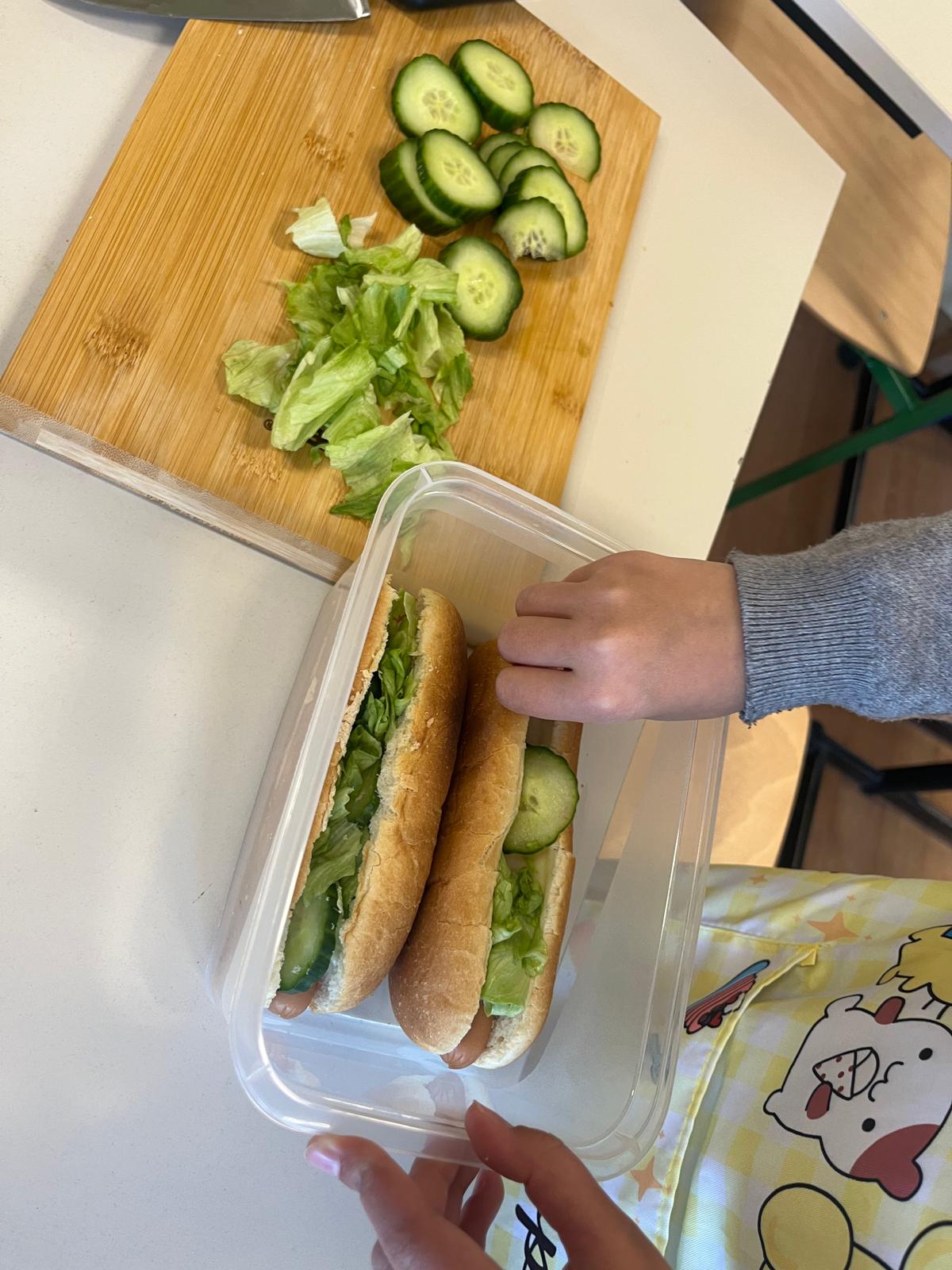 Hod dogi we własnym wykonaniu z ulubionymi dodatkami były smaczną propozycją na popołudnie w szkole. Uczestnicy z uśmiechem i ze smakiem skonsumowali swoje pyszności, które przygotowali z wykorzystaniem sprzętu zakupionego z programu Laboratoria Przyszłości.
