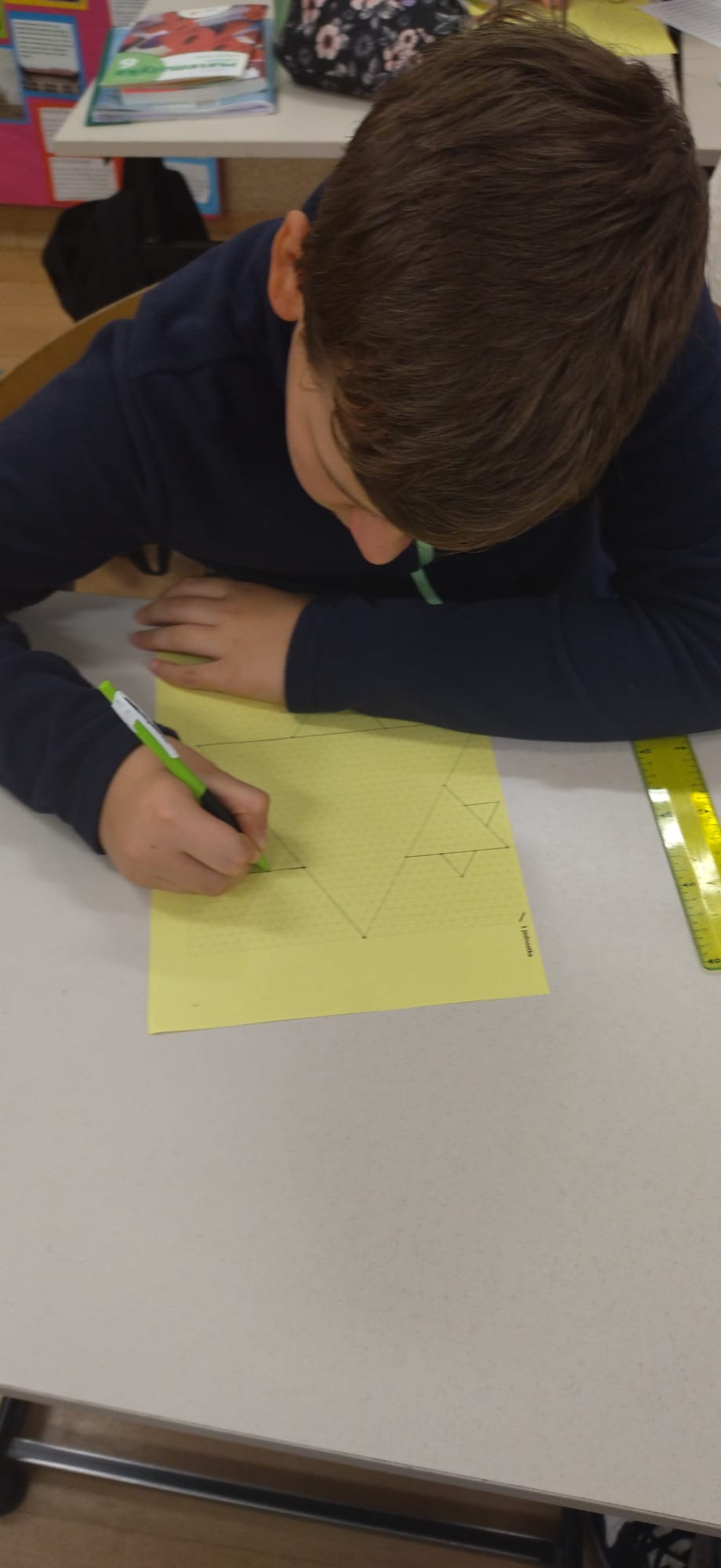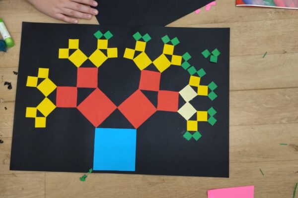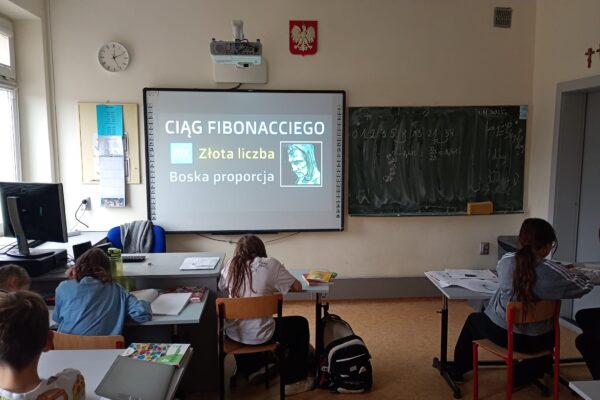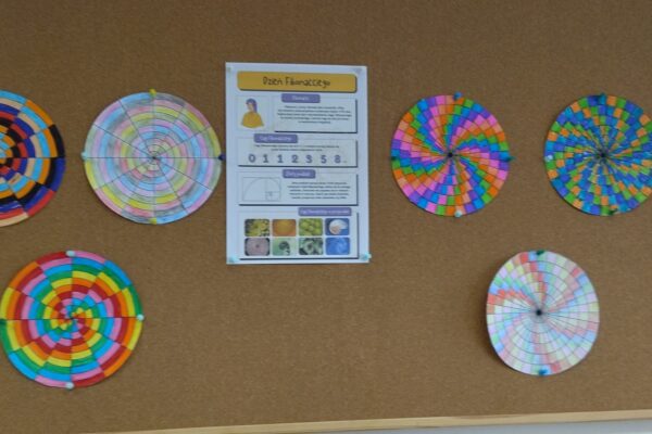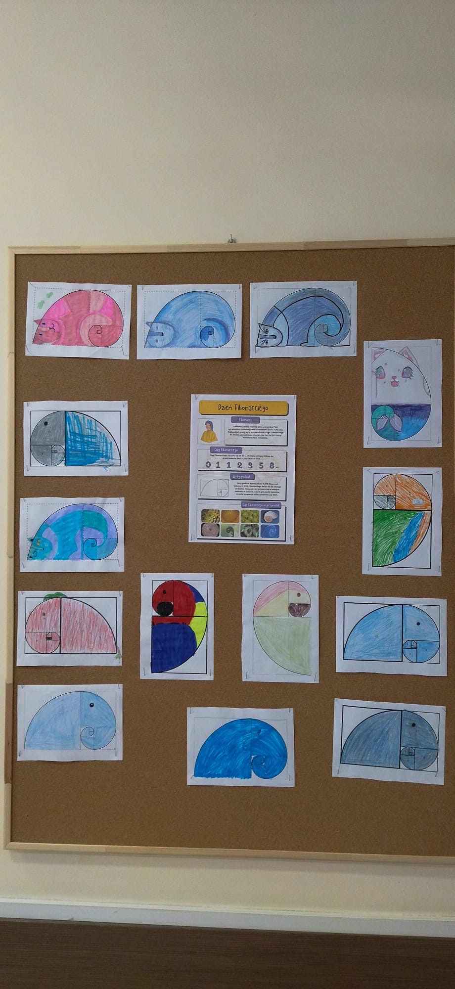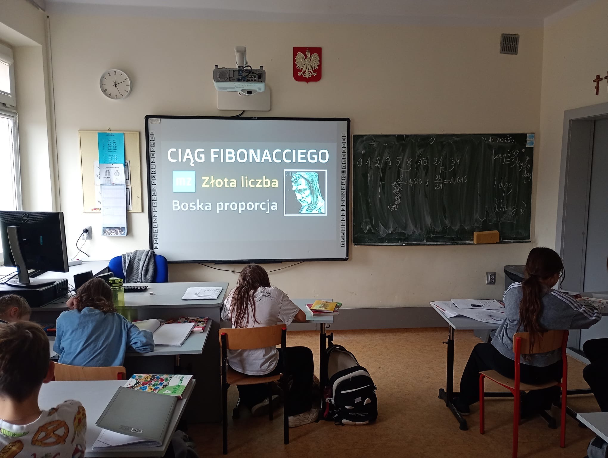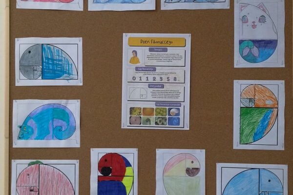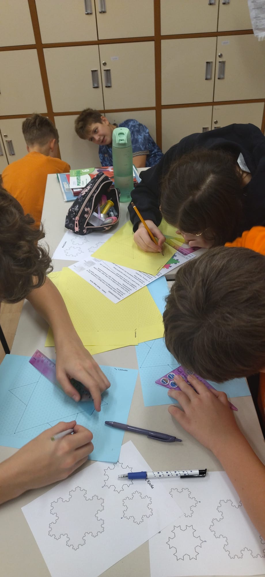 „Kreatywni na matematyce – na co dzień i od święta”. Tym razem uczniowie klasy 4a, 4b, 5 oraz 6a wkroczyli w fascynujący świat fraktali – poznali ich zasady, a następnie stworzyli własne drzewo Pitagorasa oraz trójkąty Sierpińskiego. Efekty były naprawdę imponujące! 🌳🔺 Dodatkowo dowiedzieli się, czym jest ciąg Fibonacciego, a następnie kolorowali elementy “Złotej spirali”. Matematyka może być kreatywna i pełna kolorów! 🎨📐