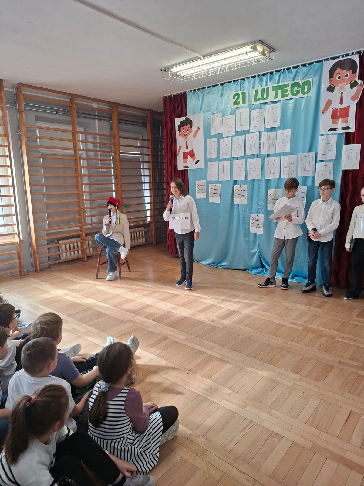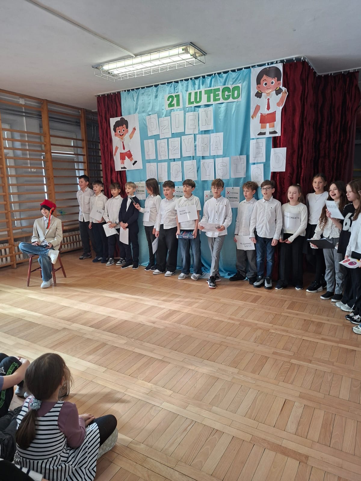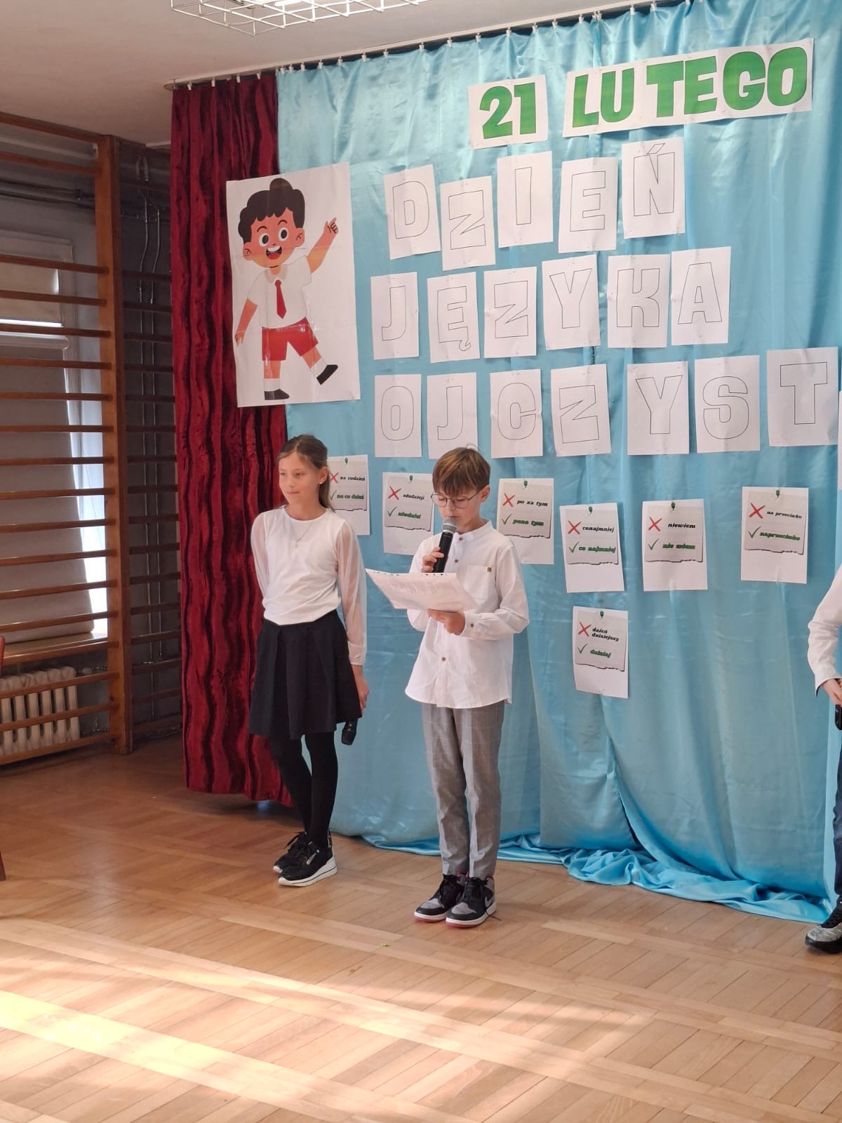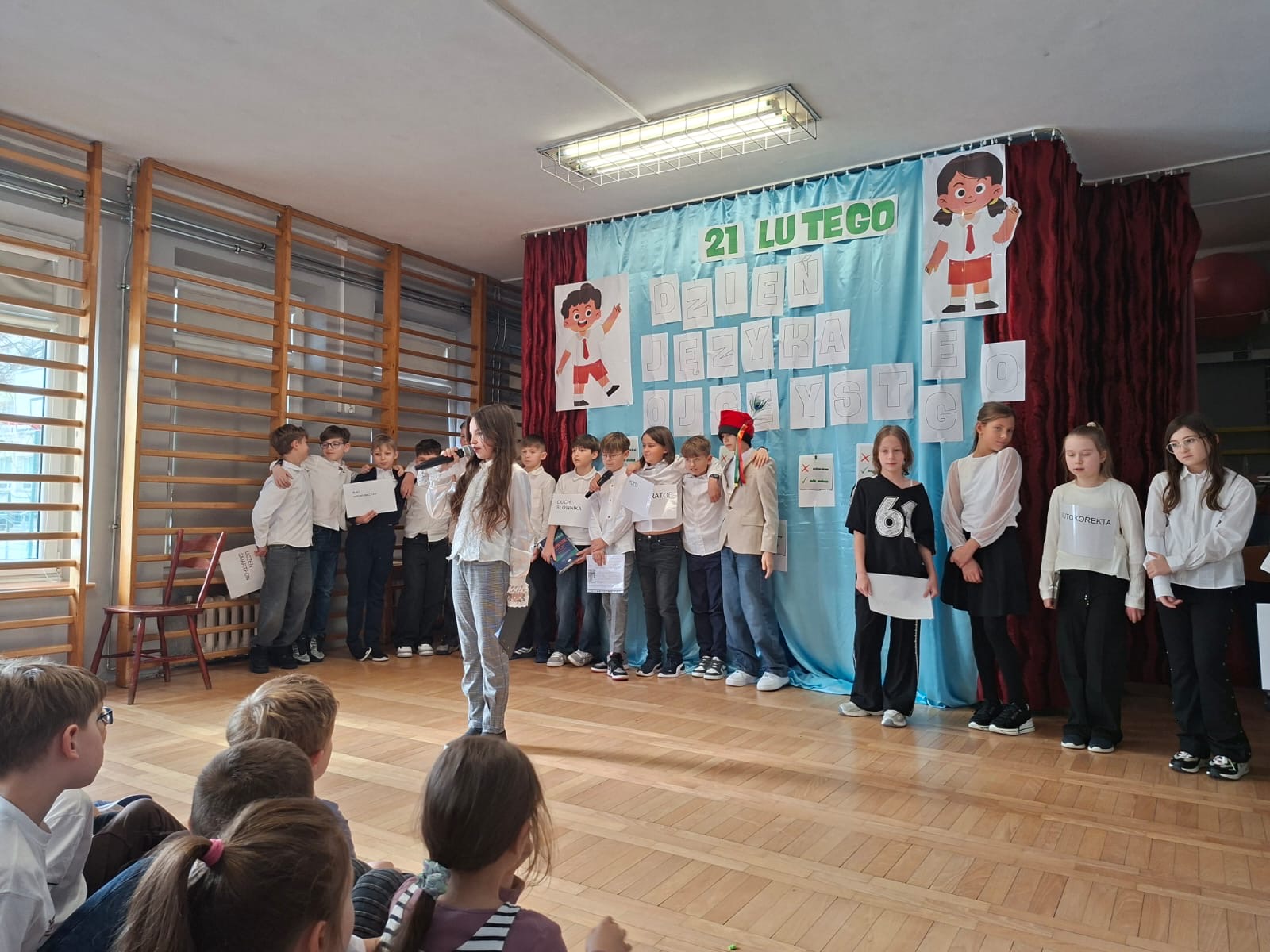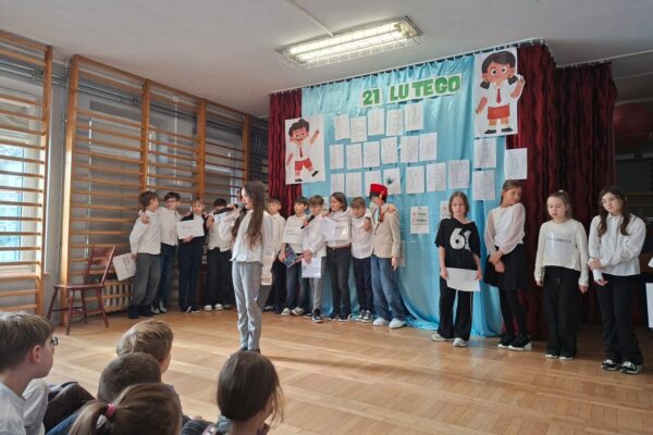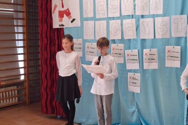 W naszej szkole czcimy je szczególnie uroczyście, podkreślając, że nasz język ojczysty jest dla nas ważny, kochamy go, szanujemy i o niego dbamy. Z tej okazji uczniowie klasy 4a przygotowali humorystyczne przedstawienie, którego celem było podkreślenie wartości, którą jest dla nas język polski.