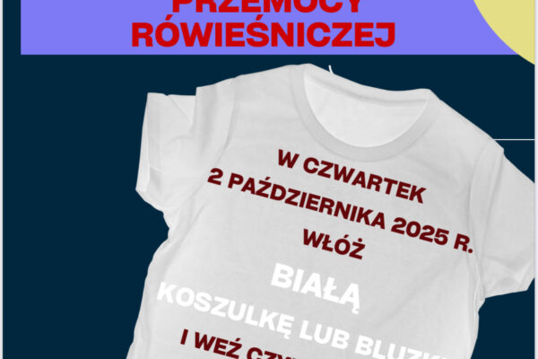 W czwartek 2 października 2025 r. włóż białą koszulkę lub bluzkę i weź czynny udział w szkolnej akcji “Stop przemocy rówieśniczej”