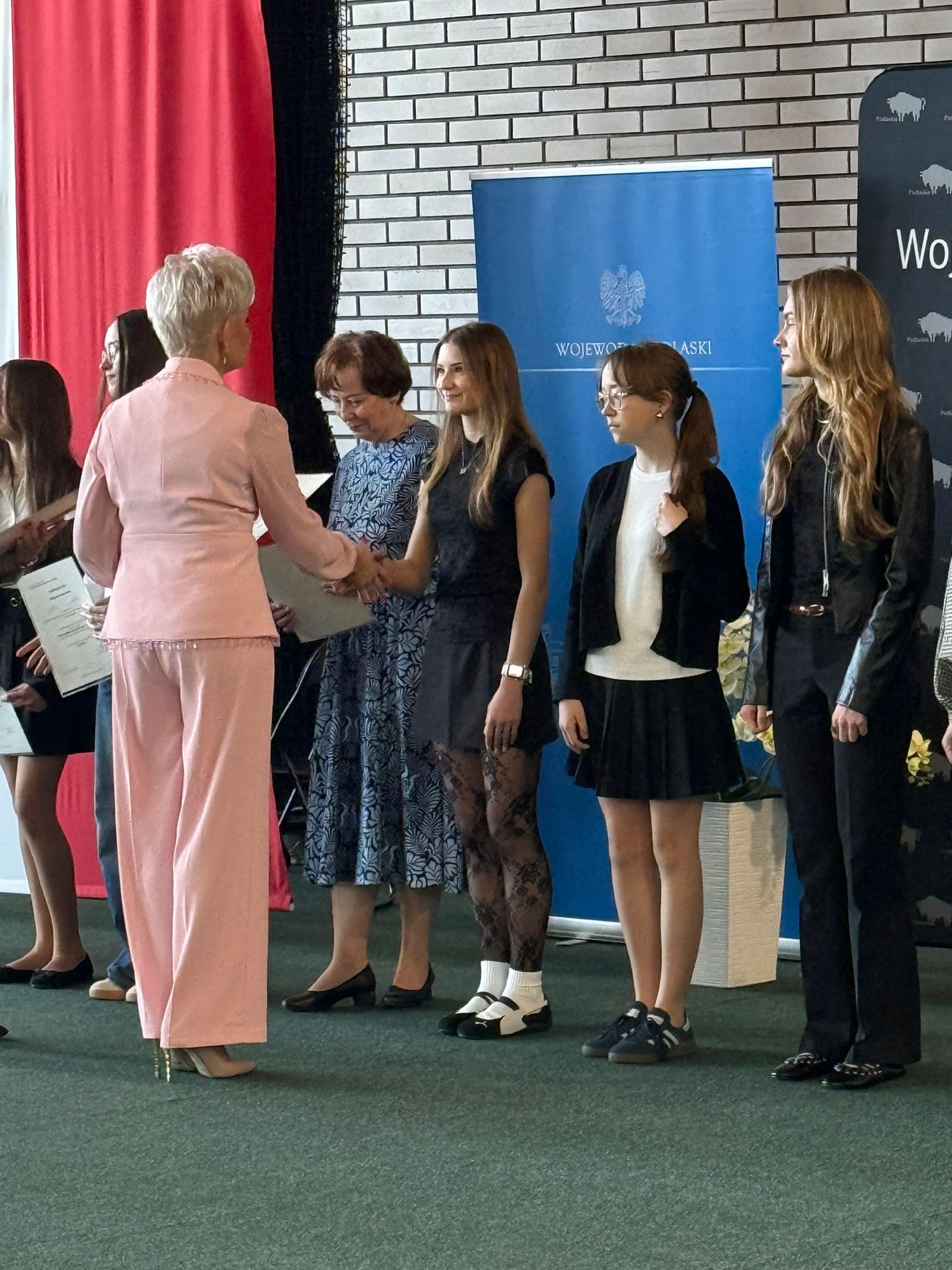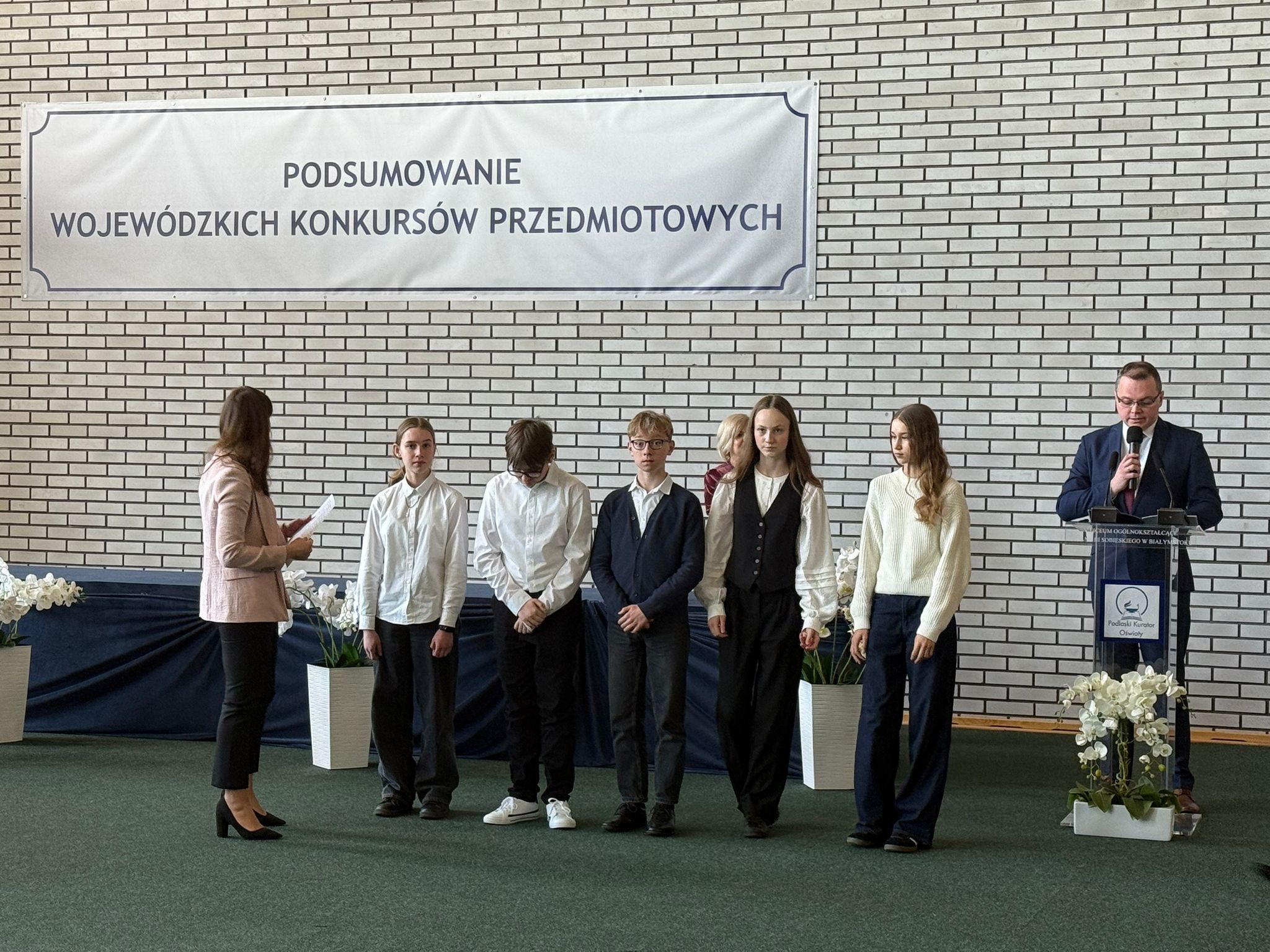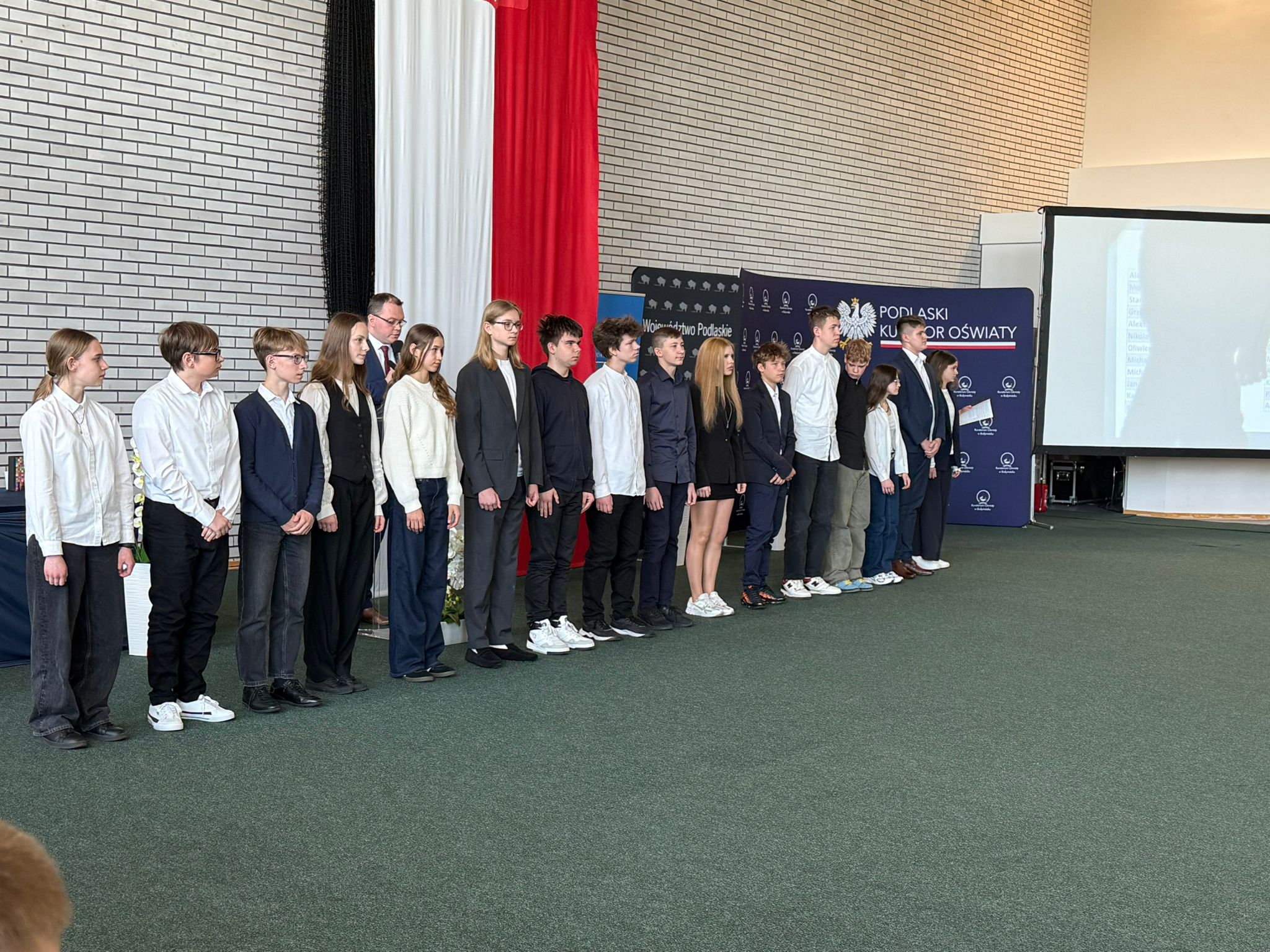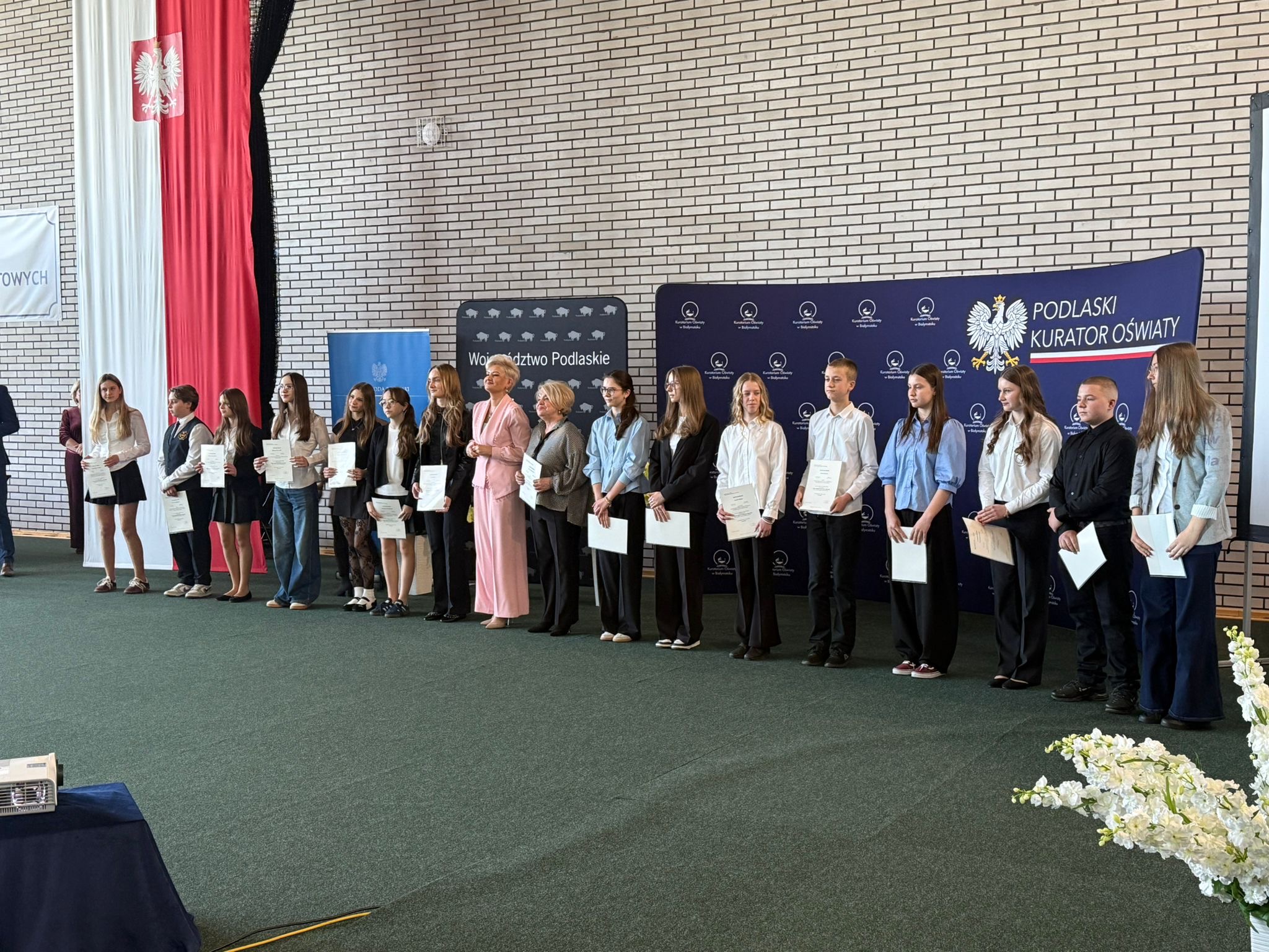 21 kwietnia odbyło się wręczenie nagród i dyplomów laureatom Wojewódzkich Konkursów Przedmiotowych. Z rąk Podlaskiego Kuratora Oświaty Agnieszki Krokos-Janczyło dyplomy i zaświadczenia odebrali nasi uczniowie: Adam Wyszkowski kl. 8 – j. angielski i matematyka, Alicja Falkowska kl. 8 – biologia, Monika Aniserowicz kl. 7 – matematyka oraz Maciej Tyborowski kl. 8 – j. angielski. Serdecznie gratulujemy i życzymy dalszych sukcesów!