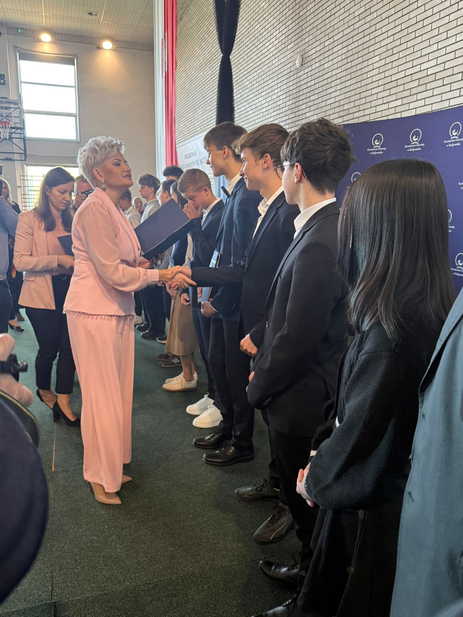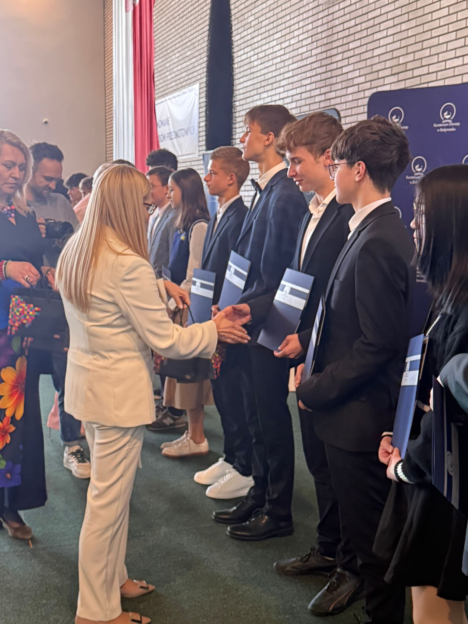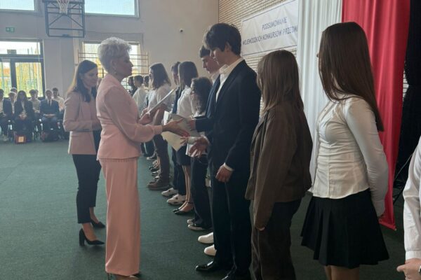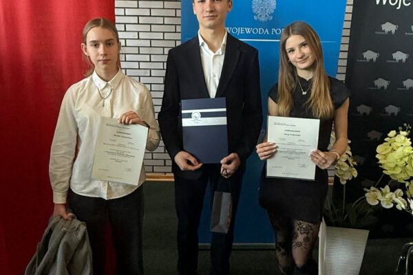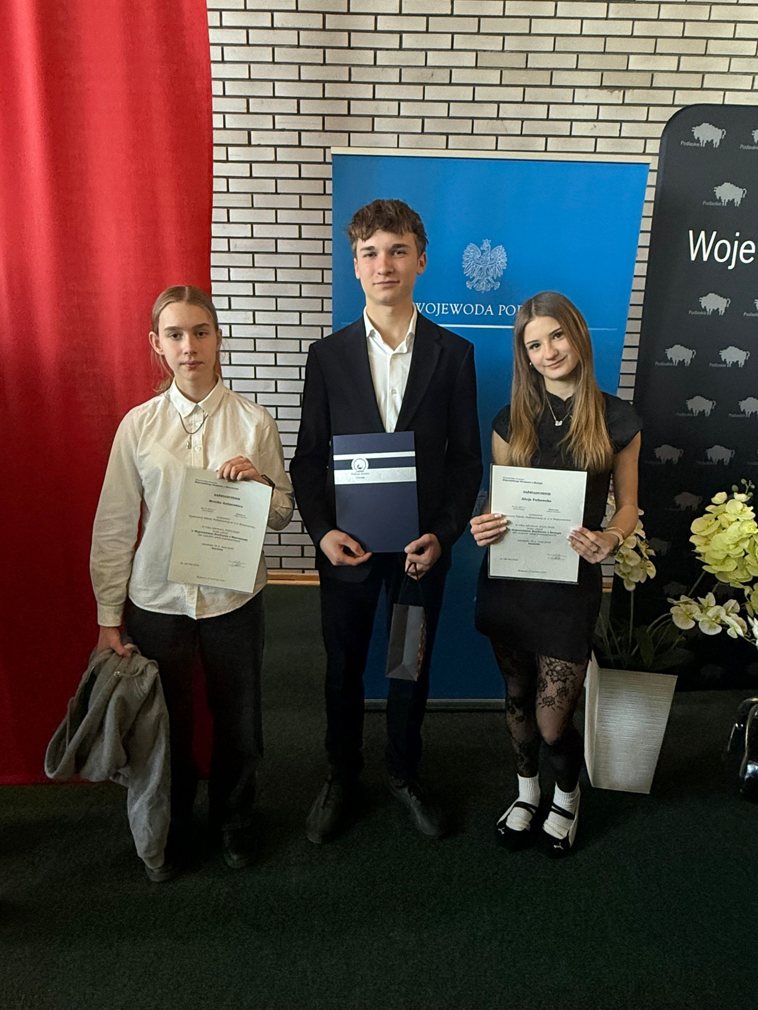21 kwietnia odbyło się wręczenie nagród i dyplomów laureatom Wojewódzkich Konkursów Przedmiotowych. Z rąk Podlaskiego Kuratora Oświaty Agnieszki Krokos-Janczyło dyplomy i zaświadczenia odebrali nasi uczniowie: Adam Wyszkowski kl. 8 – j. angielski i matematyka, Alicja Falkowska kl. 8 – biologia, Monika Aniserowicz kl. 7 – matematyka oraz Maciej Tyborowski kl. 8 – j. angielski. Serdecznie gratulujemy i życzymy dalszych sukcesów!
