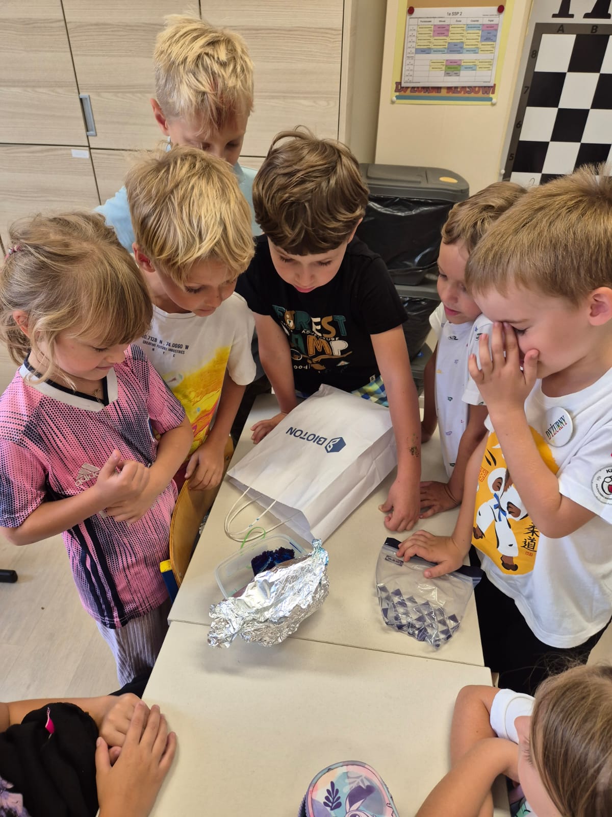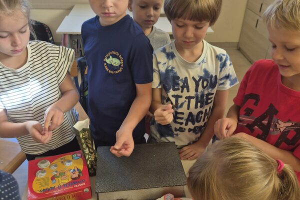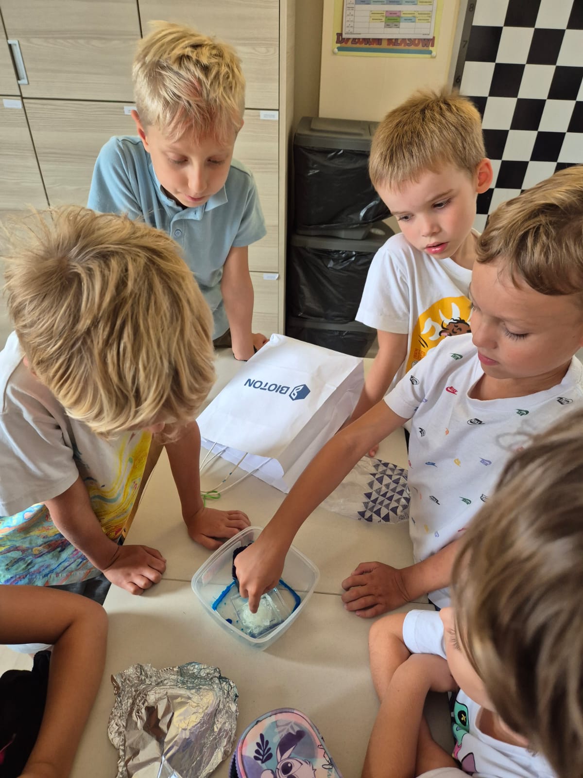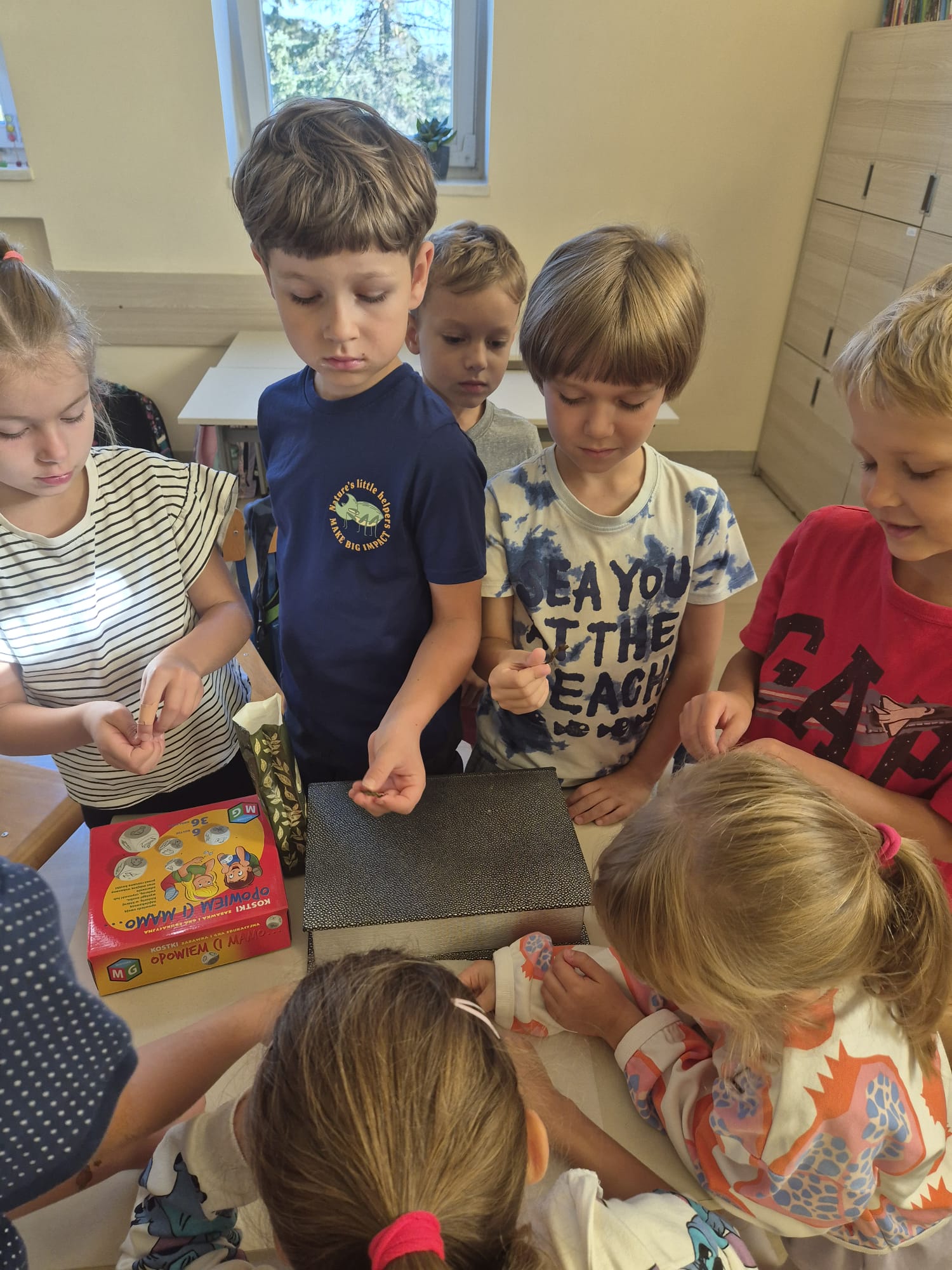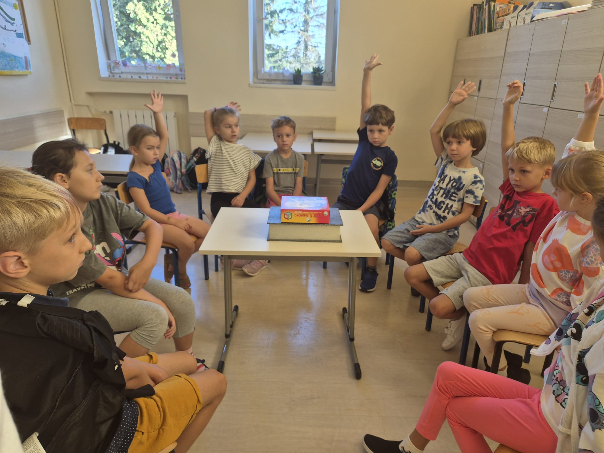 Wrzesień w klasie 1a to czas wzajemnego poznawania się i integracji. Były obserwacje żab i jaszczurek oraz kryształów, zabawy integracyjne, spacer, pierwsze klasowe urodziny. Obchodziliśmy też Miedzynarodowy Dzień Kropki. Każdy tydzień zaczynamy poniedziałkowym kręgiem i codziennie czytamy to, co lubimy. Jesteśmy bardzo różni i od samego początku staramy się budować między nami dobre relacje.
