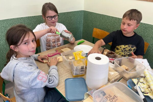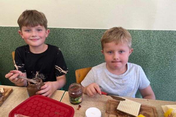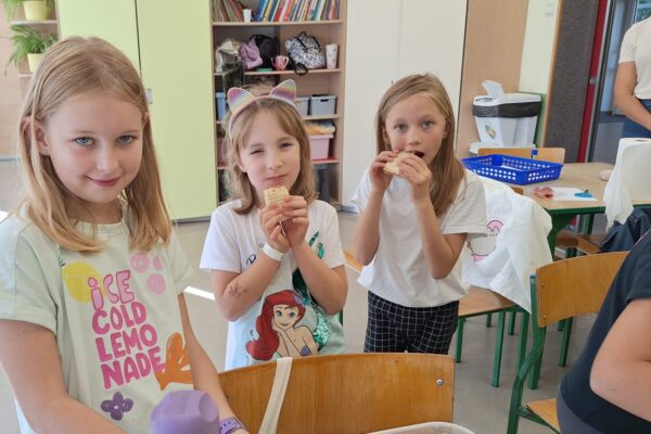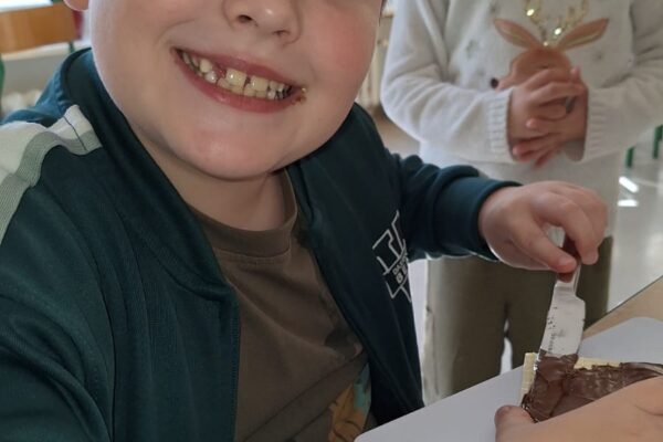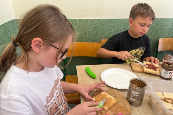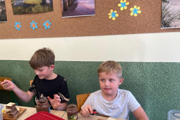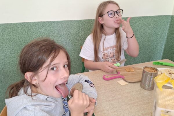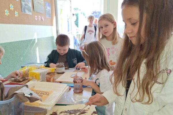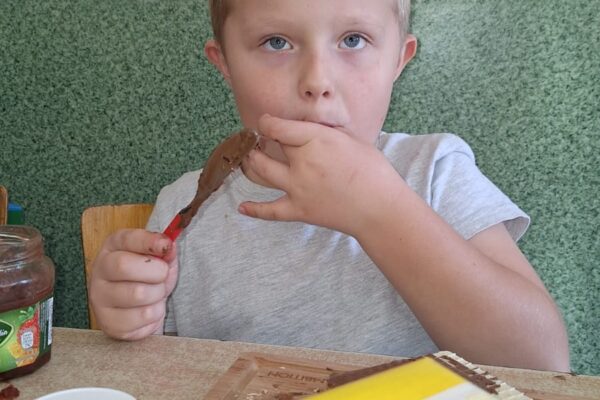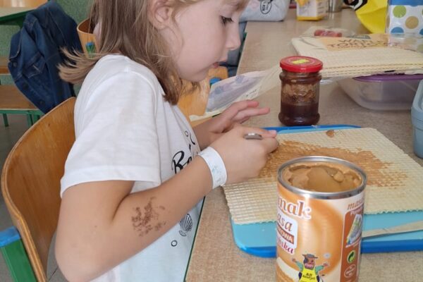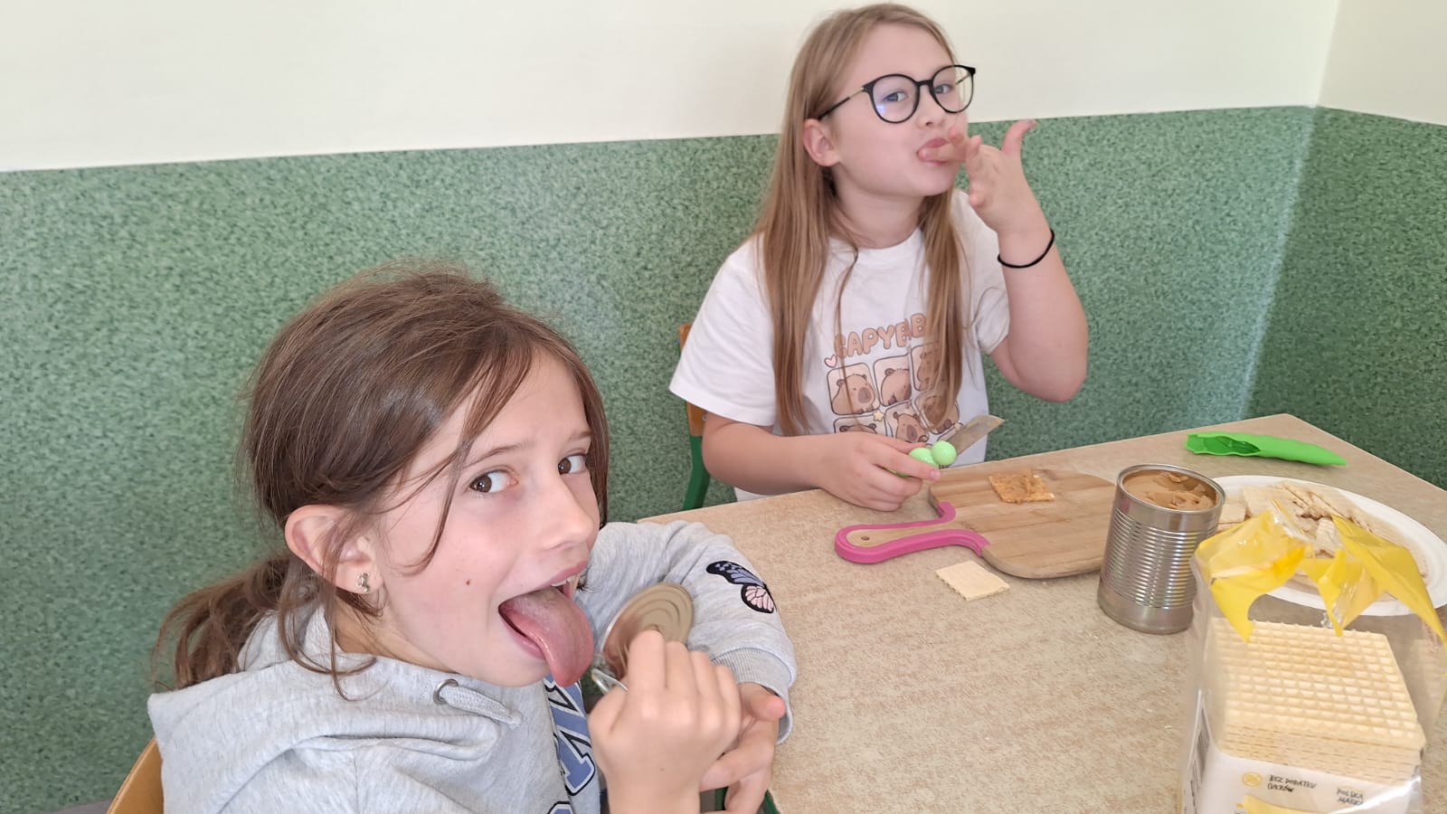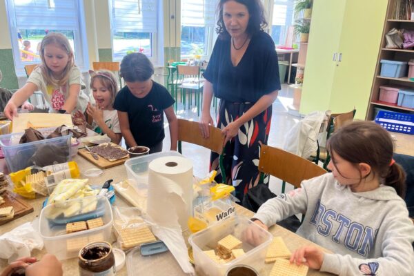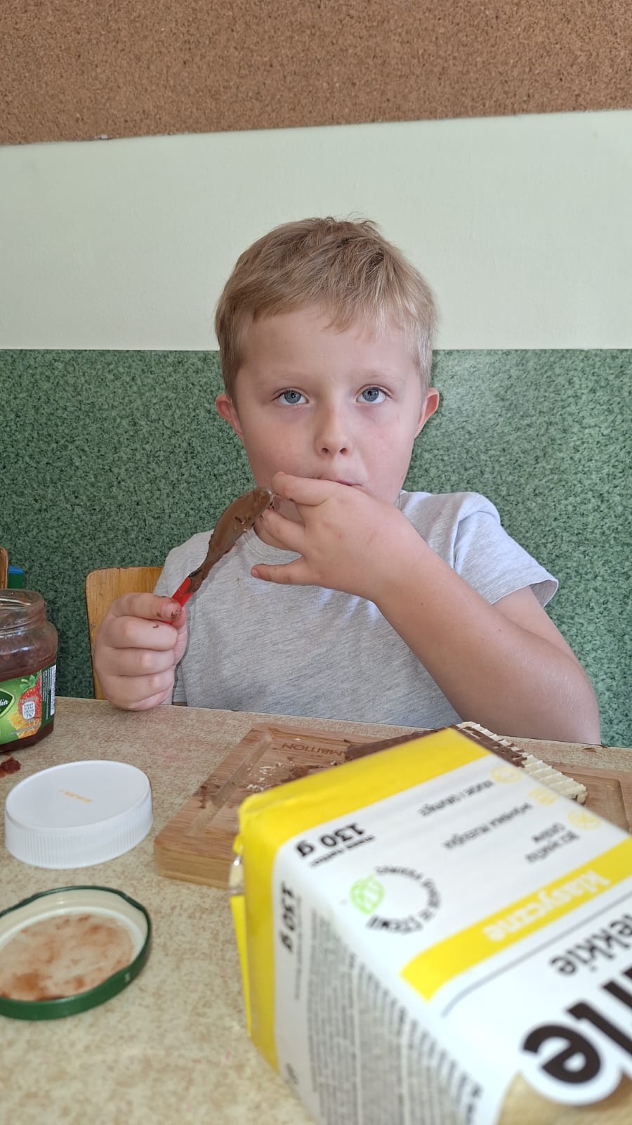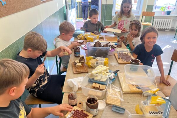 Na zajęciach kulinarnych w ruch poszły wafle małe i wafle duże. Nożyki sprawnie smarowały, a dzieci paluszki oblizywały. Potem równiutko pokroiły i w pudełeczkach umieściły, a w domu rodzinkę ugościły.