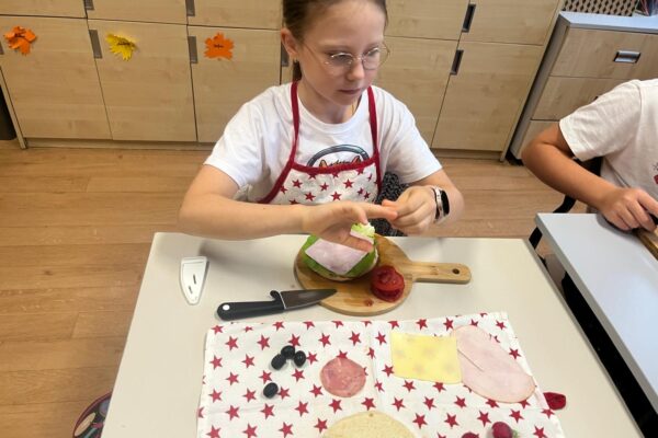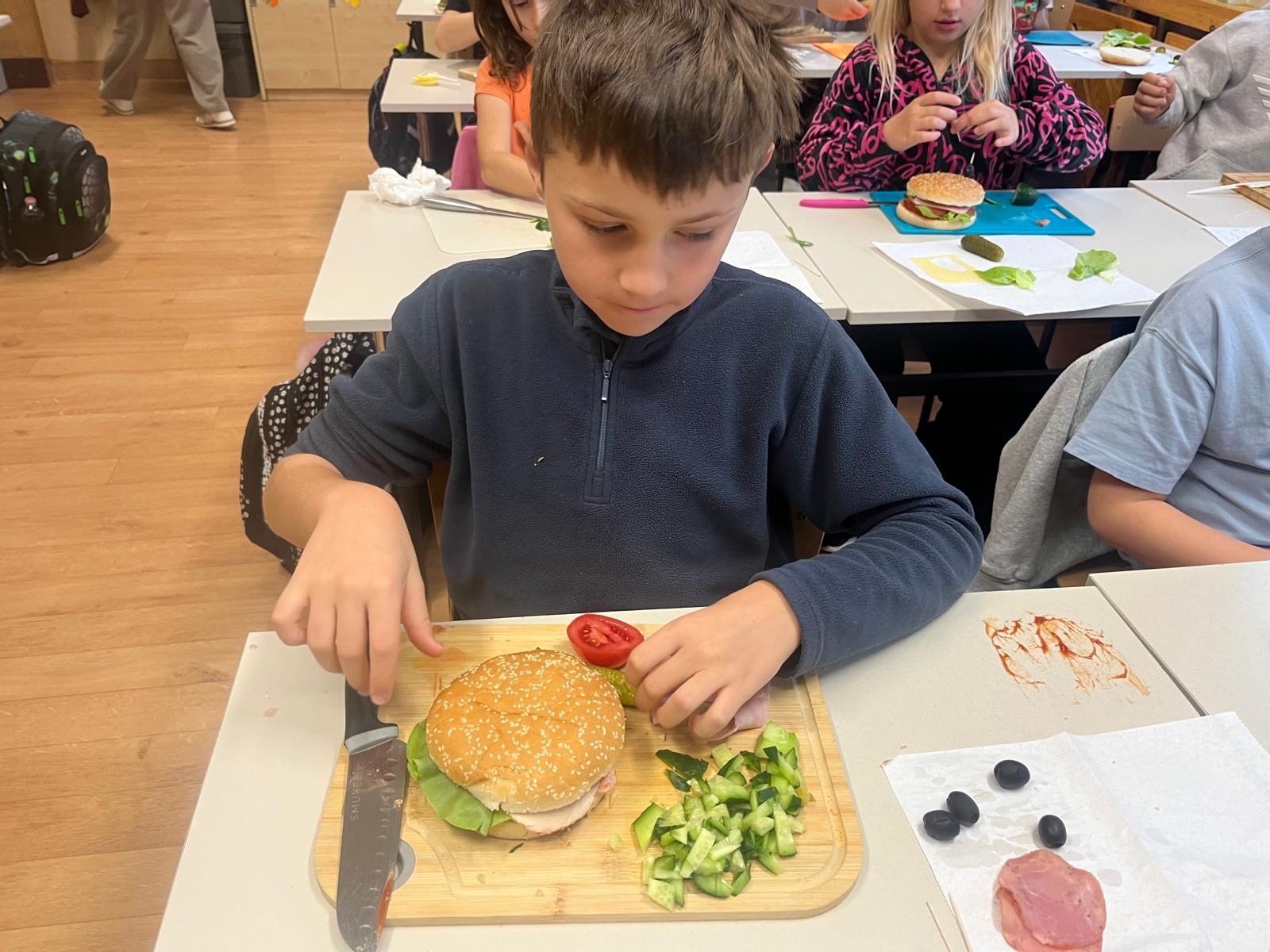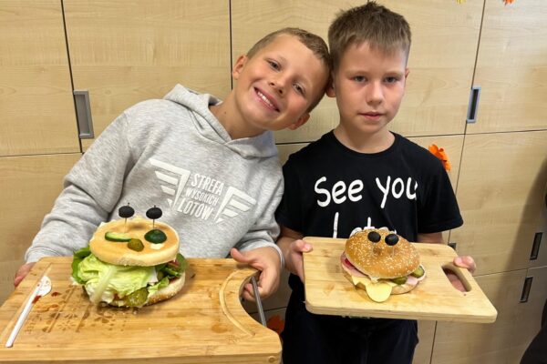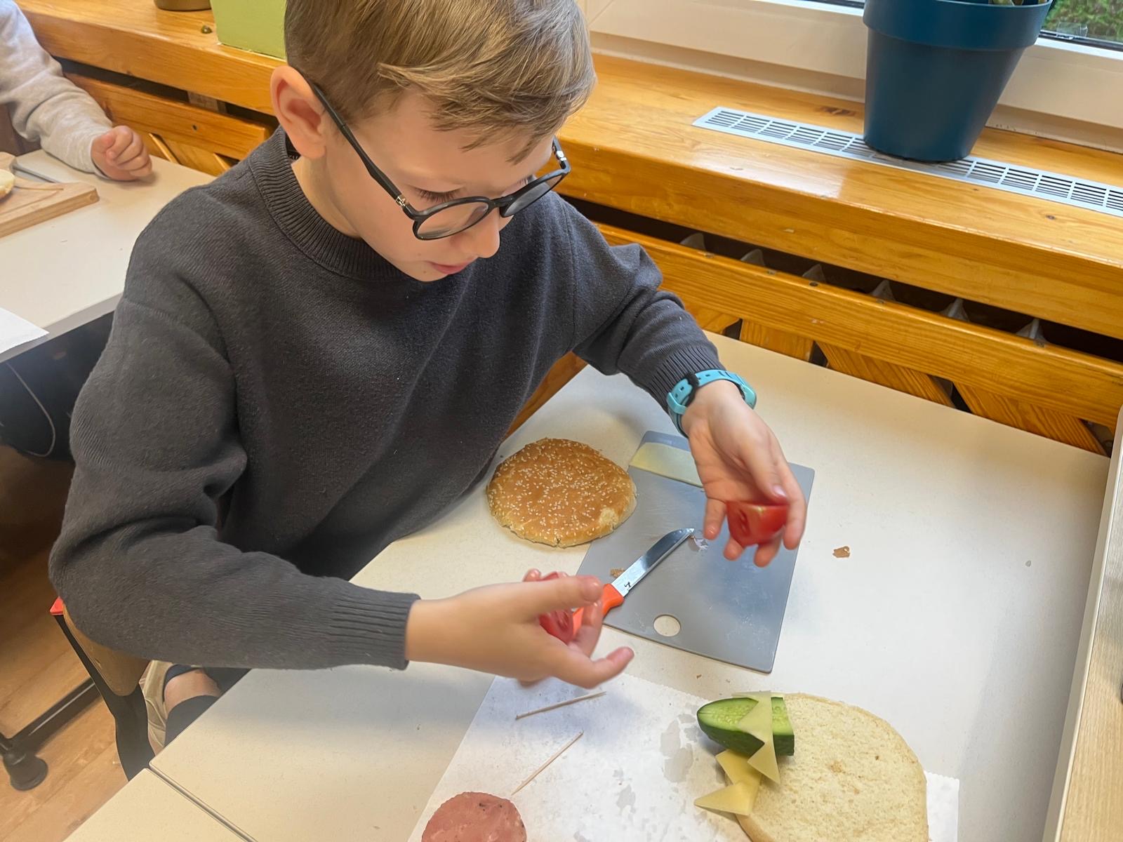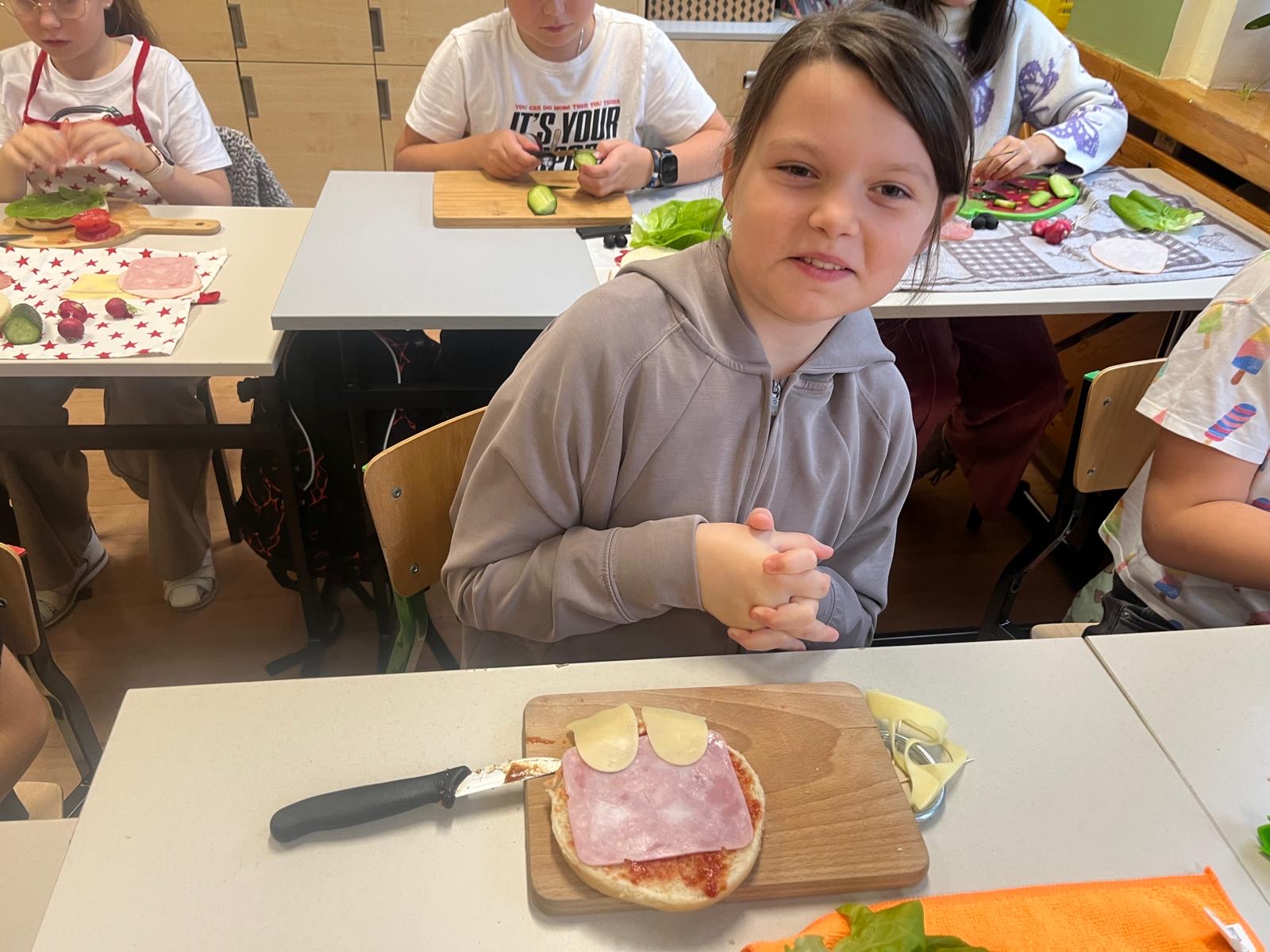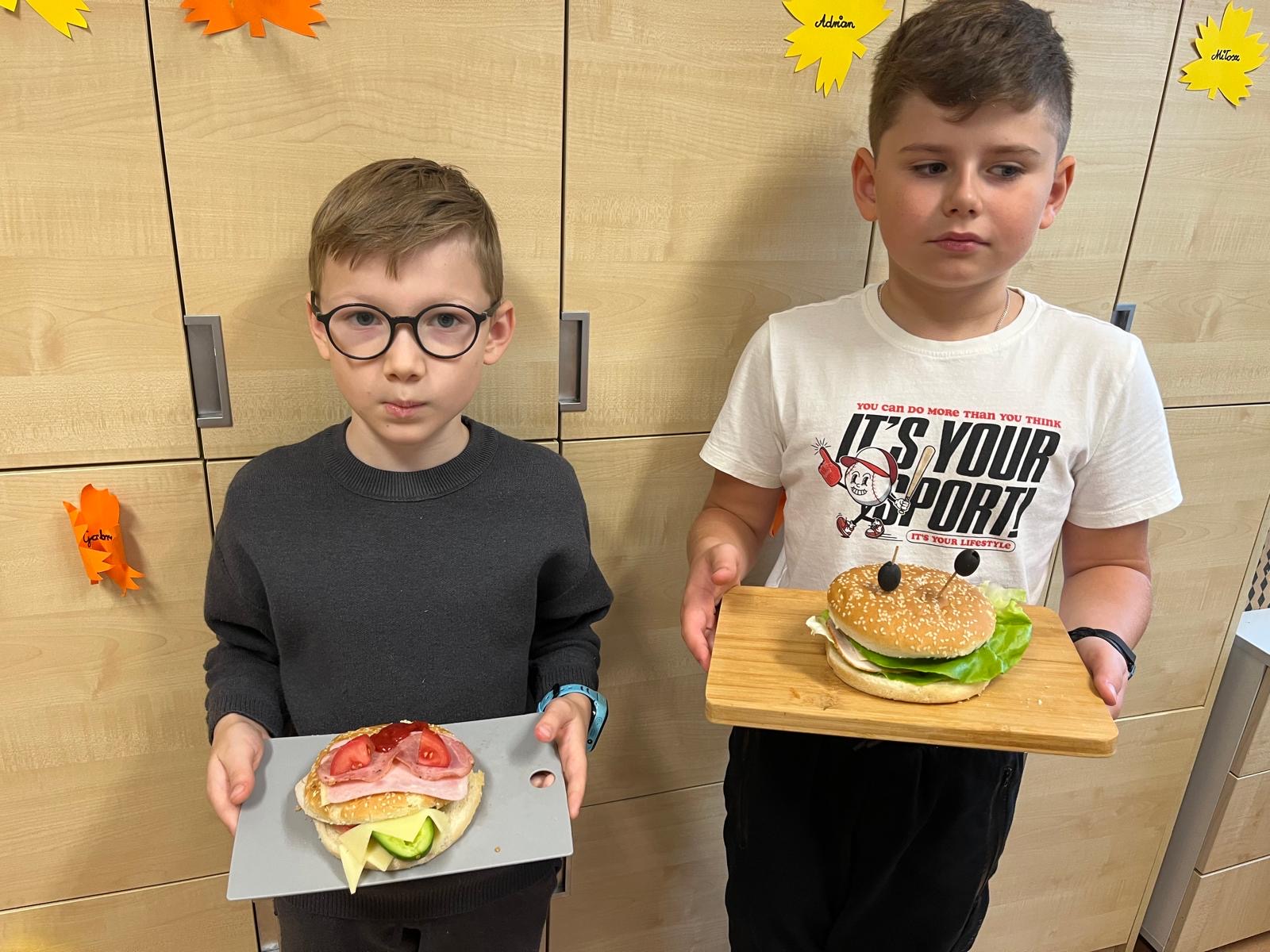 Wrześniowe śniadanie było pełne witamin: pomidorki , ogóreczki, rzodkieweczki, oliwki , soczysta sałata i żółty serek . Wielkie kanapkowe stworki ledwo mieściły się w buziach…ale zmieściły się w brzuszkach.