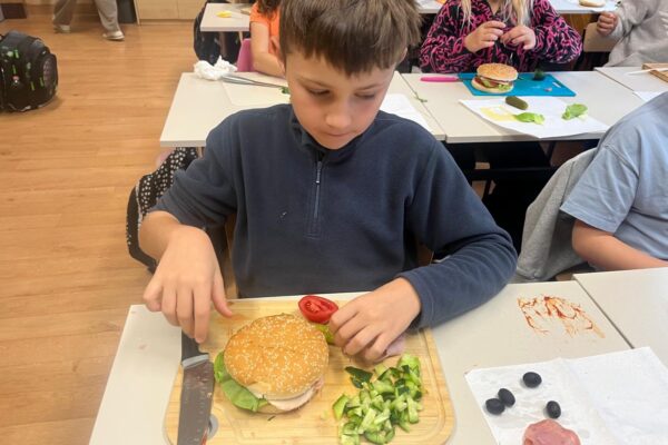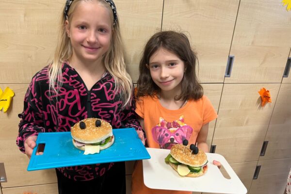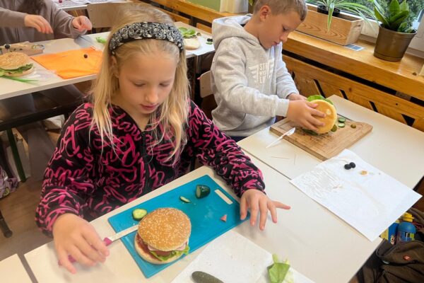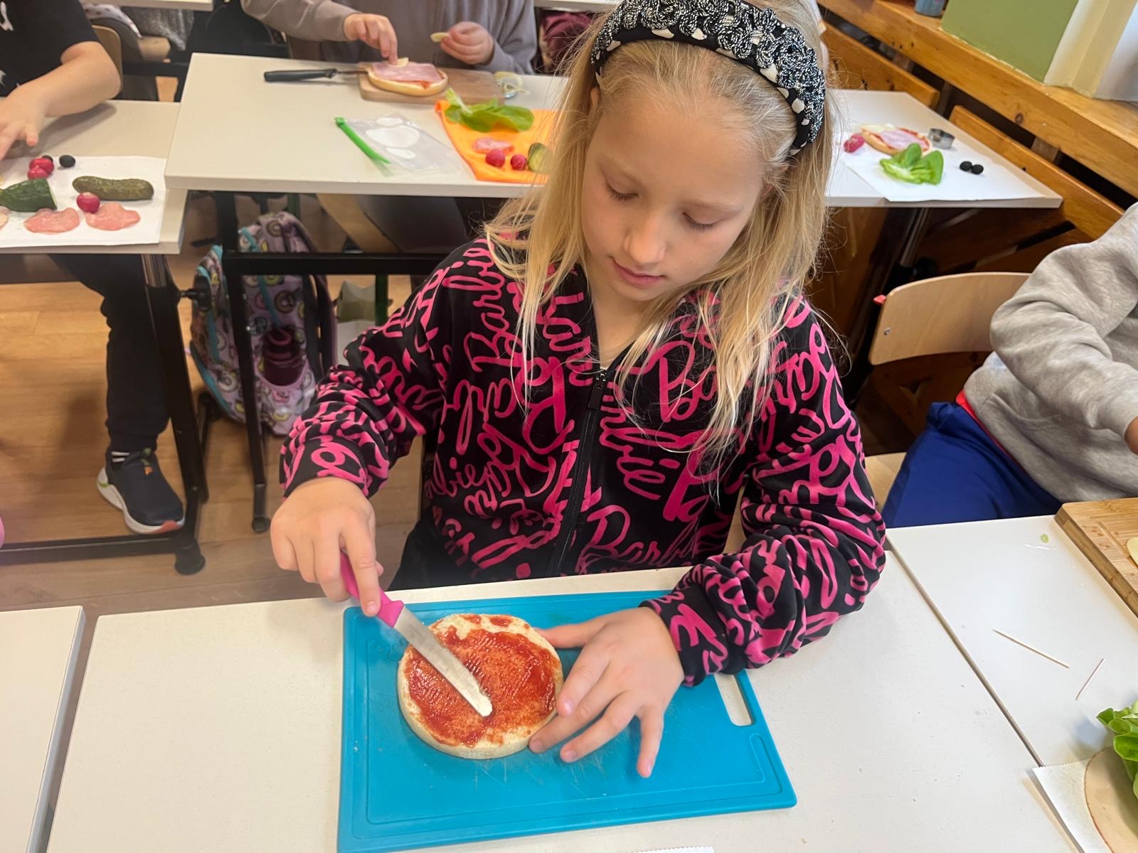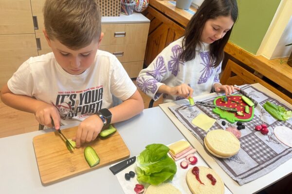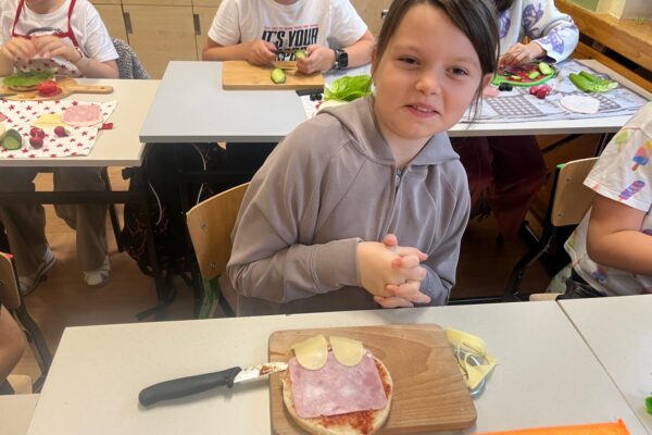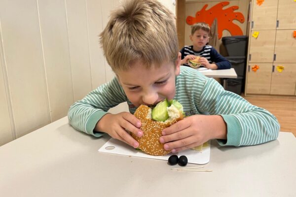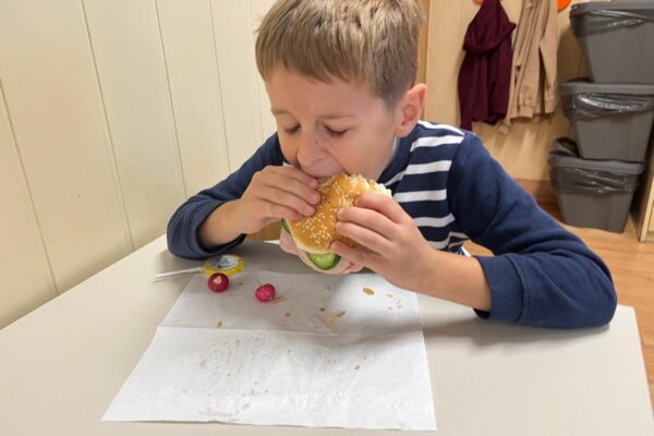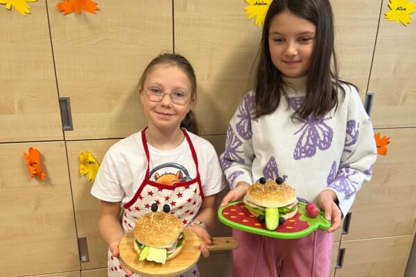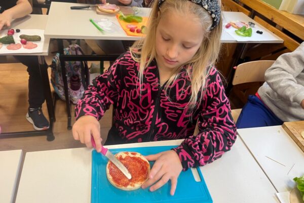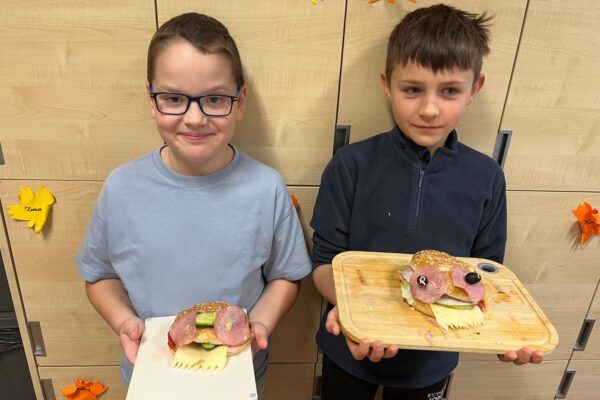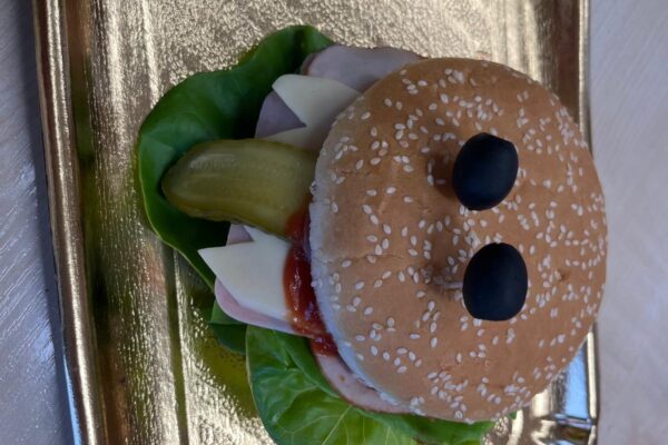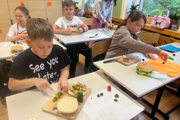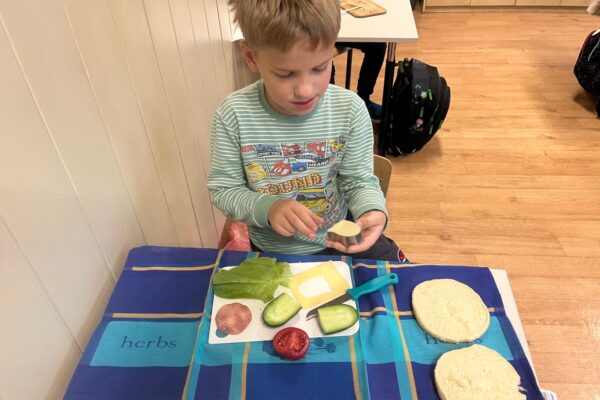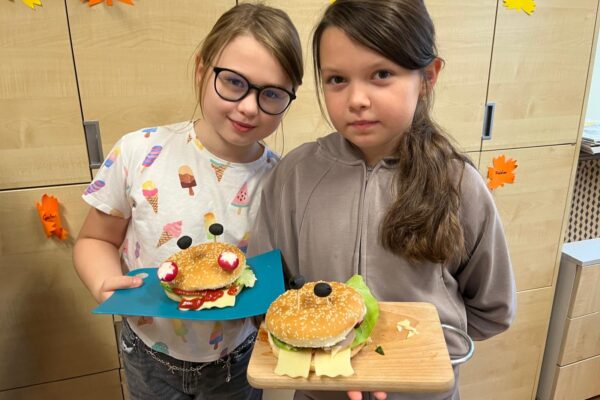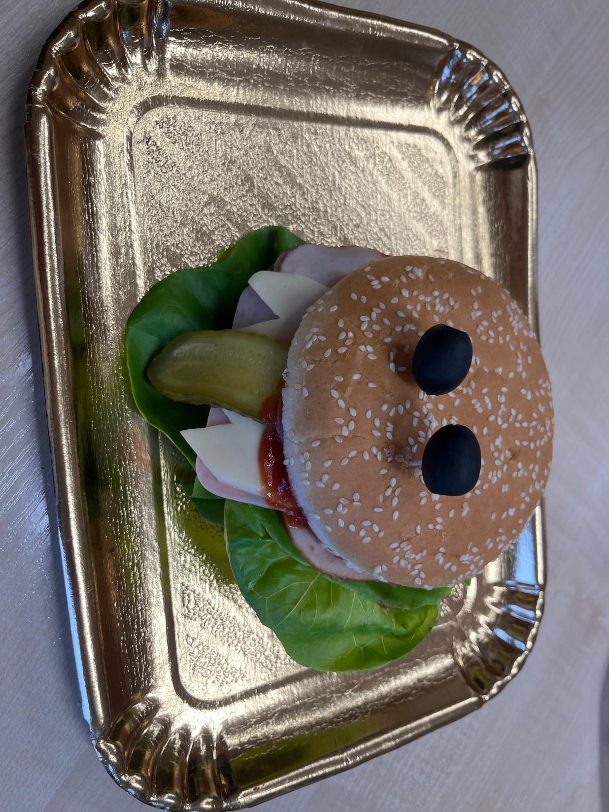 Wrześniowe śniadanie było pełne witamin: pomidorki , ogóreczki, rzodkieweczki, oliwki , soczysta sałata i żółty serek . Wielkie kanapkowe stworki ledwo mieściły się w buziach…ale zmieściły się w brzuszkach.
