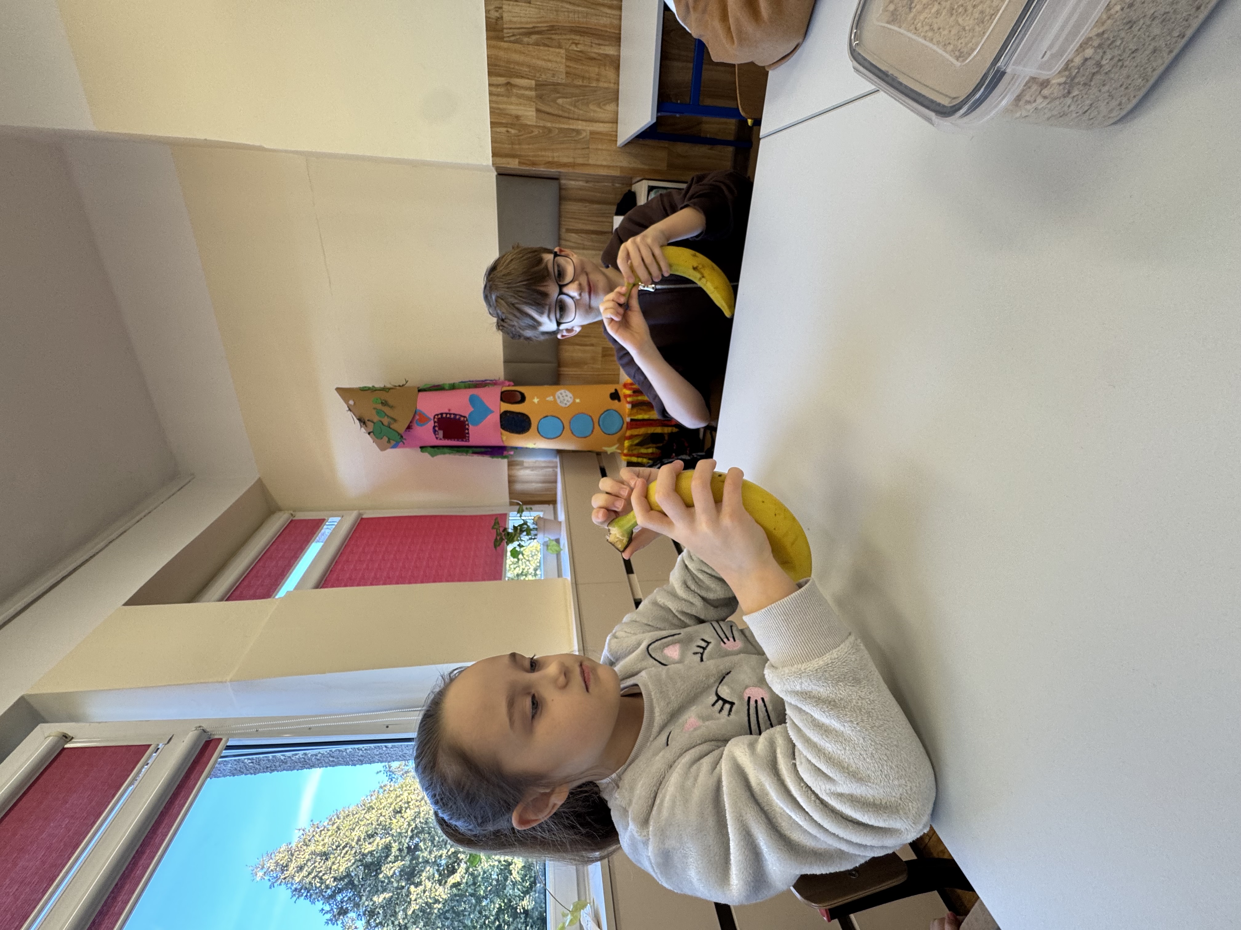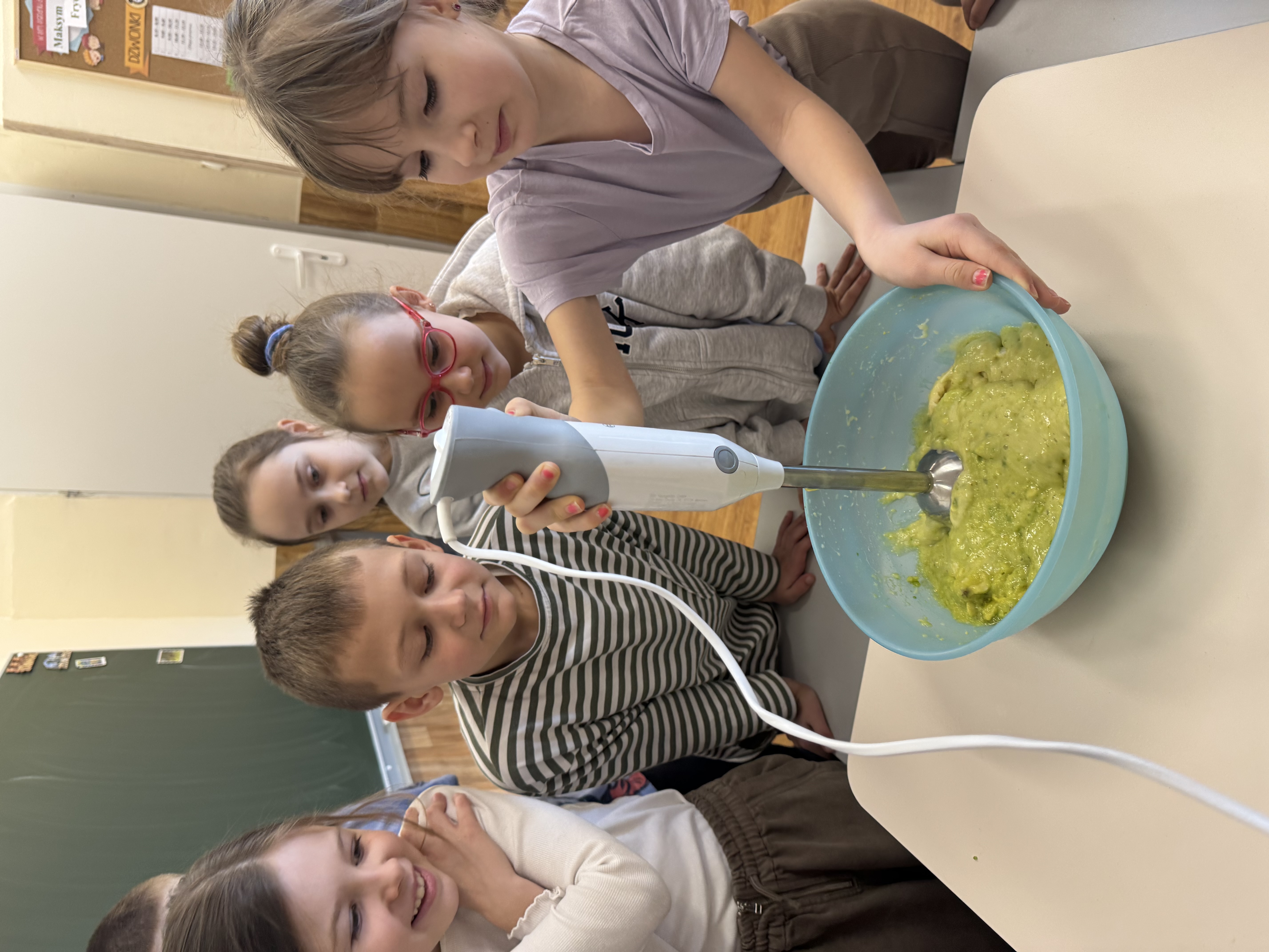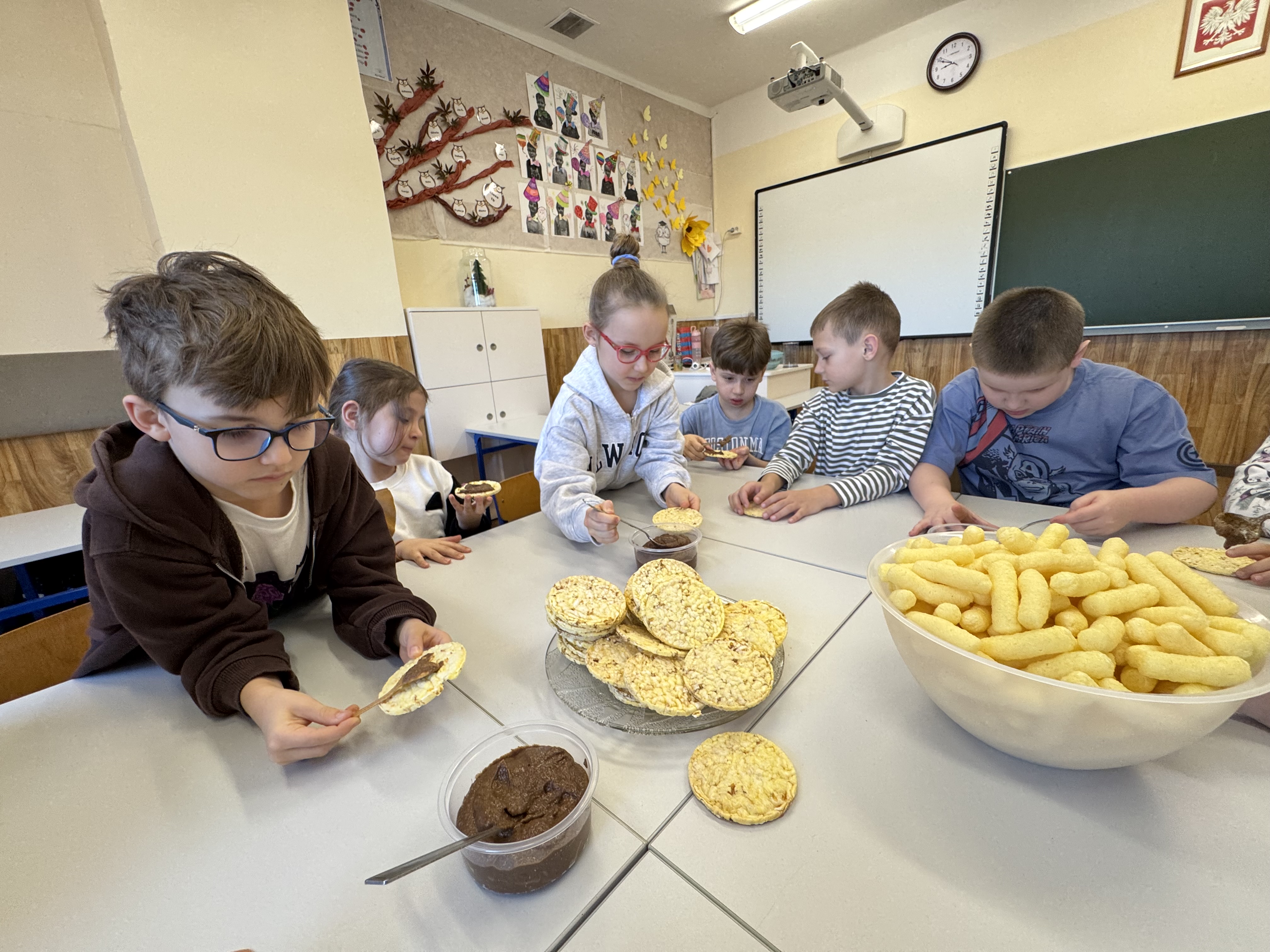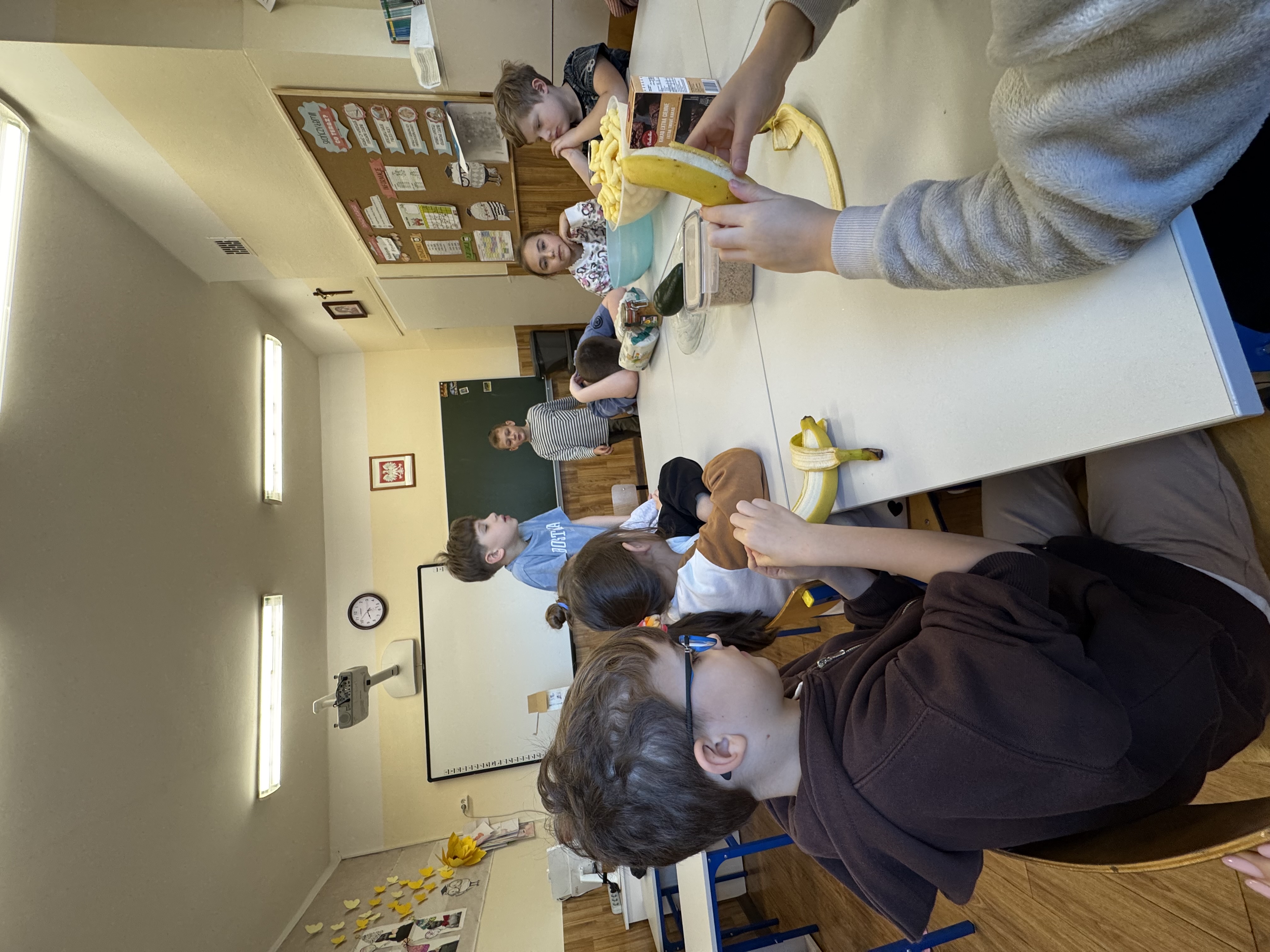 Uczniowie klasy 1b kontynuują swoją comiesięczną tradycję przygotowywania zdrowych śniadań.