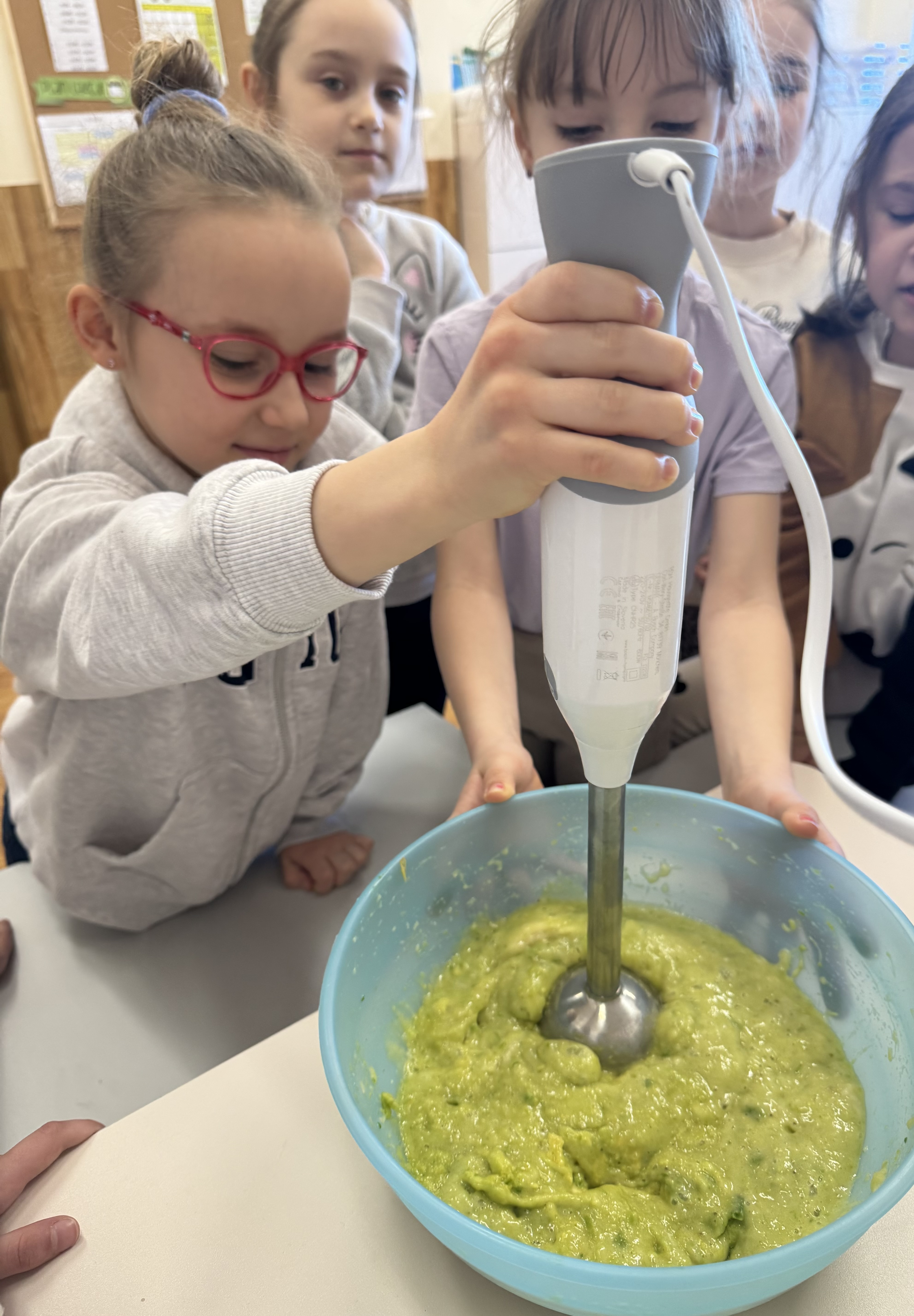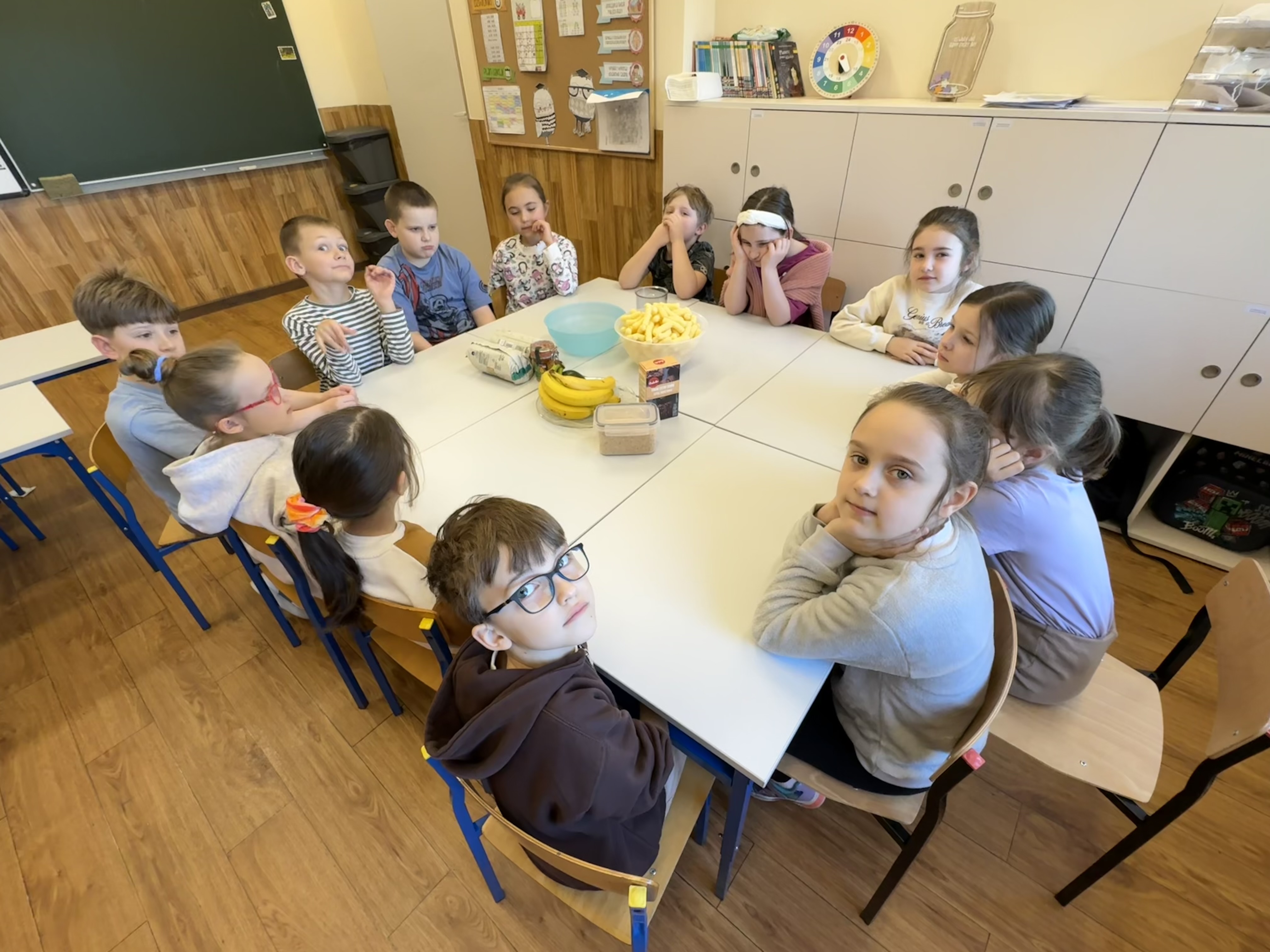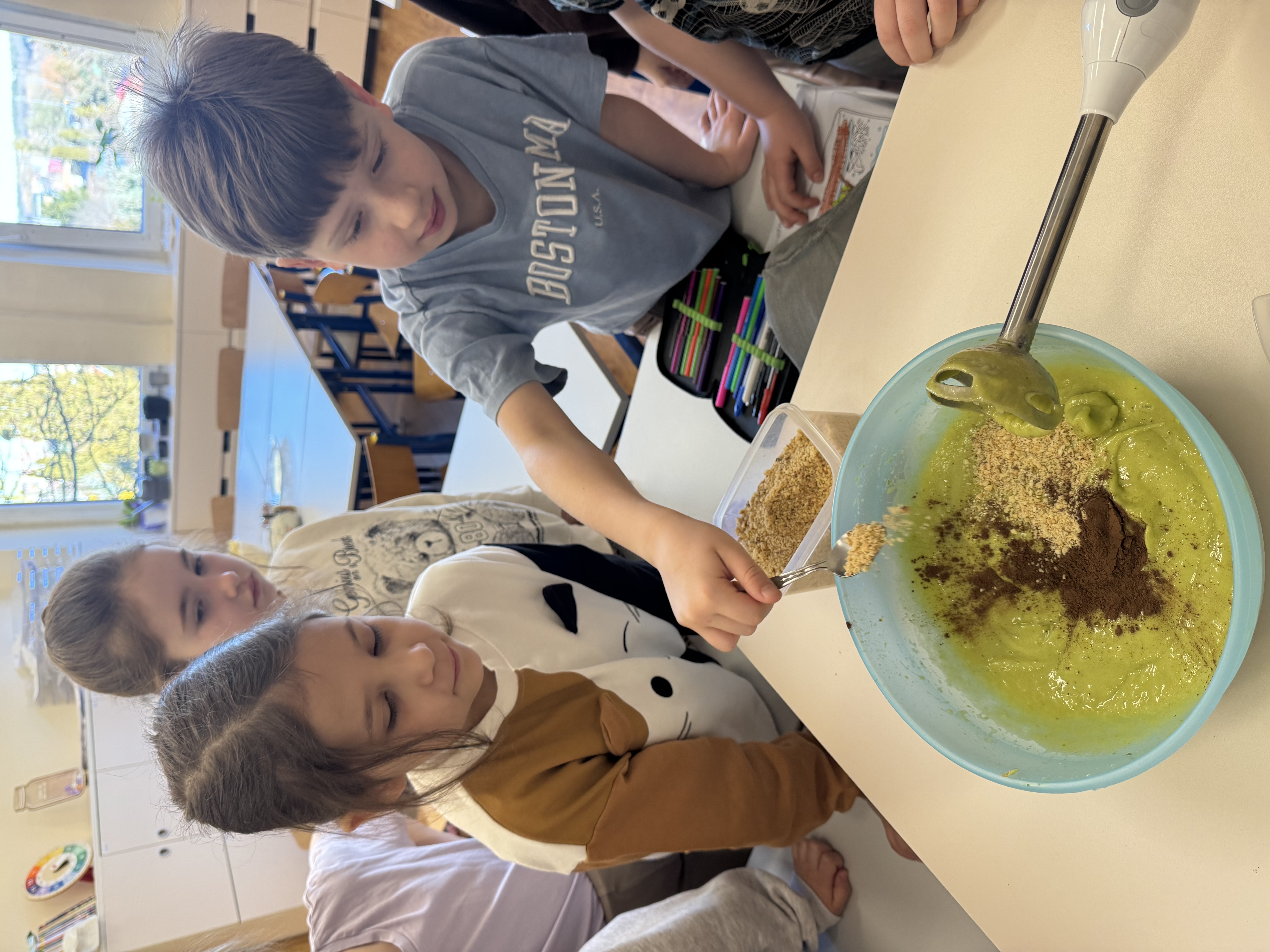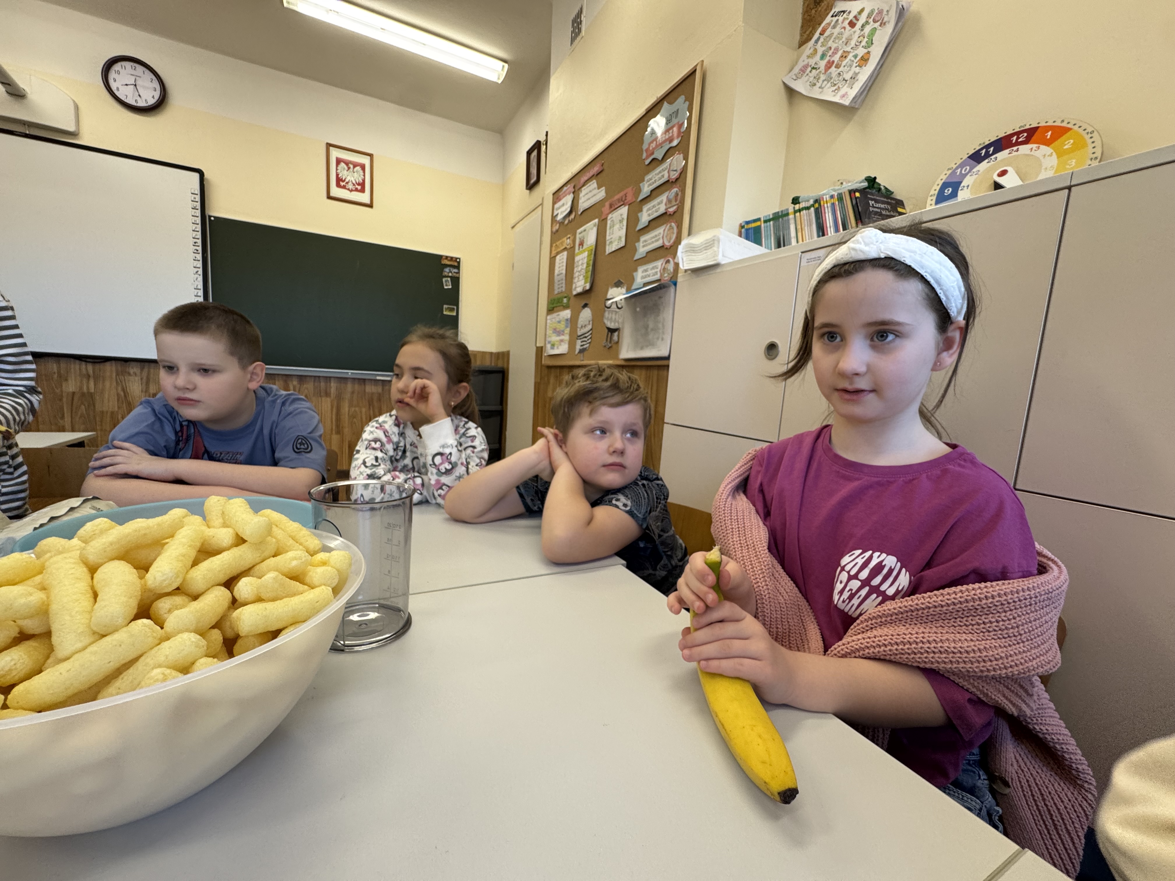 Uczniowie klasy 1b kontynuują swoją comiesięczną tradycję przygotowywania zdrowych śniadań.