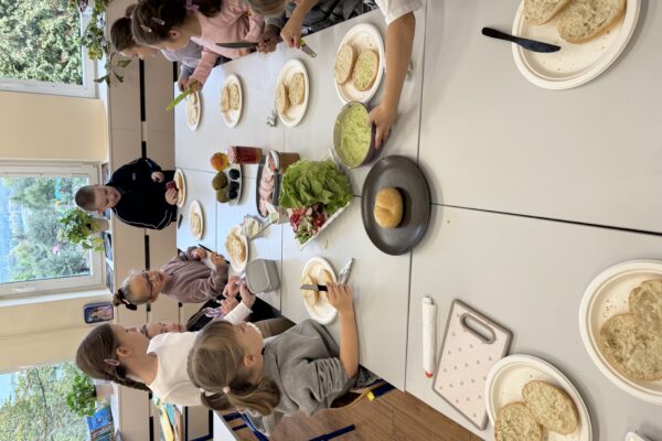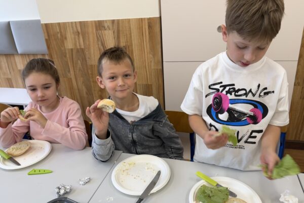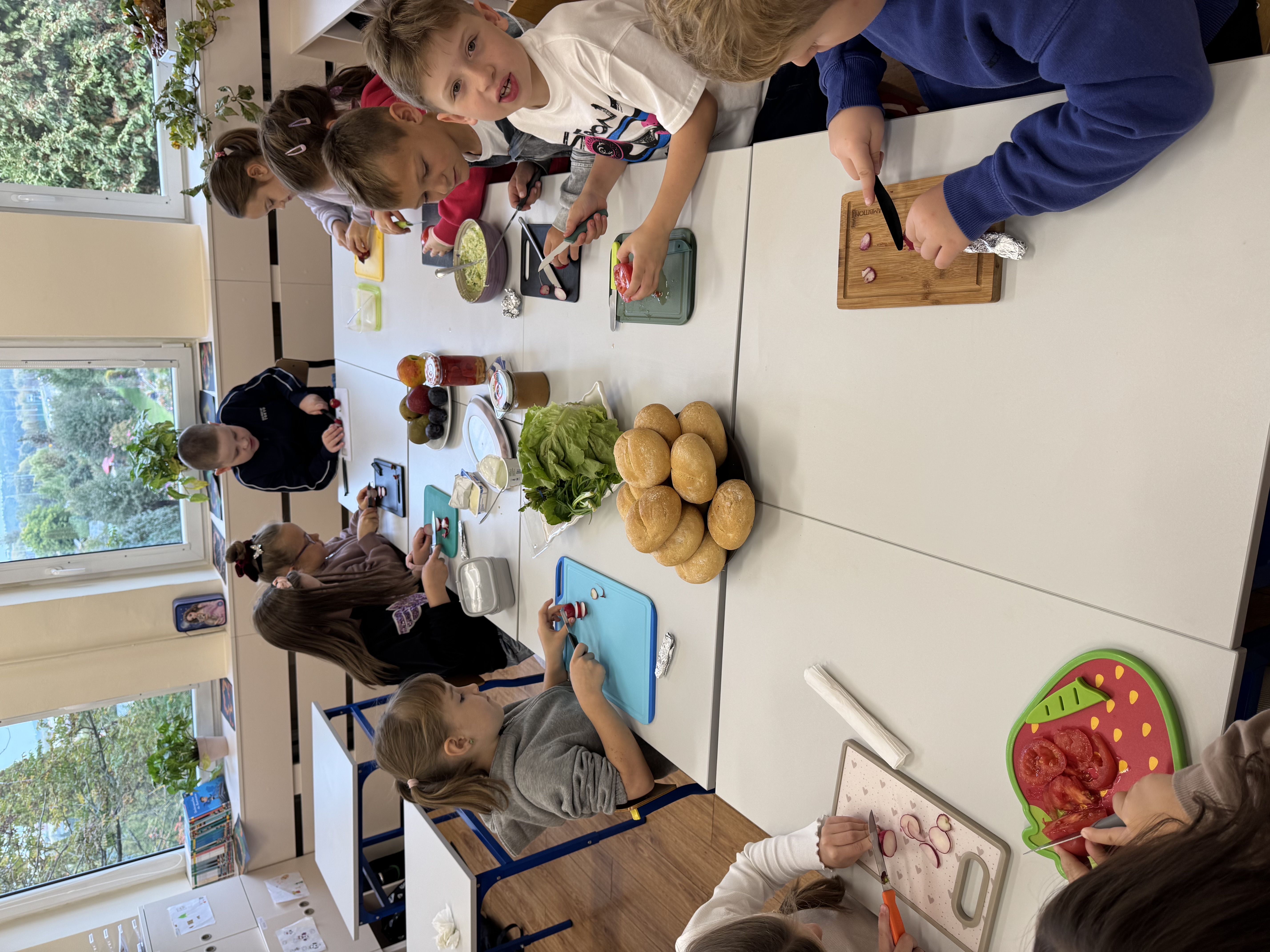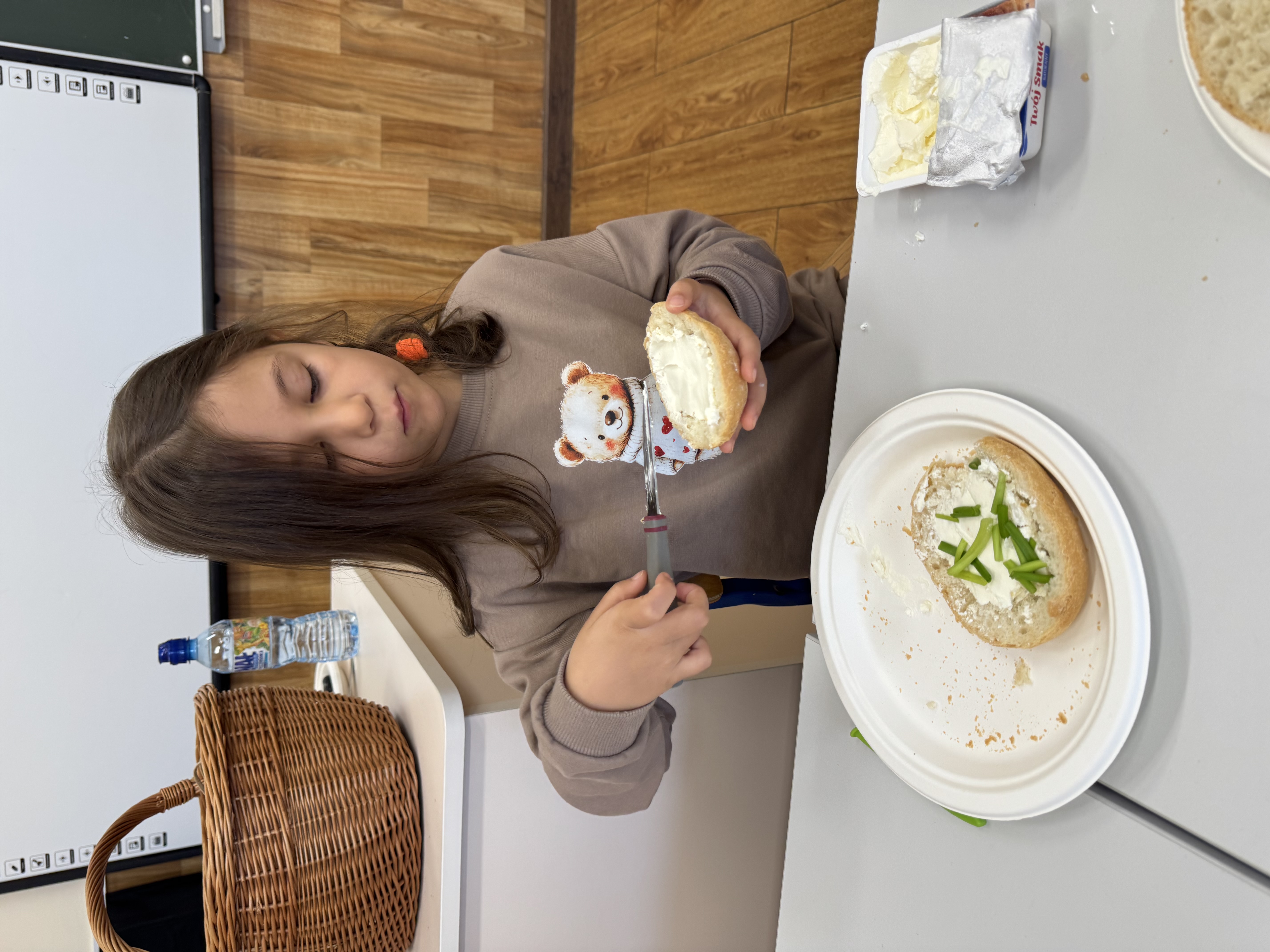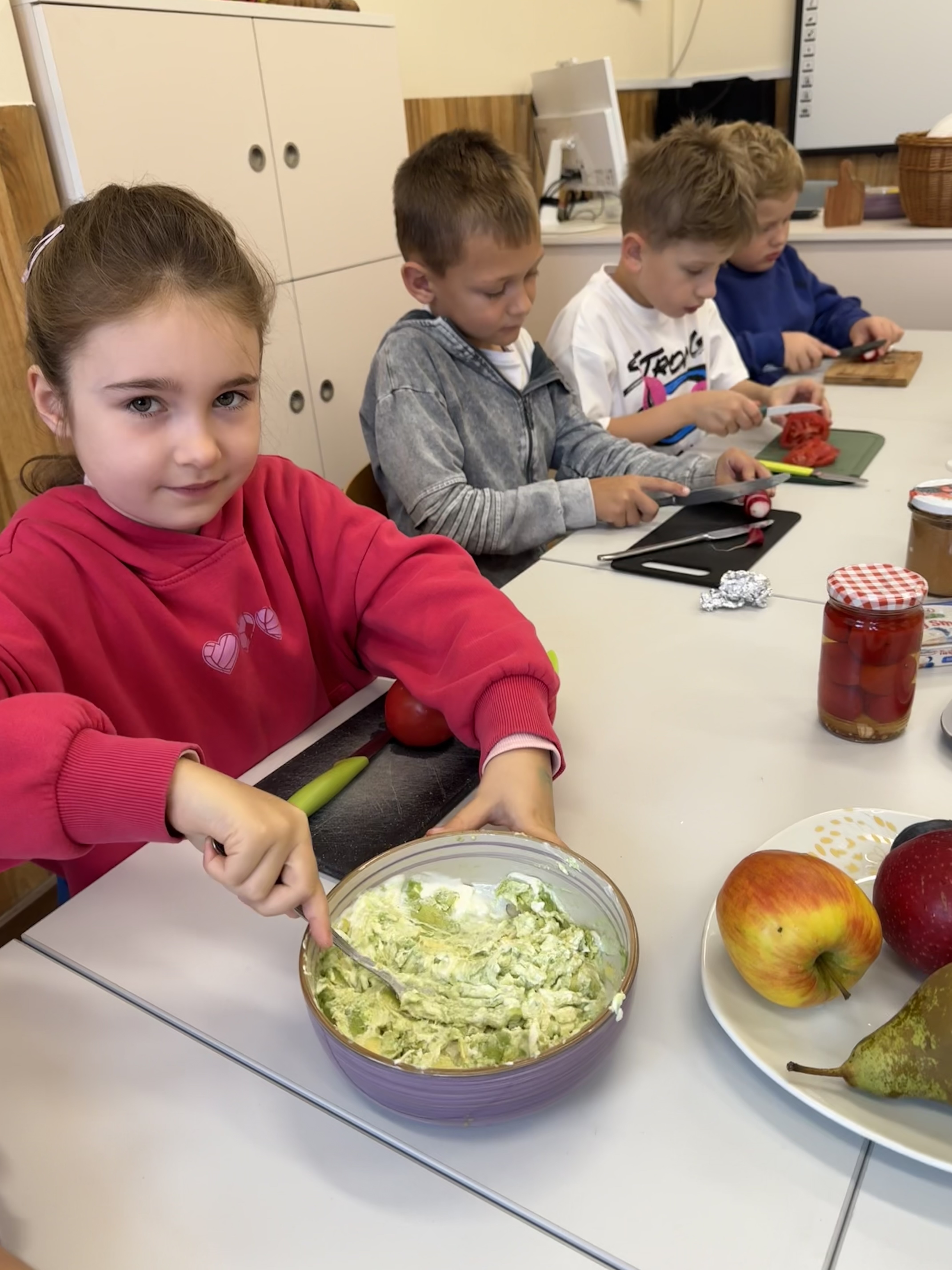 Uczniowie klasy 1b rozpoczęli swoją przygodę ze zdrowymi, wspólnymi śniadaniami. W każdy pierwszy wtorek miesiąca, pierwszoklasiści będą samodzielnie przygotowywać pożywne smakołyki. Ważnym elementem naszych śniadań jest możliwość zjedzenia posiłku przy wspólnym stole, co sprzyja budowaniu relacji, współpracy oraz kształtowaniu zdrowych nawyków żywieniowych.