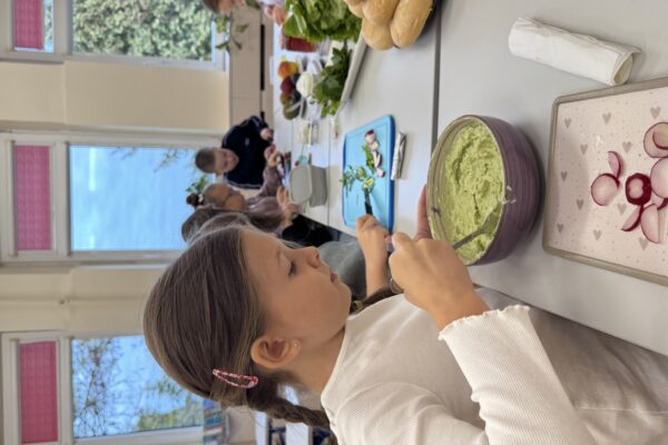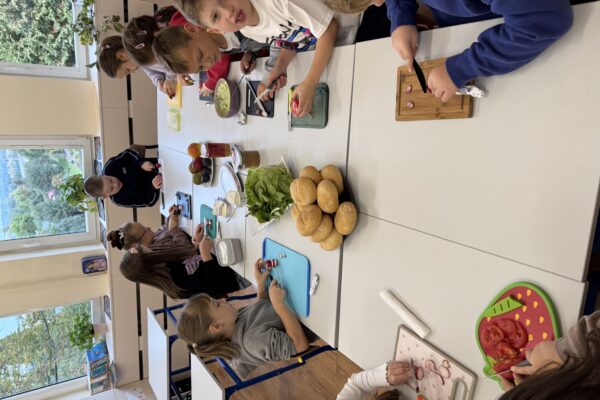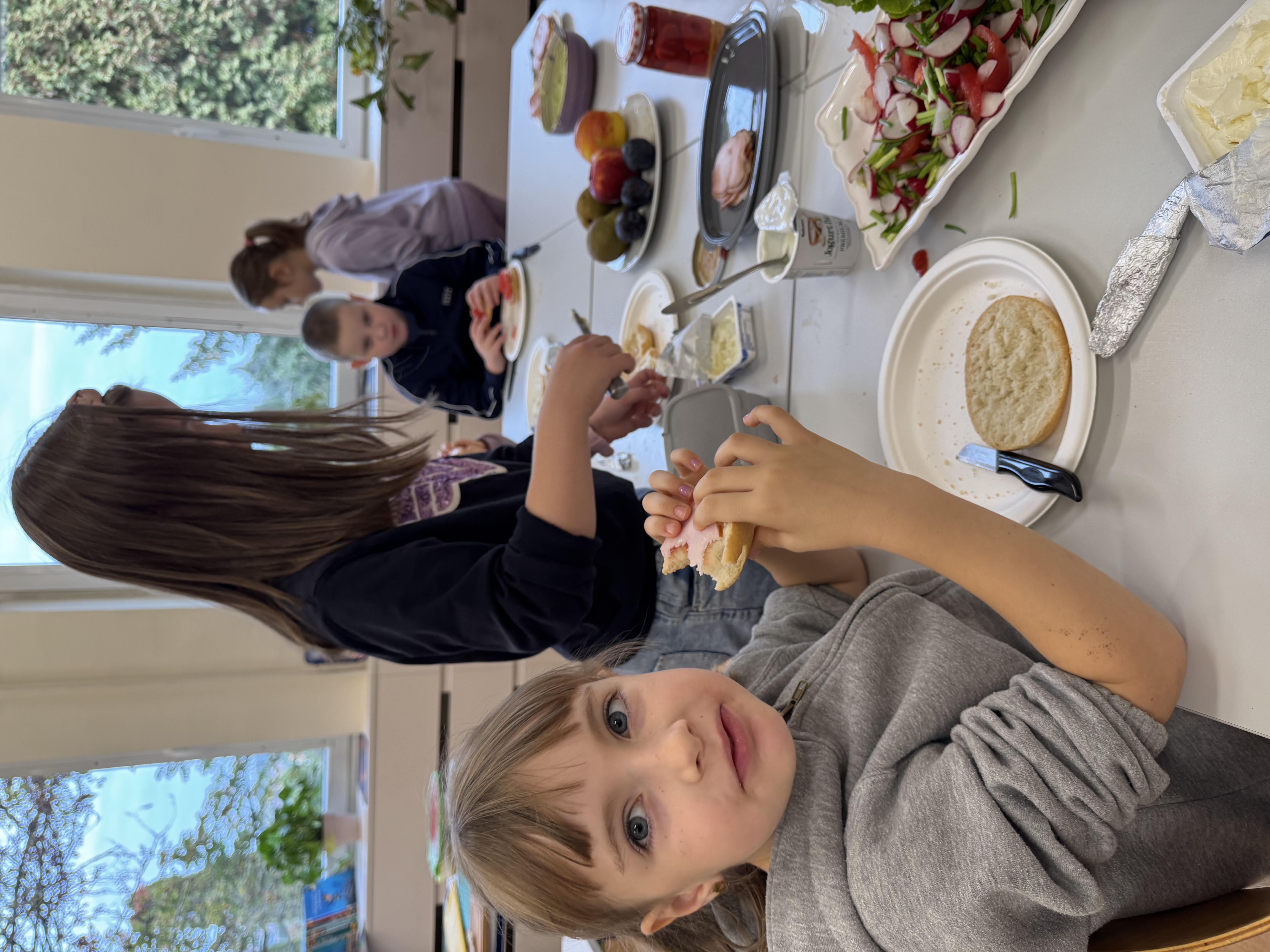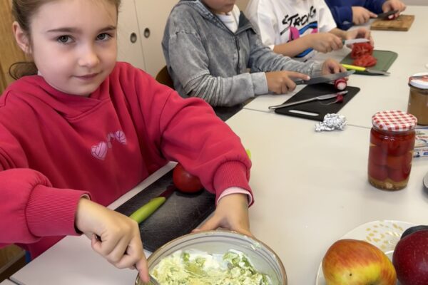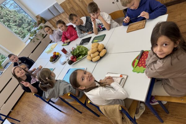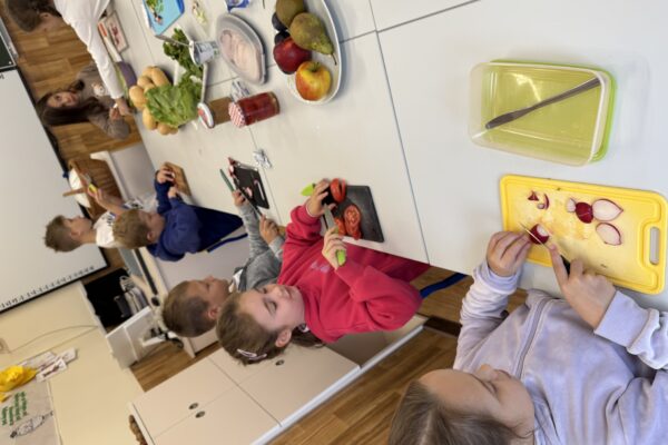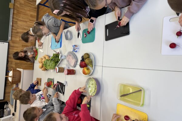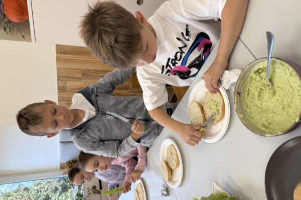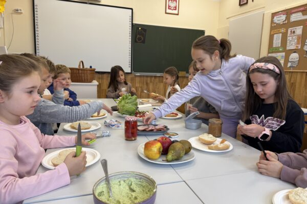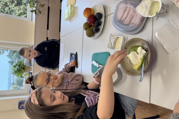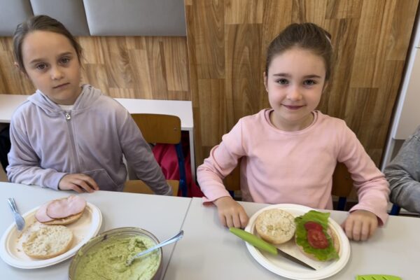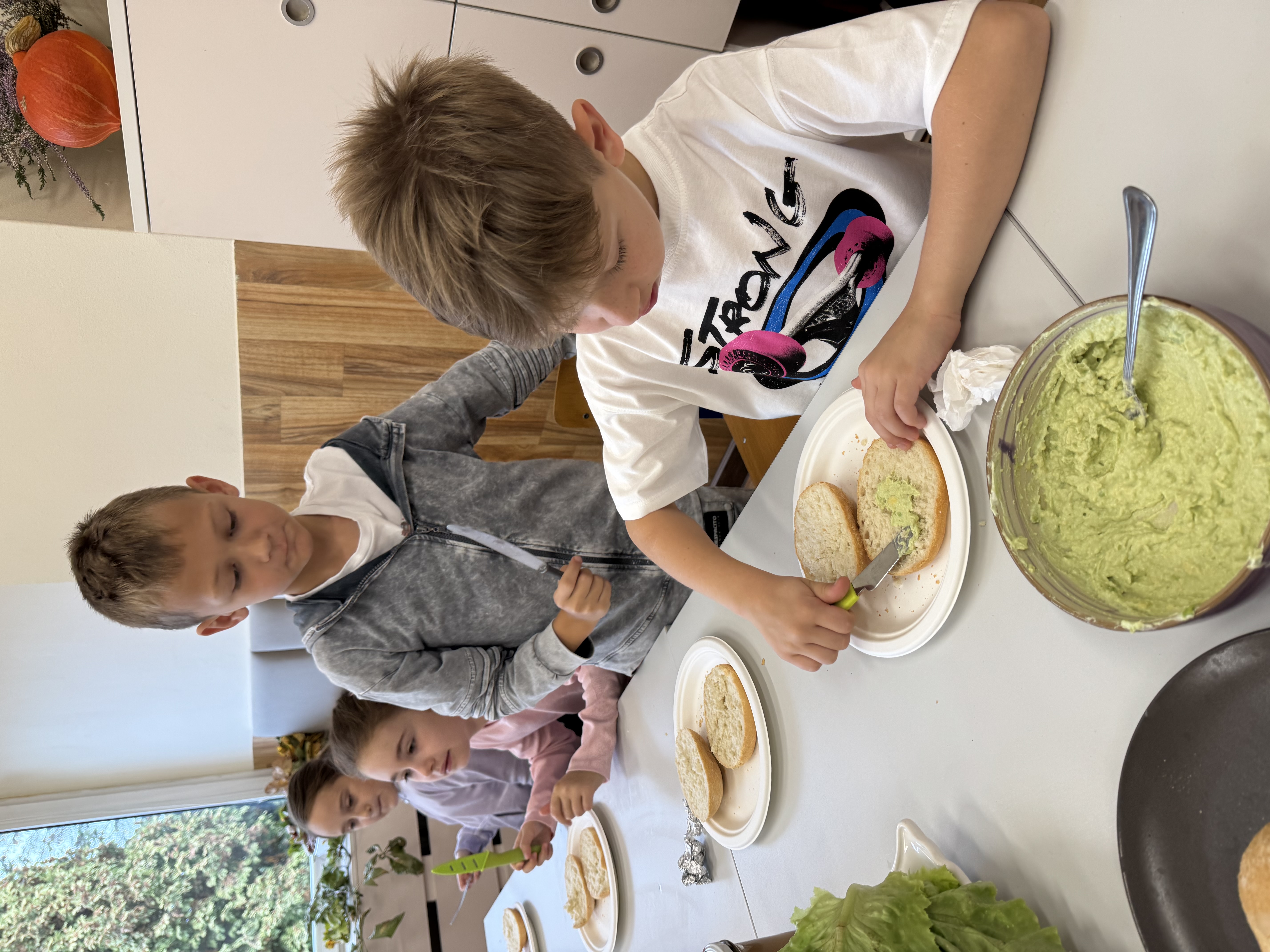 Uczniowie klasy 1b rozpoczęli swoją przygodę ze zdrowymi, wspólnymi śniadaniami. W każdy pierwszy wtorek miesiąca, pierwszoklasiści będą samodzielnie przygotowywać pożywne smakołyki. Ważnym elementem naszych śniadań jest możliwość zjedzenia posiłku przy wspólnym stole, co sprzyja budowaniu relacji, współpracy oraz kształtowaniu zdrowych nawyków żywieniowych.