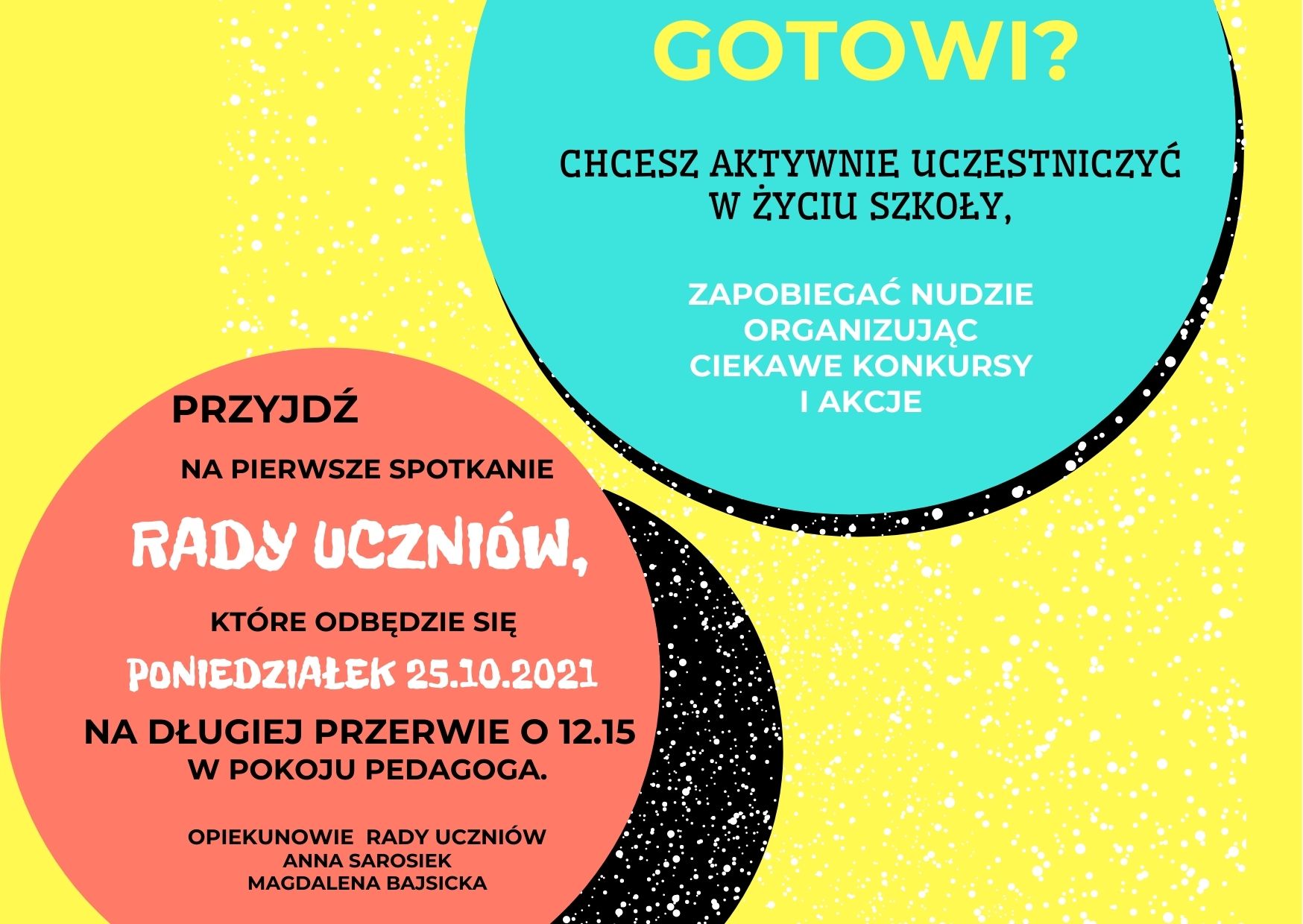 Jeżeli – chcesz aktywnie uczestniczyć w życiu szkoły, – zapobiegać nudzie organizując ciekawe konkursy i akcje przyjdź na pierwsze spotkanie Rady Uczniów, które odbędzie się poniedziałek 25.10.2021 na długiej pr