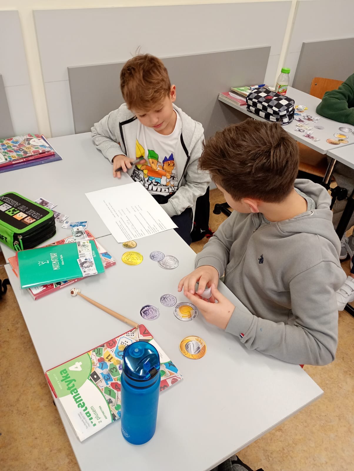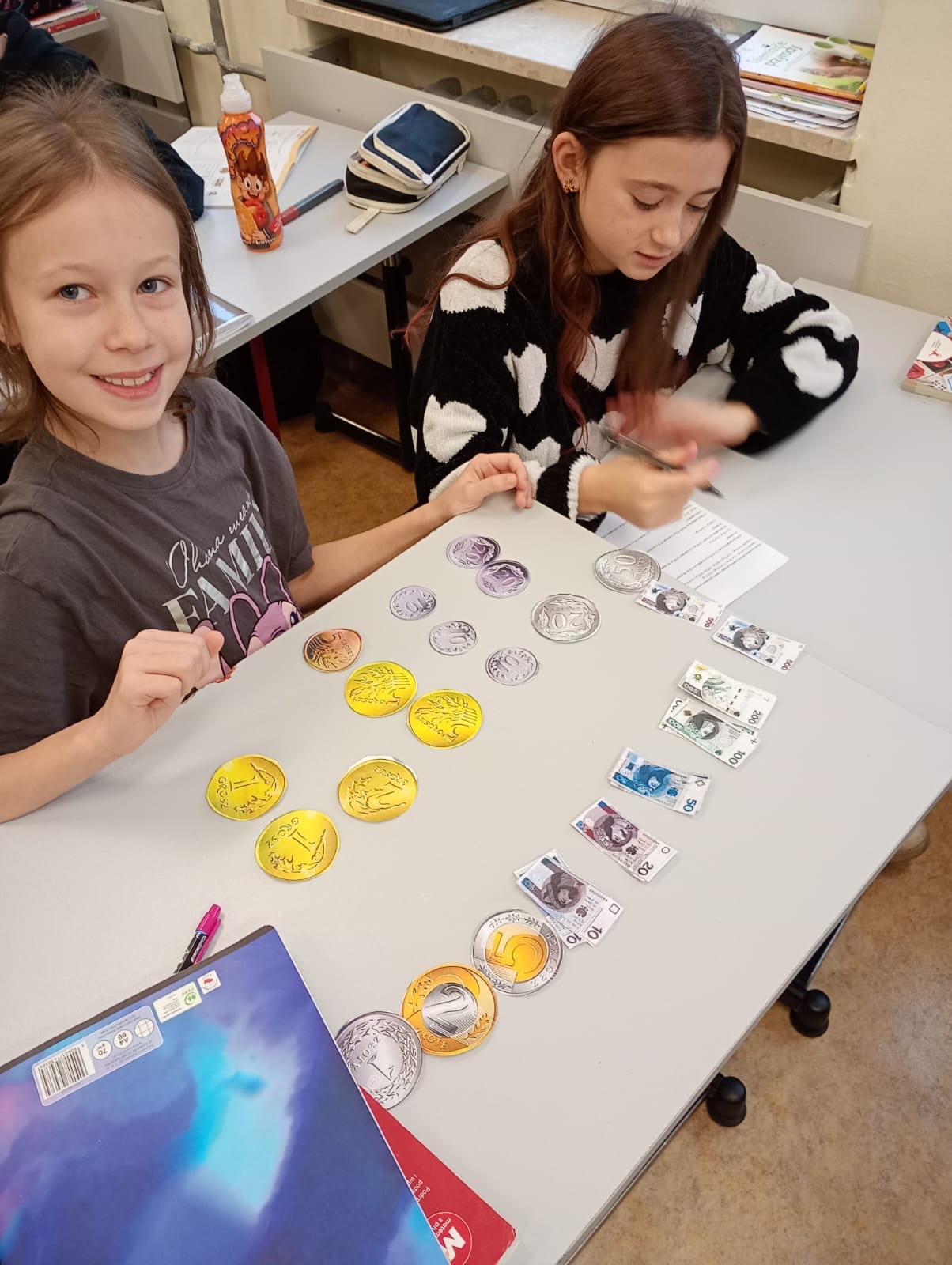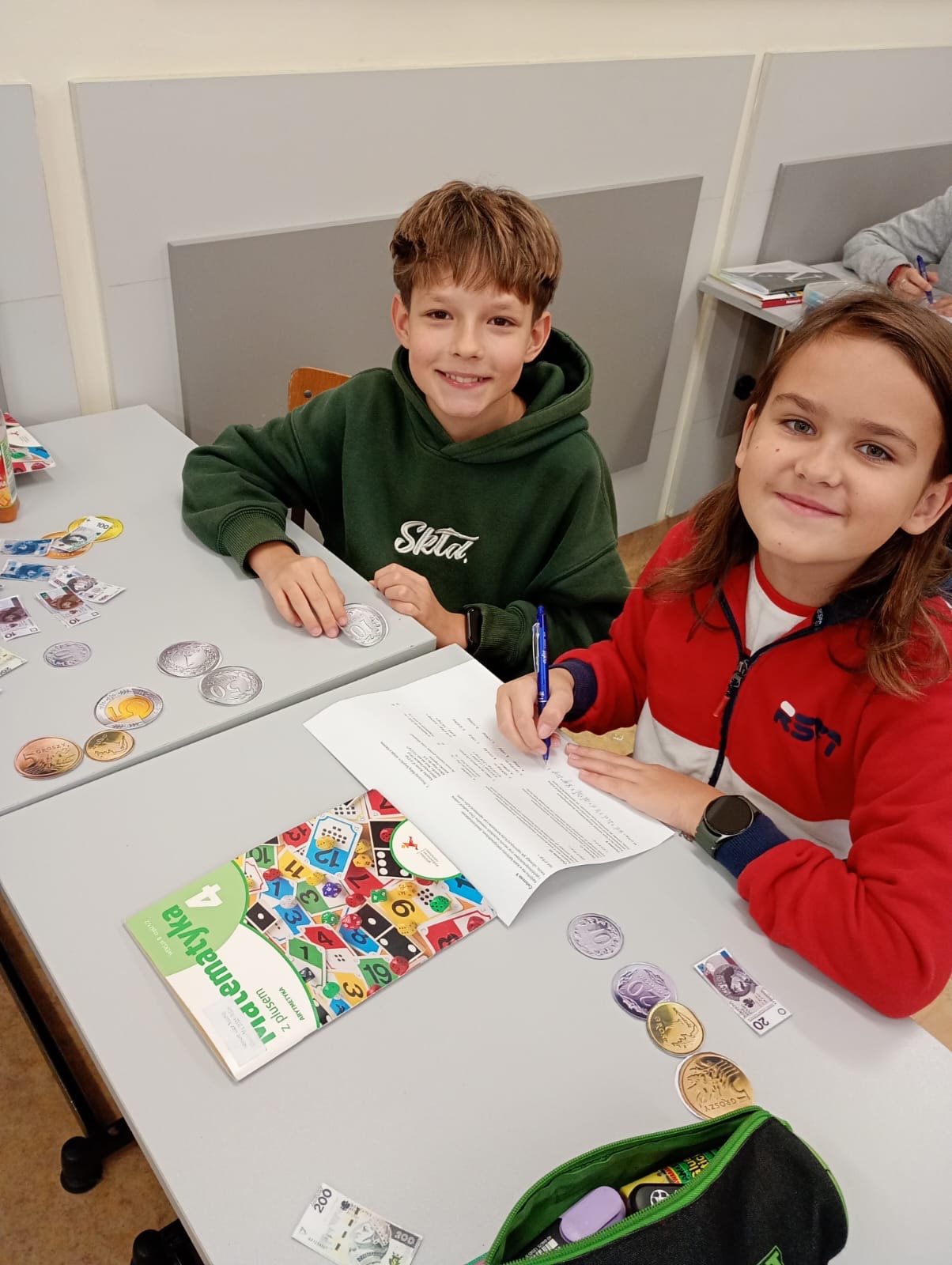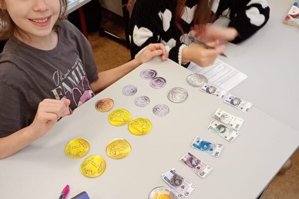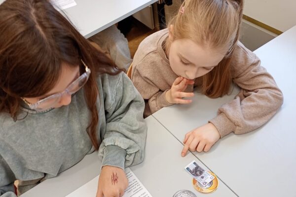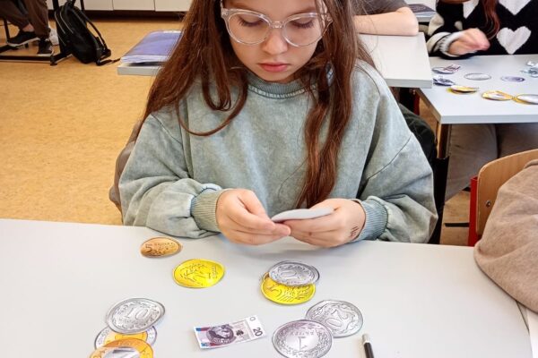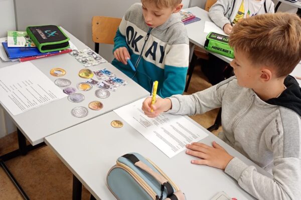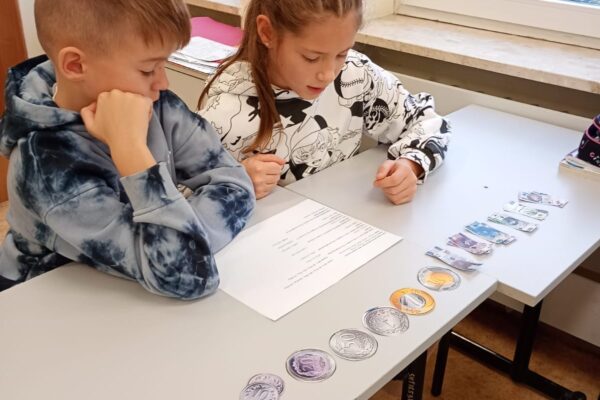 Dzisiaj klasa 4a rozpoczęła cykl lekcji dotyczący jednostek. Pierwszy temat to jednostki monetarne: złote i grosze. Uczniowie oglądając prezentację przypomnieli sobie jak wyglądały pierwsze monety i banknoty w Polsce. Następnie pracując w parach rozwiązywali zadania dotyczące zakupów i zamiany jednostek.