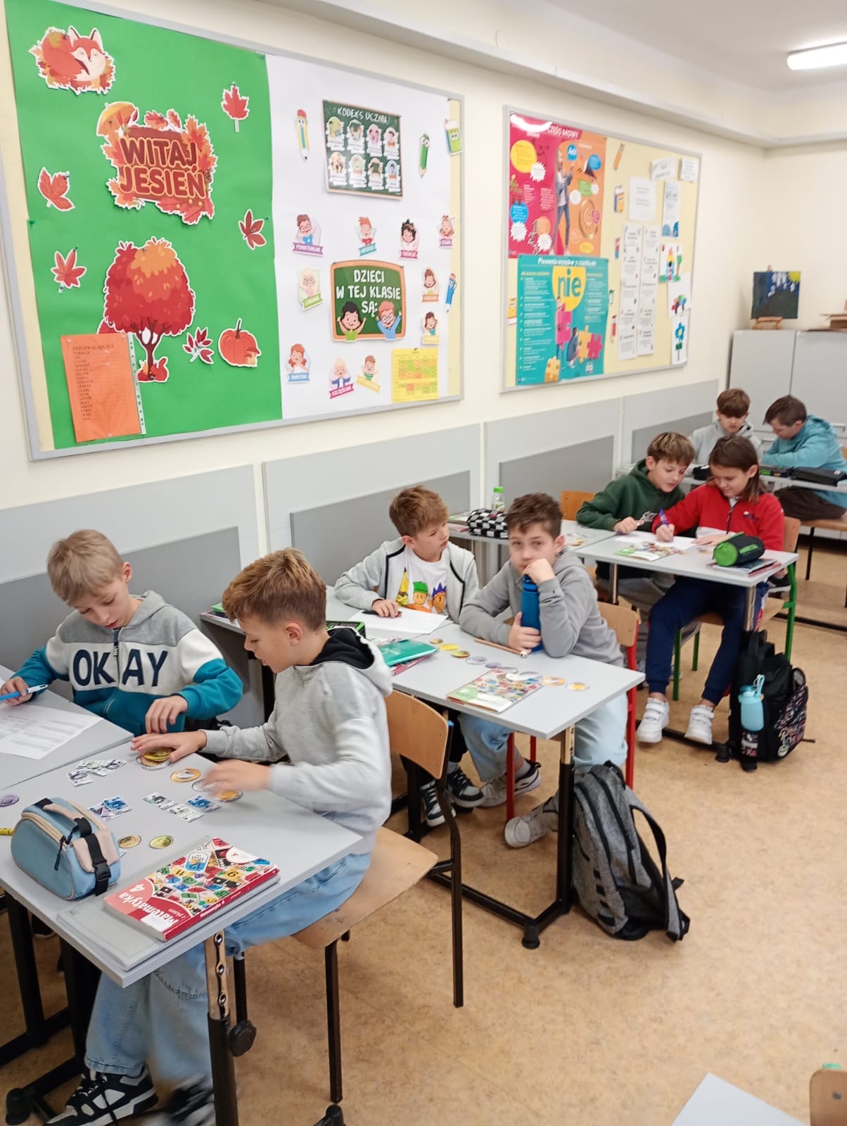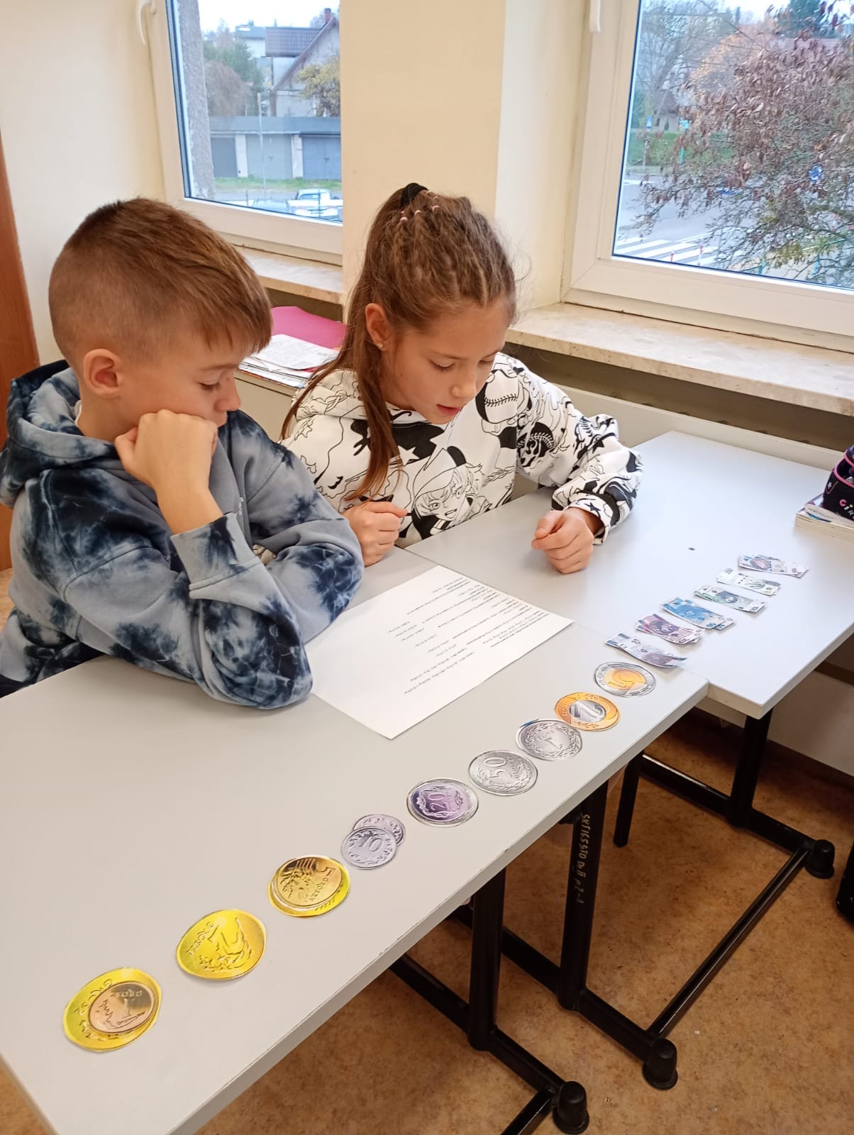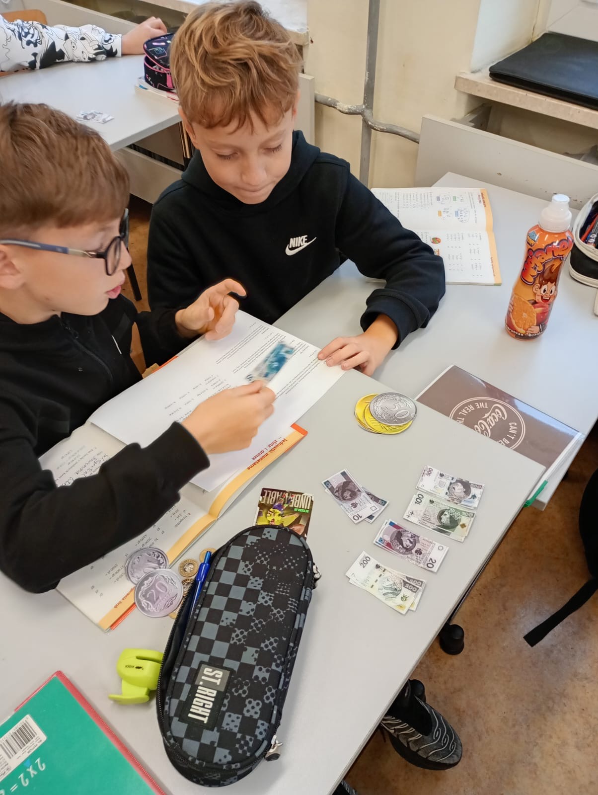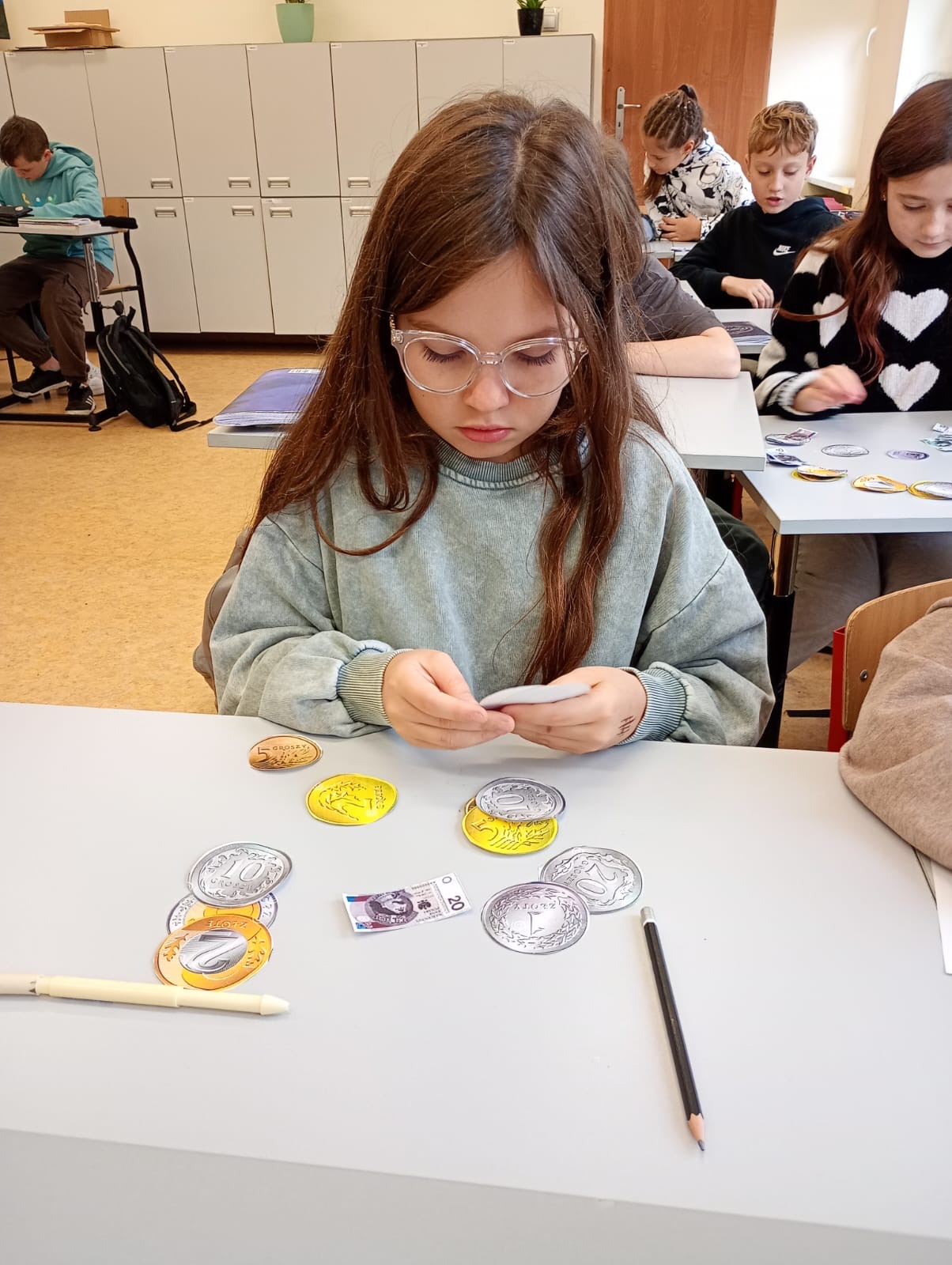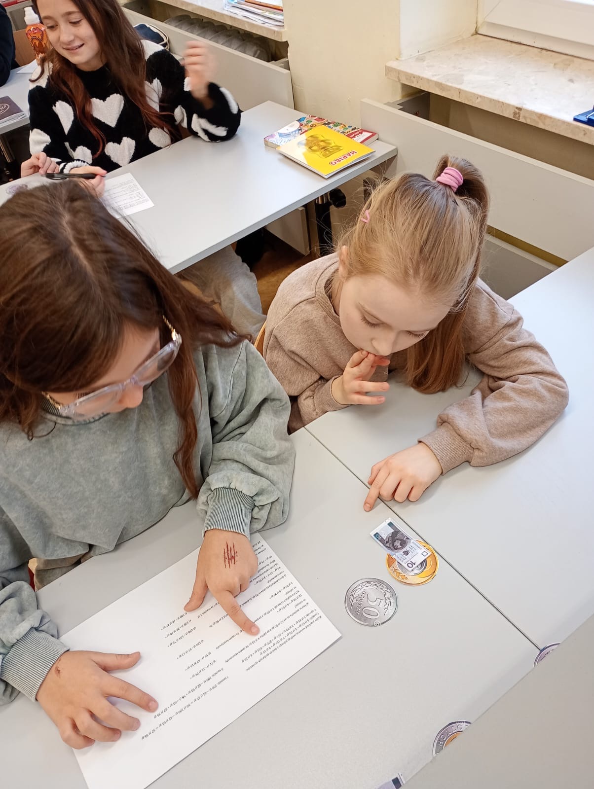 Dzisiaj klasa 4a rozpoczęła cykl lekcji dotyczący jednostek. Pierwszy temat to jednostki monetarne: złote i grosze. Uczniowie oglądając prezentację przypomnieli sobie jak wyglądały pierwsze monety i banknoty w Polsce. Następnie pracując w parach rozwiązywali zadania dotyczące zakupów i zamiany jednostek.