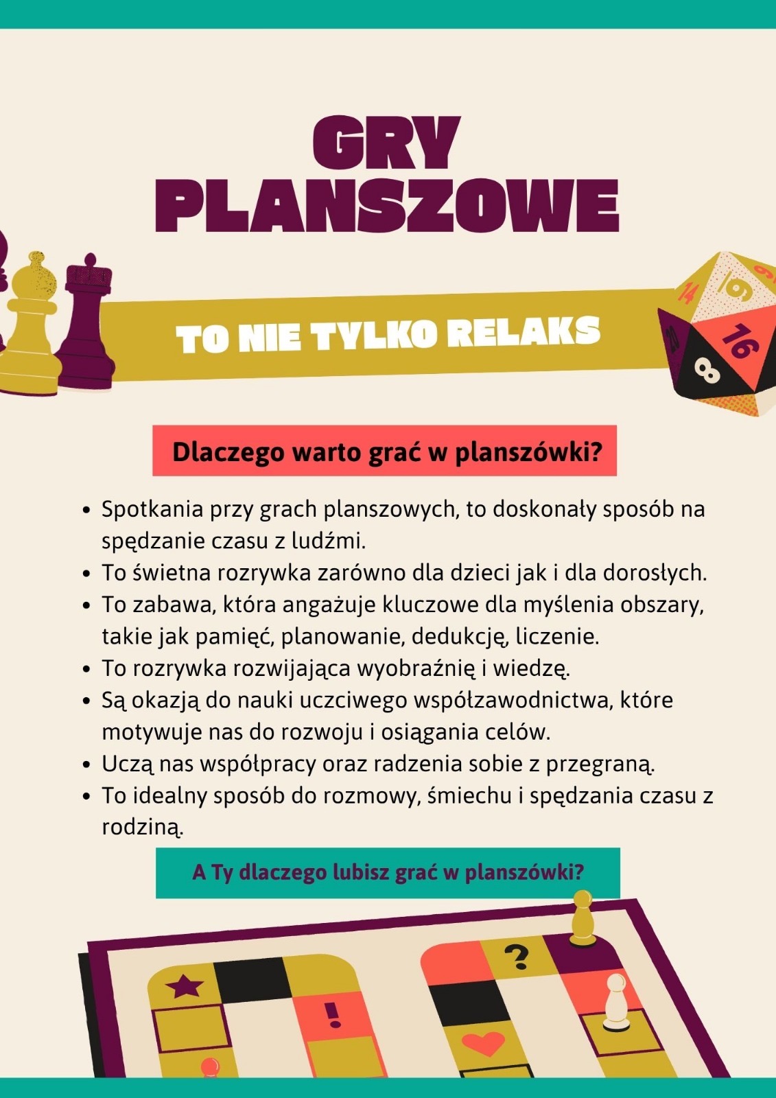 Zapraszamy wszystkich uczniów i nauczycieli do czynnego udziału w akcji „Zrób sobie przerwę na planszówkę”, której celem jest: