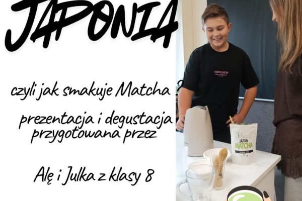 Podczas lekcji geografii w klasie 8 uczniowie prowadzili tematyczne prezentacje dotyczące Azji. Ala i Julek zaprezentowali sposób parzenia Matchy i przeprowadzili degustację. Usłyszeliśmy wiele interesujących faktów o Japonii i poznaliśmy wyjątkowy smak Matchy.