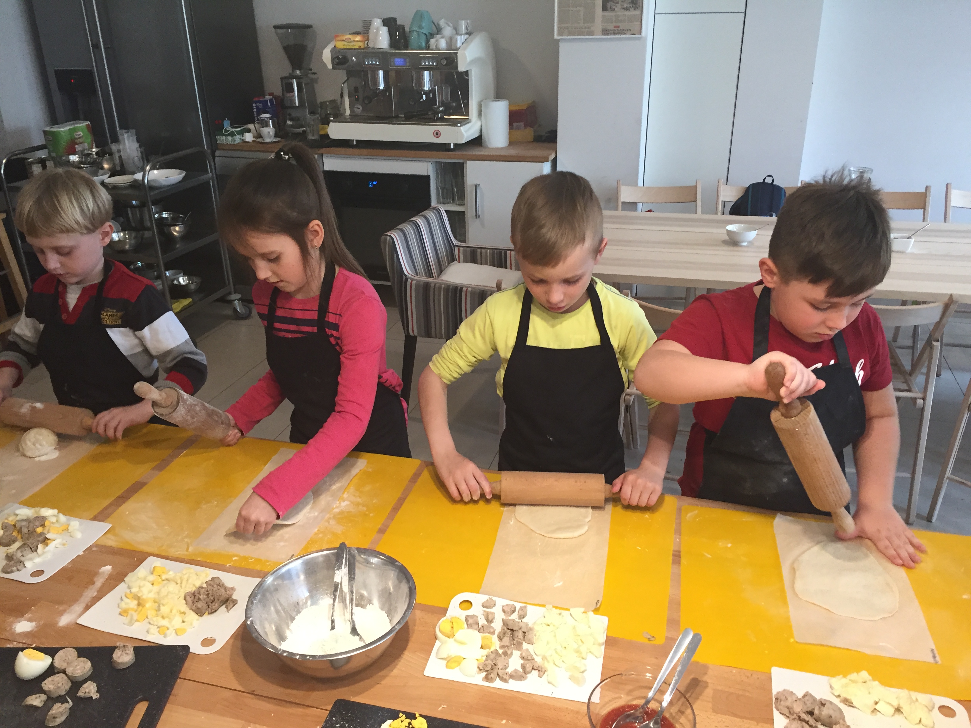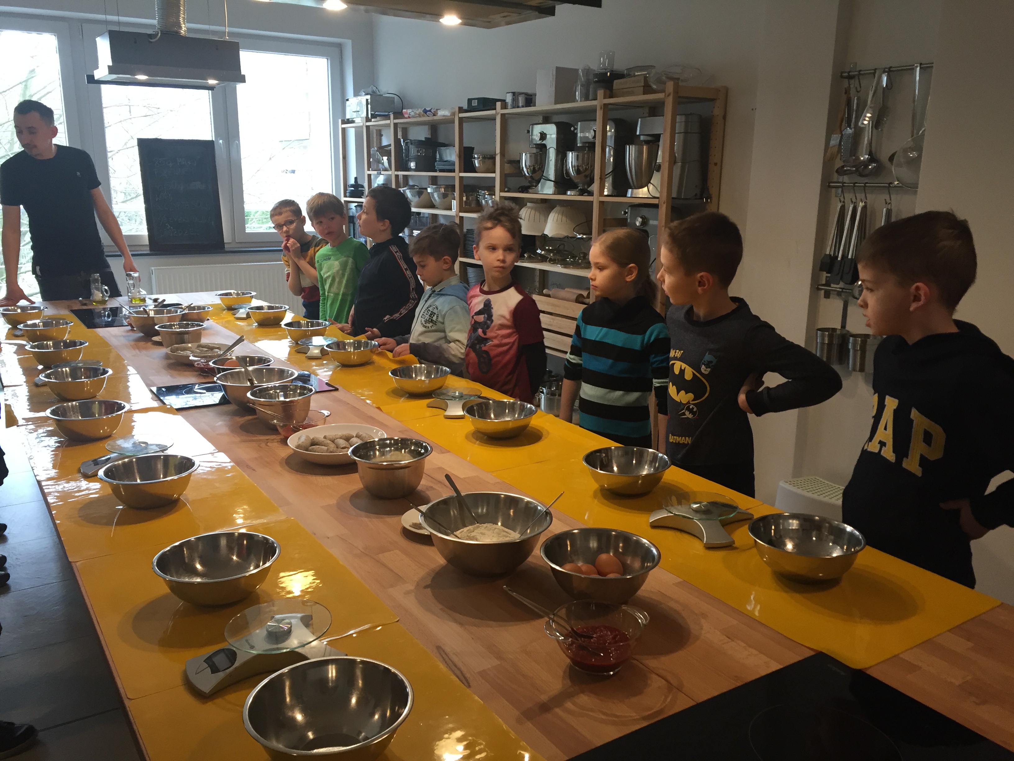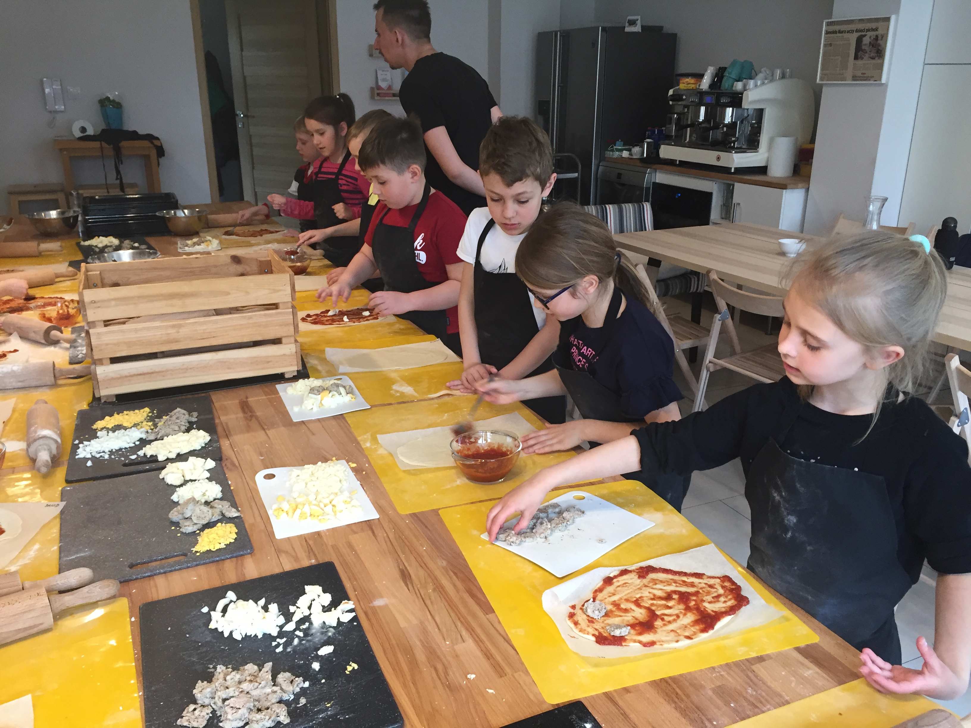 Uczniowie klasy I po raz drugi uczestniczyli w warsztatach kulinarnych w studio “Zmokła kura”. Tym razem poznali recepturę ciasta na pizzę, którą przygotowali samodzielnie pod kierunkiem kucharza. Następnie ułożyli na niej swoje dodatki. Po 20 minutach pieczenia skosztowali swojego wyrobu. Część pizzy pozostawili nawet do spróbowania swoim rodzinkom. Warsztaty sprawiły dzieciom wiele radości.